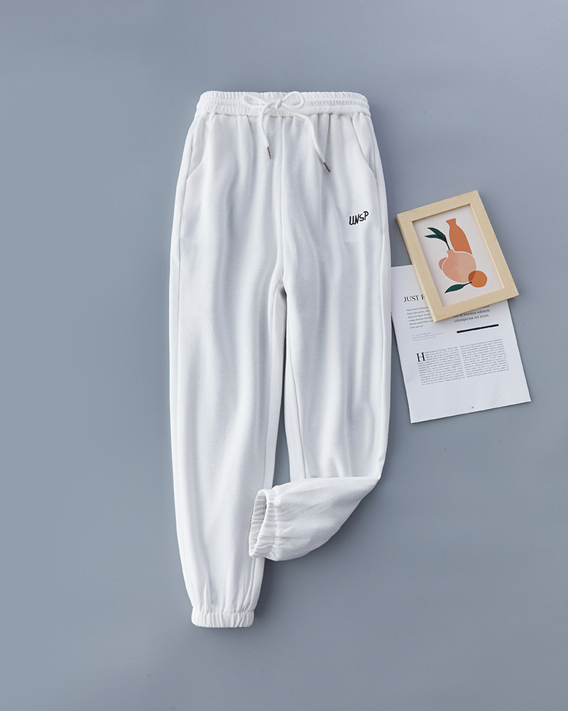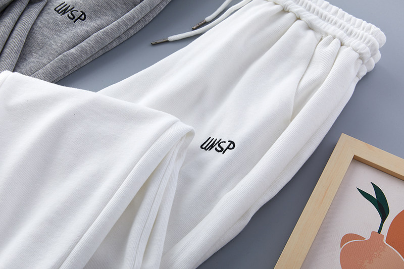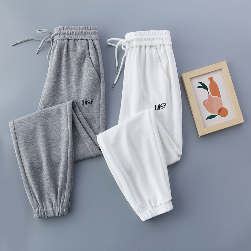 2024 summer new arrival gray white elastic waist sports pants leggings loose casual pants women slimming drawstring