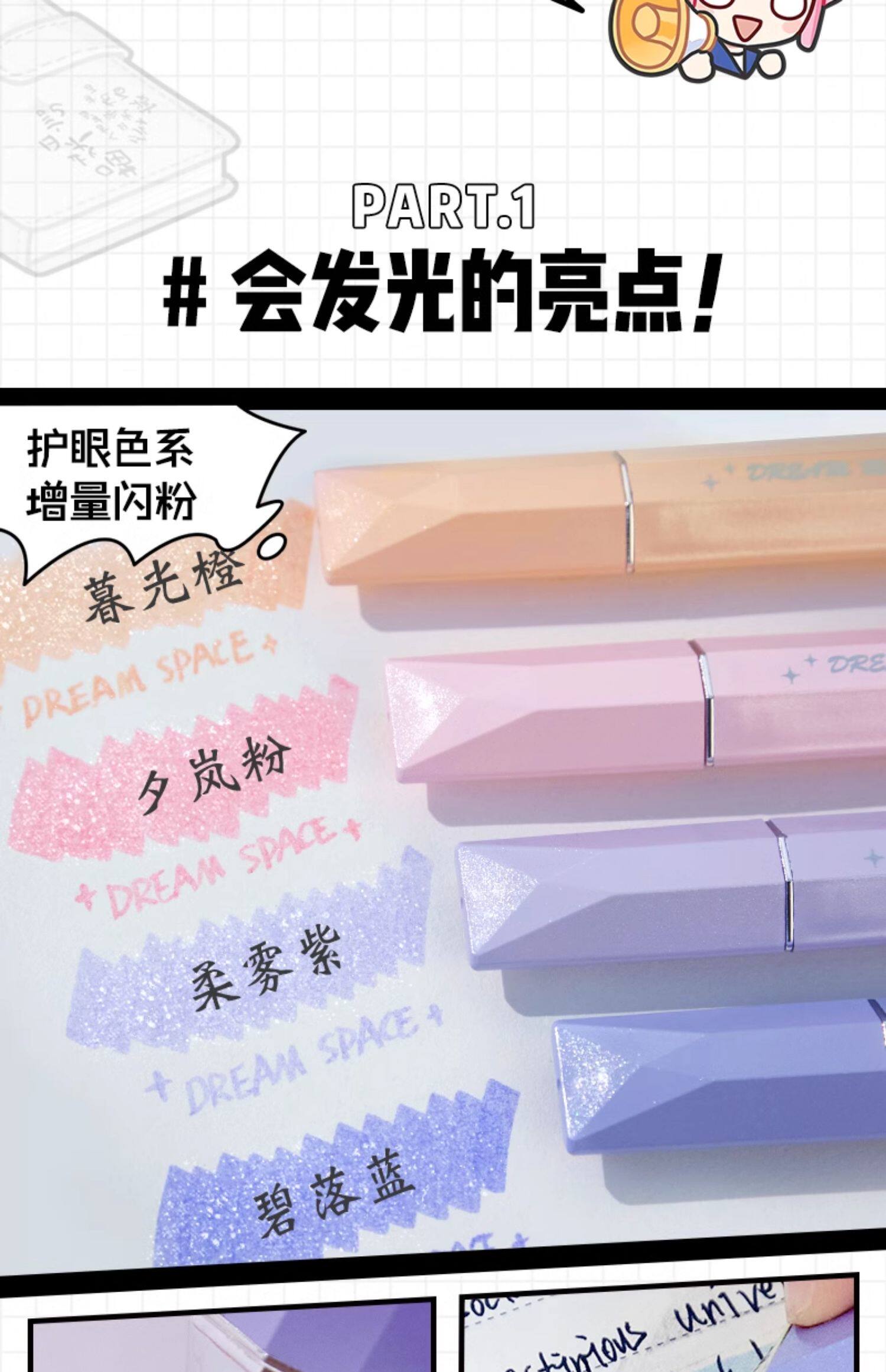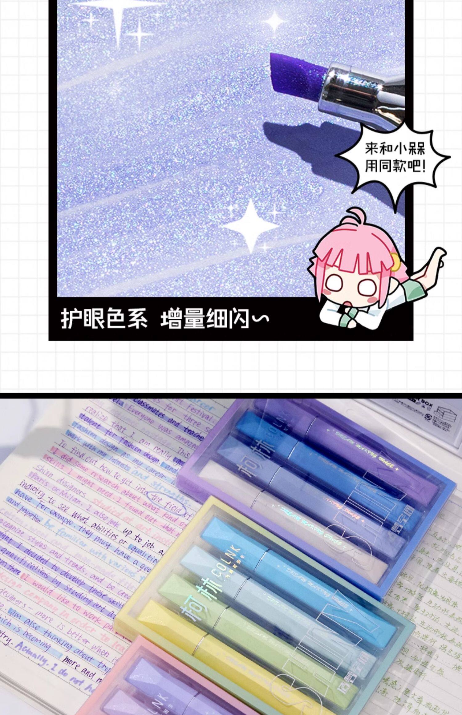 High-value sparkling highlighter color marker flash pen students mark key points to take notes and account luminous pen