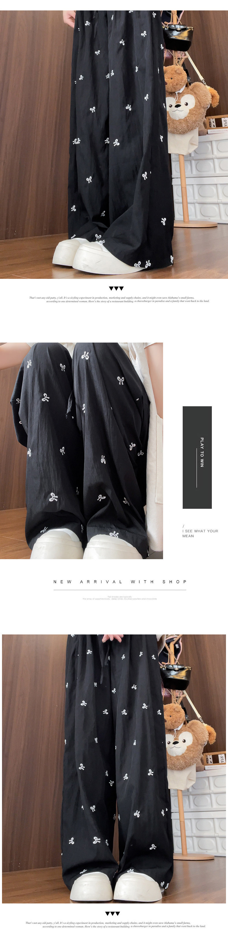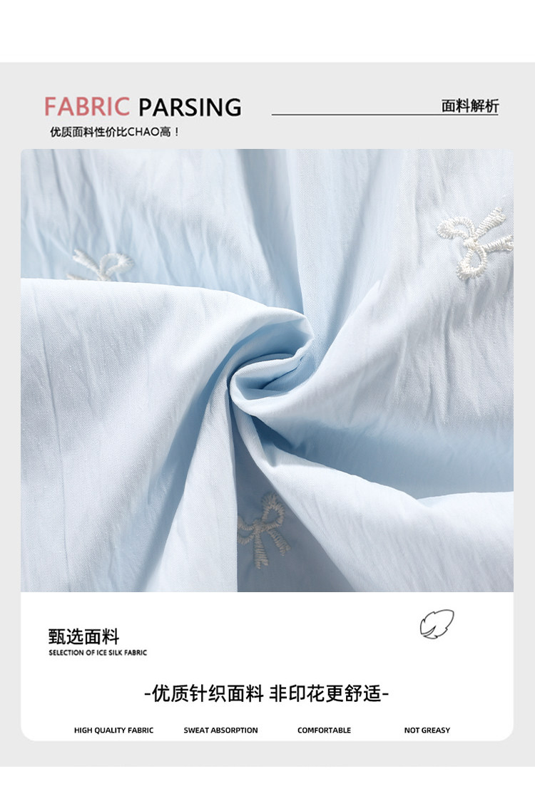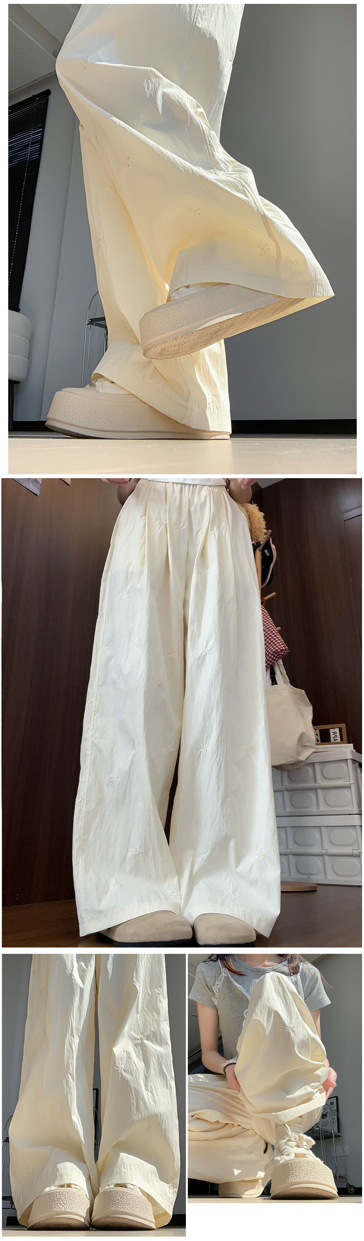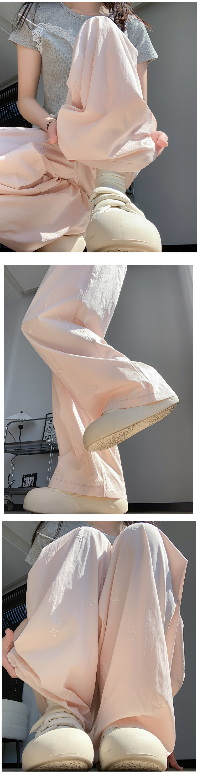 Blue embroidered bow ice silk Yamamoto pants for women summer thin 2024 new casual walking wide leg pants for small people