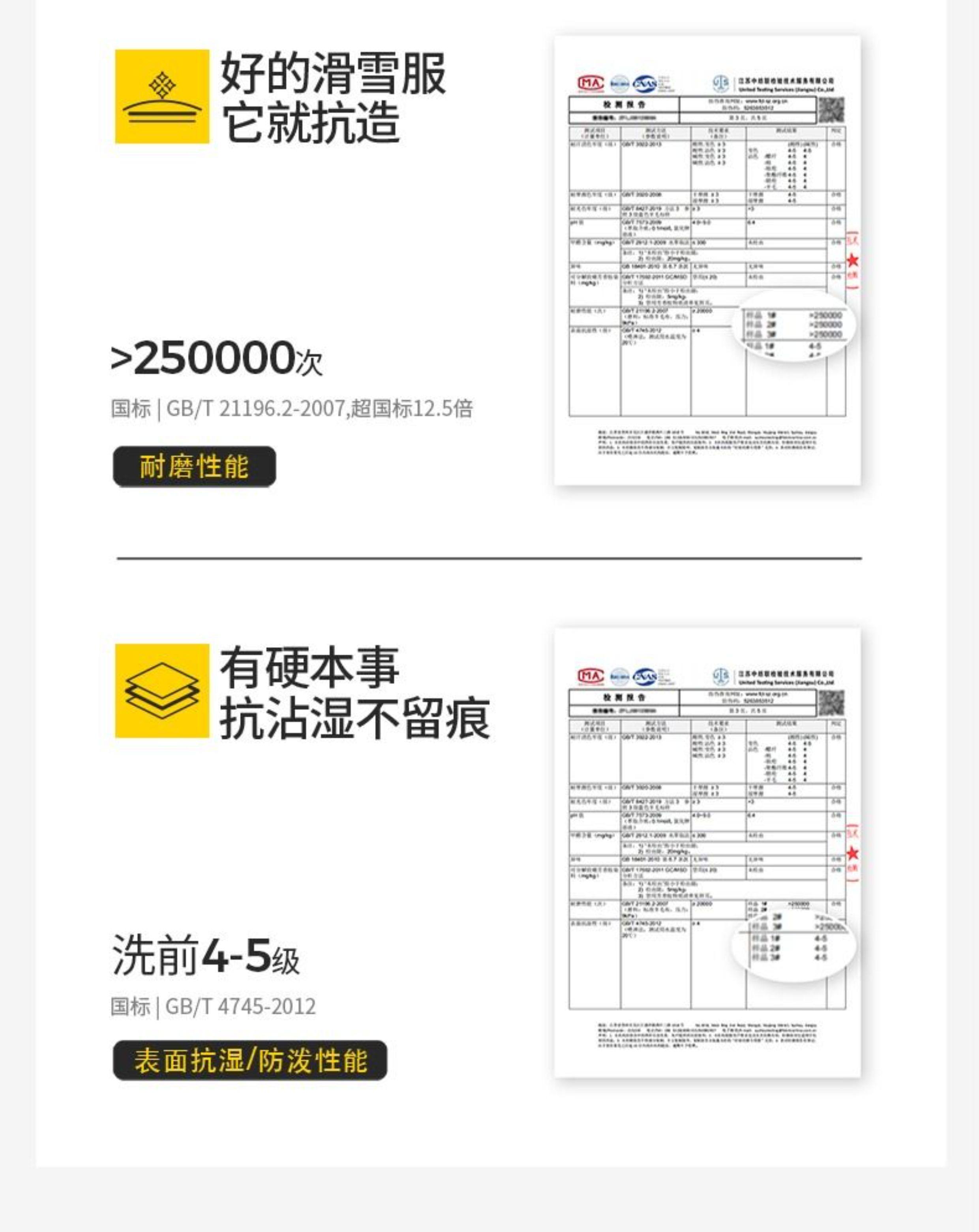 Waterproof Hydrostatic Pressure> 20000Mmh₂O,Surface Moisture Resistance: ≥4-5 Levels before Washing, ≥3-4 Levels after Washing