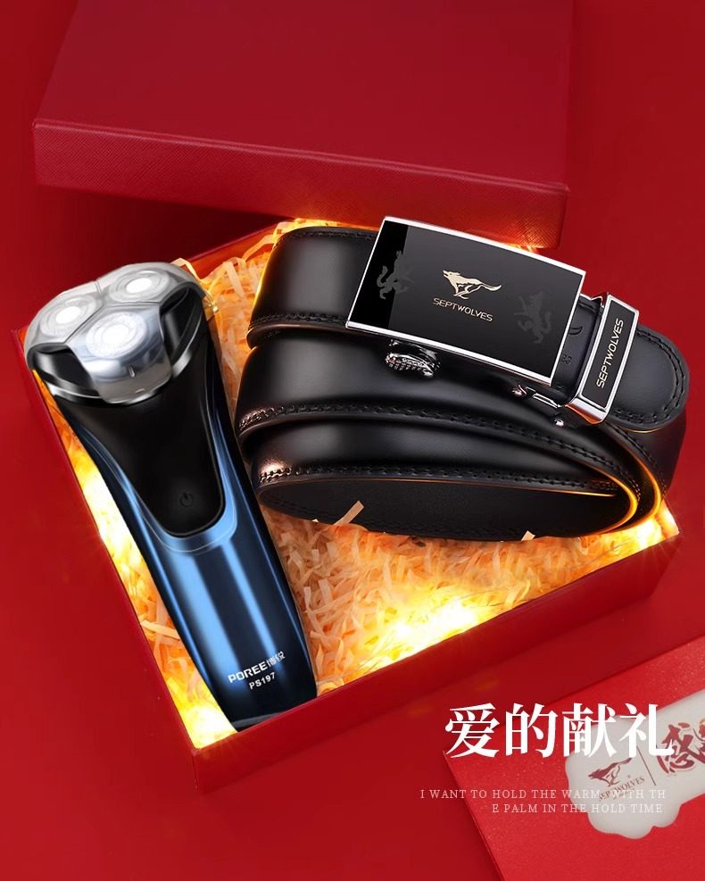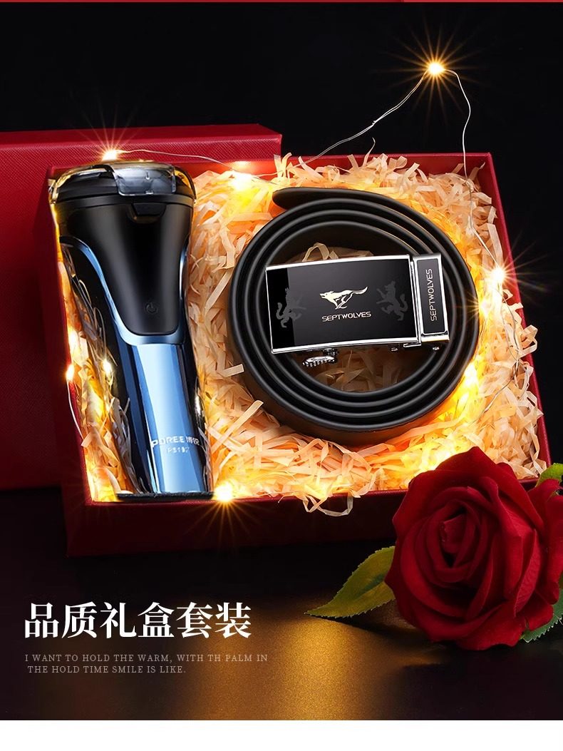 Regalo de cumpleaños de Año Nuevo para papá y niños, regalo de aniversario para mi novio, práctico cinturón y caja de regalo para afeitadora como sorpresa.