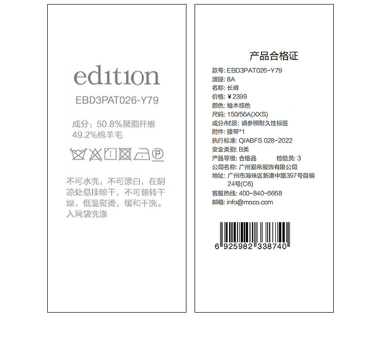 Material Composition Polyester Fiber 50.8% Sheep Wool 49.2%