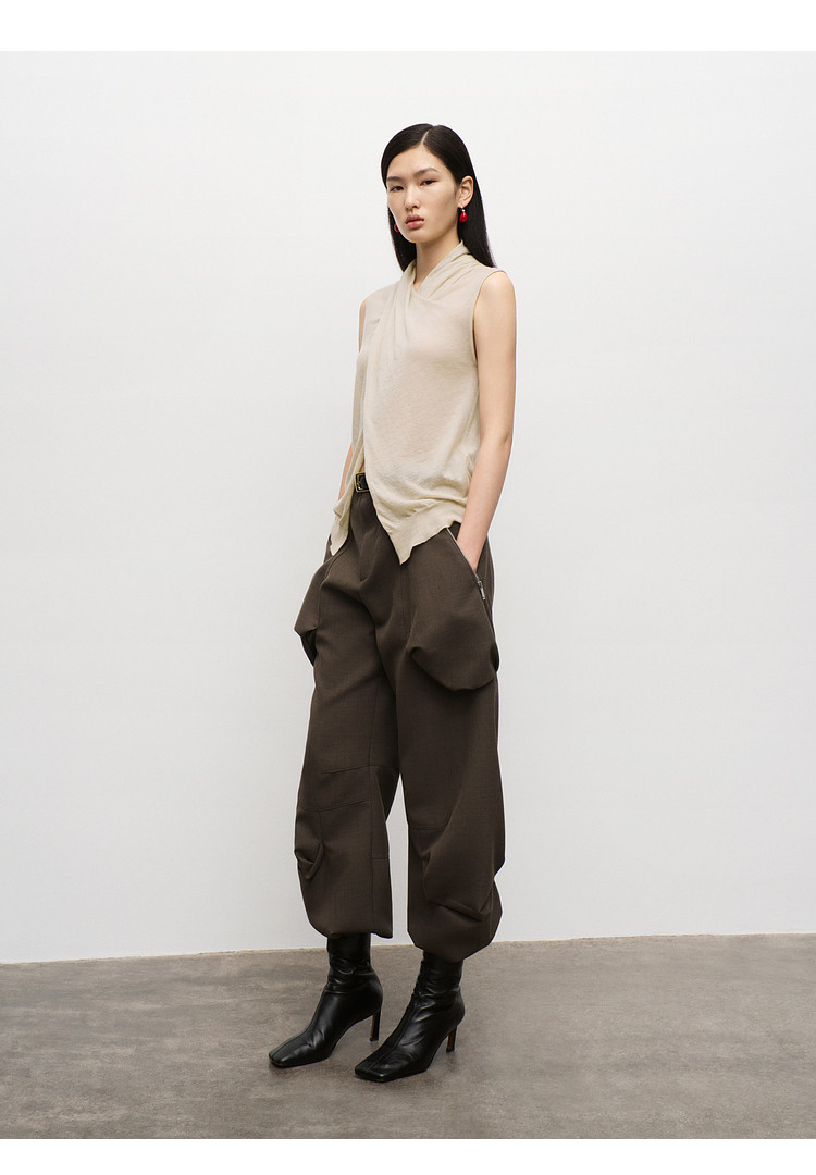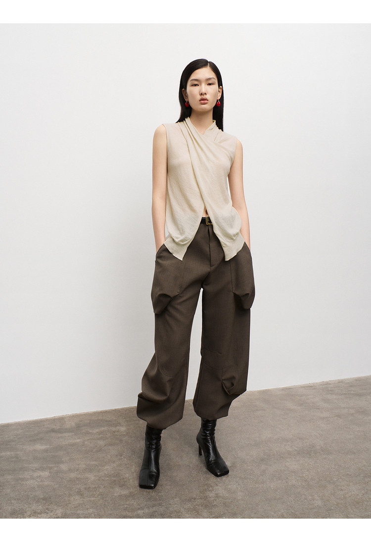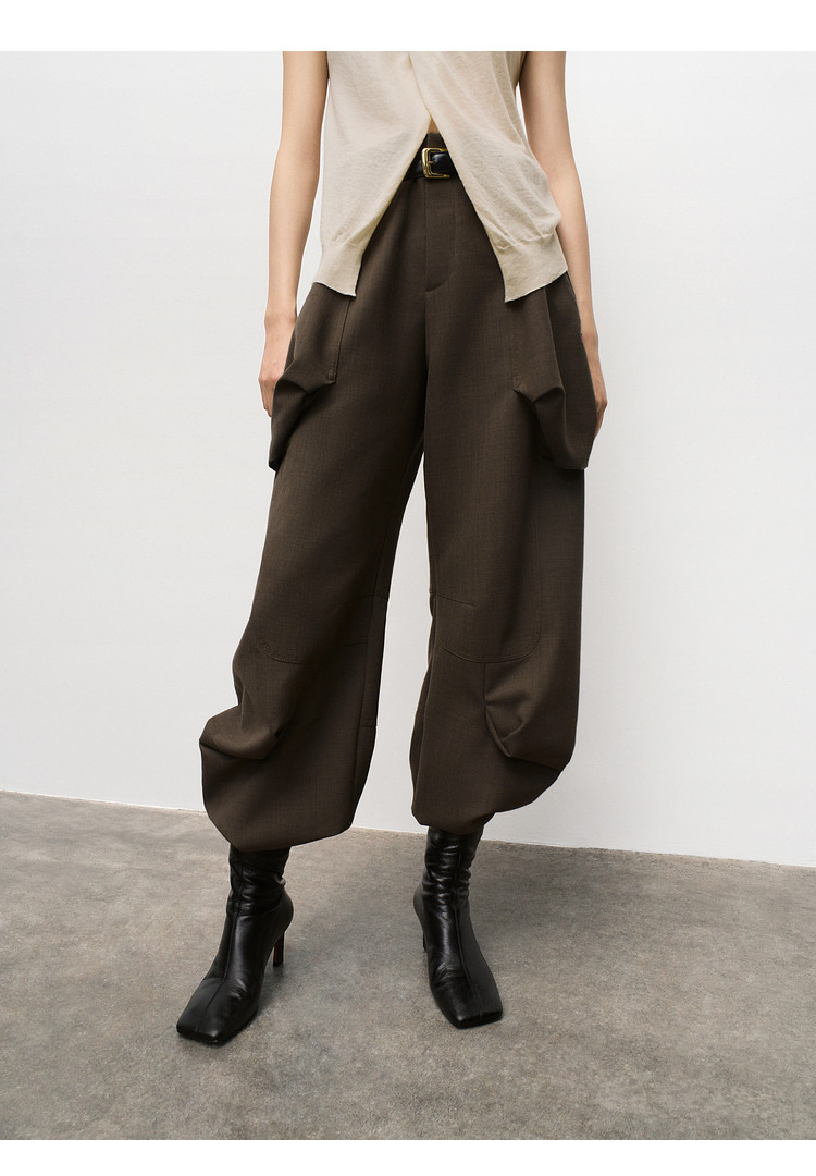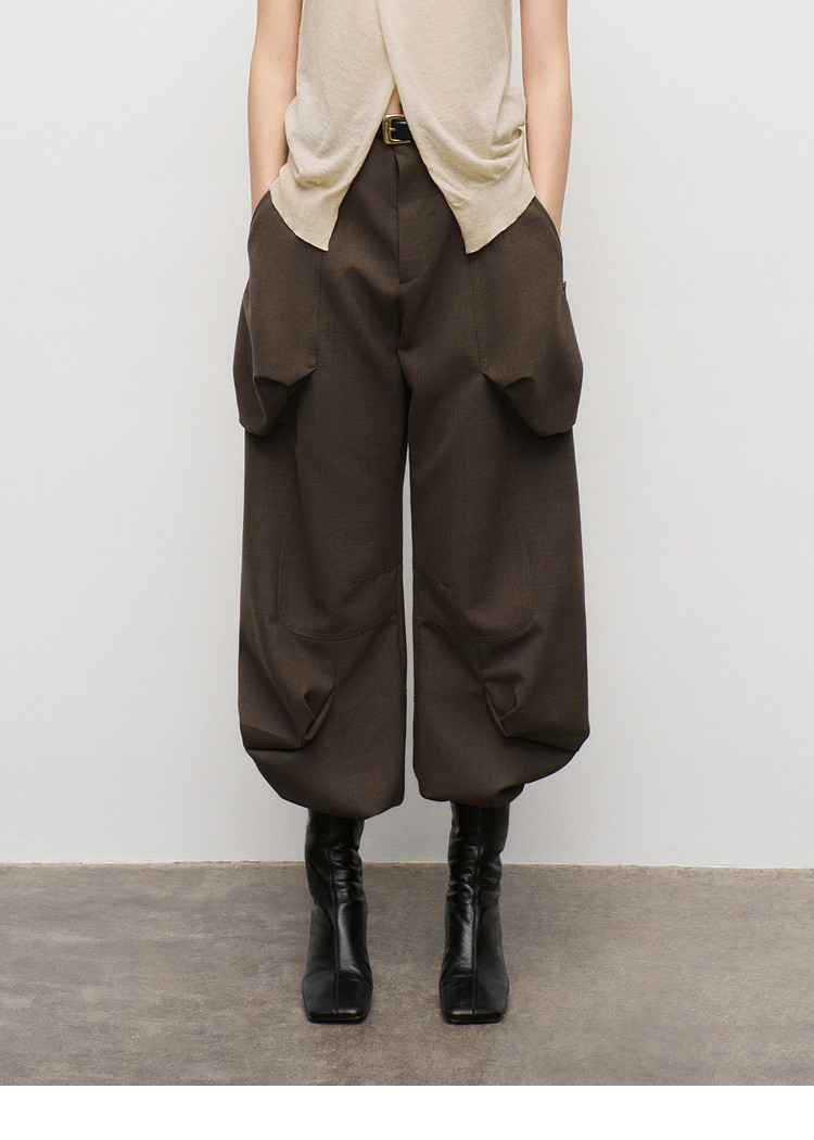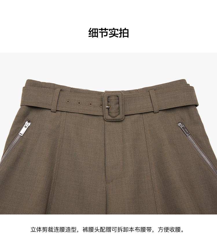 Edition Women's Work Pants Autumn New Style Wool Worsted Work Trousers with Belt Ebd3Pat026