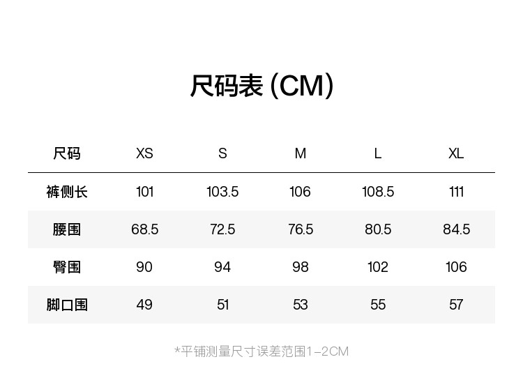 Outseam (cm) 99 cm 101.5 cm 104 cm 106.5 cm 109 cm