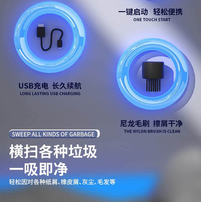 German Precision-Made Desktop Cleaner for Elementary School Students, High Suction Vacuum Cleaner, Mini Electric Rechargeable Handheld Small Household Cleaning Tool for Children, Eraser Debris Keyboard Wireless Automatic Cleaning Gadget