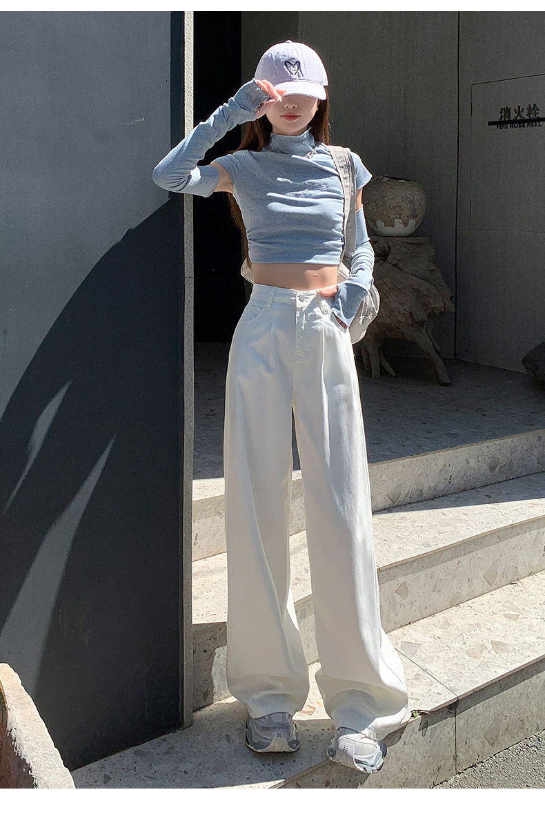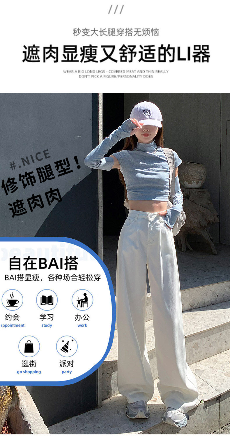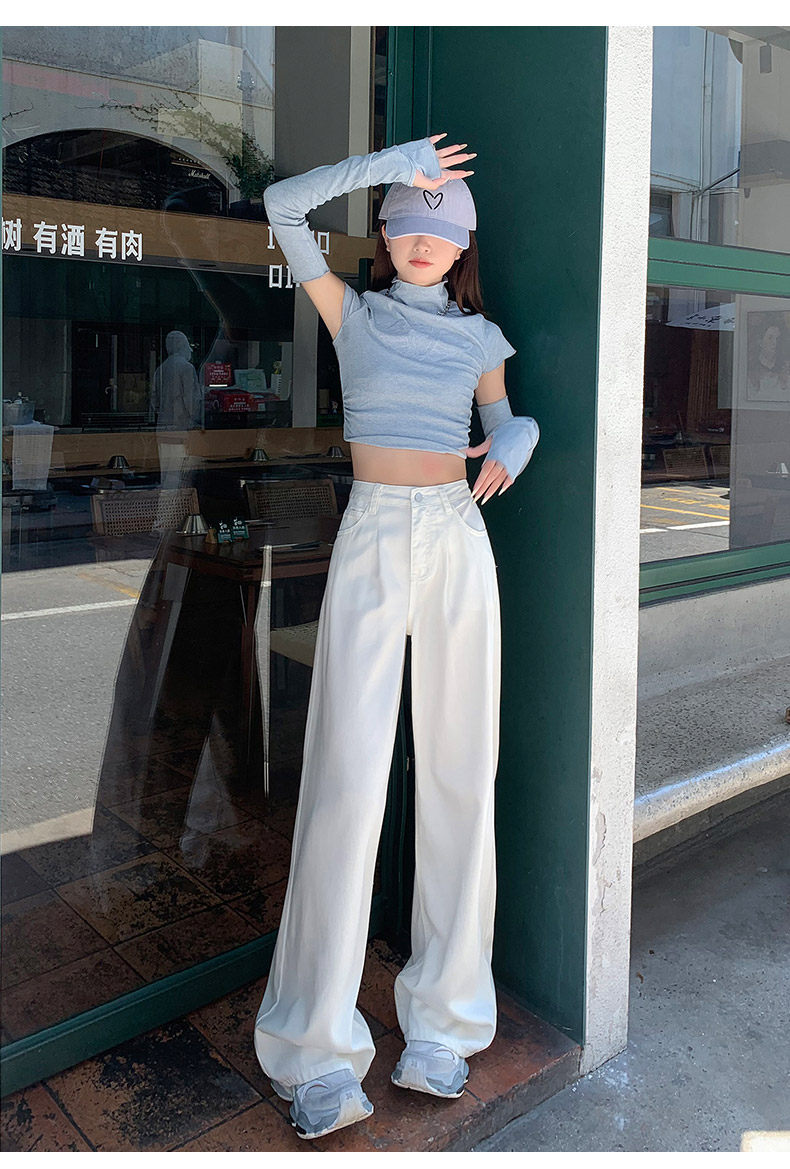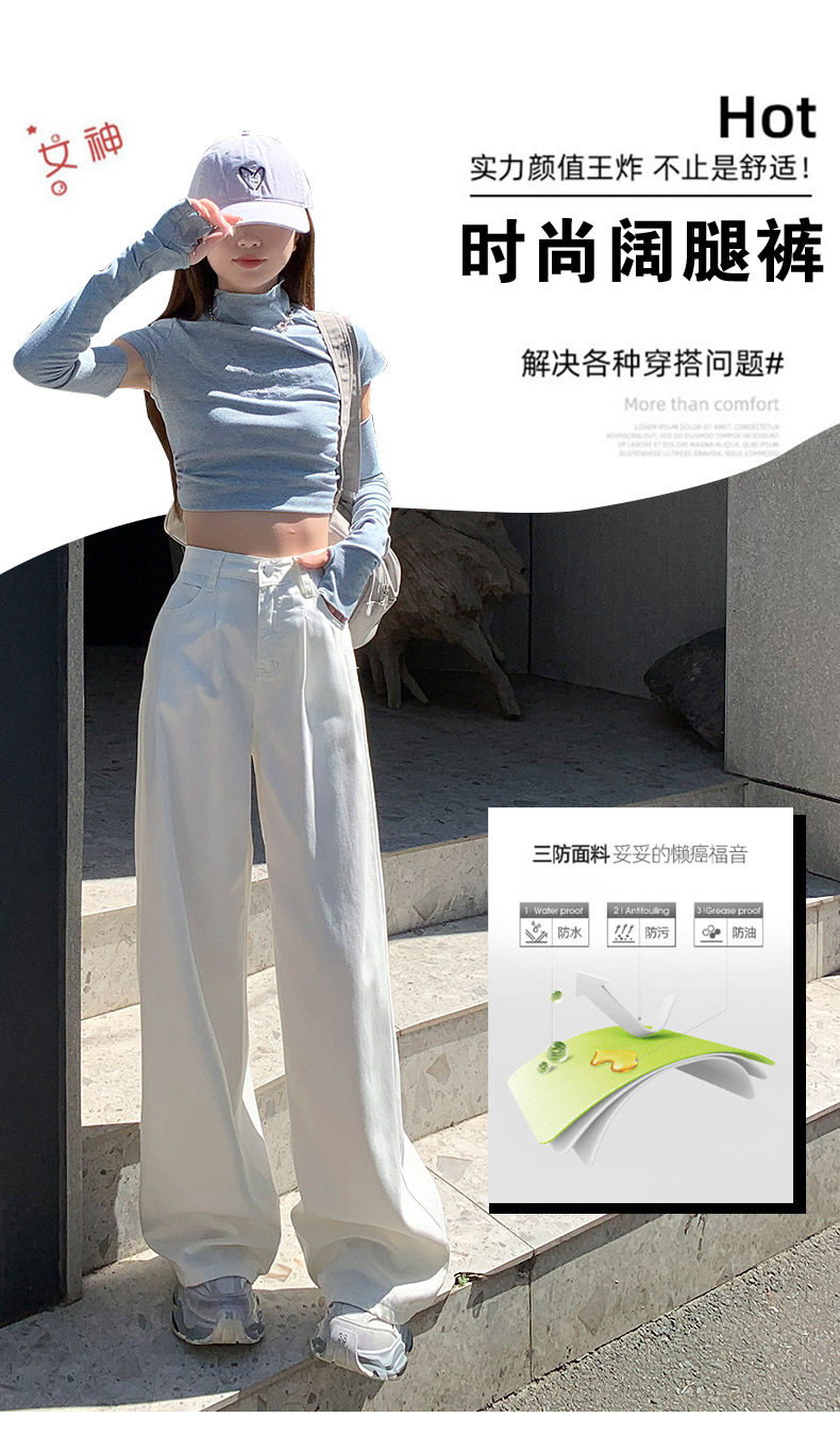 Summer Thin Three-Proof Tencel Jeans for Women, Spring and Autumn Lyocell Lightweight Wide-Leg Drapey High-End White Pants