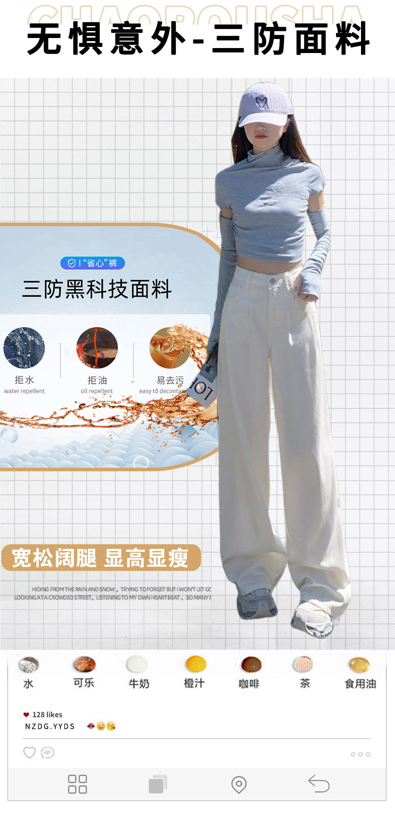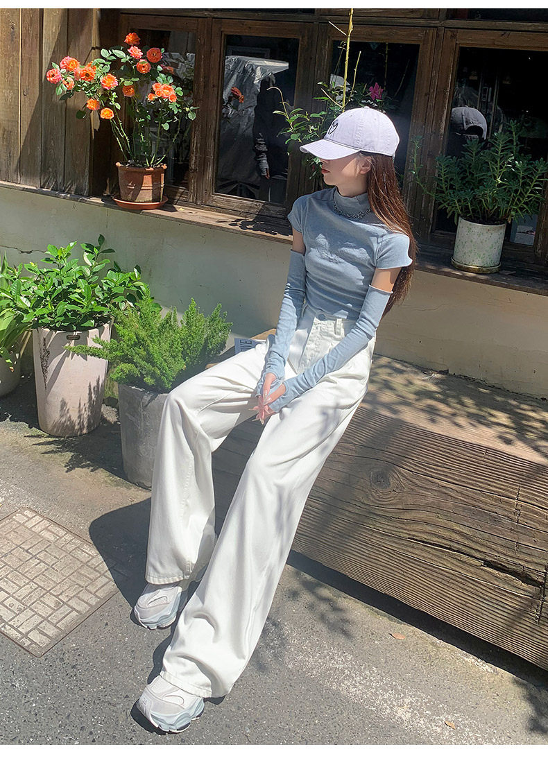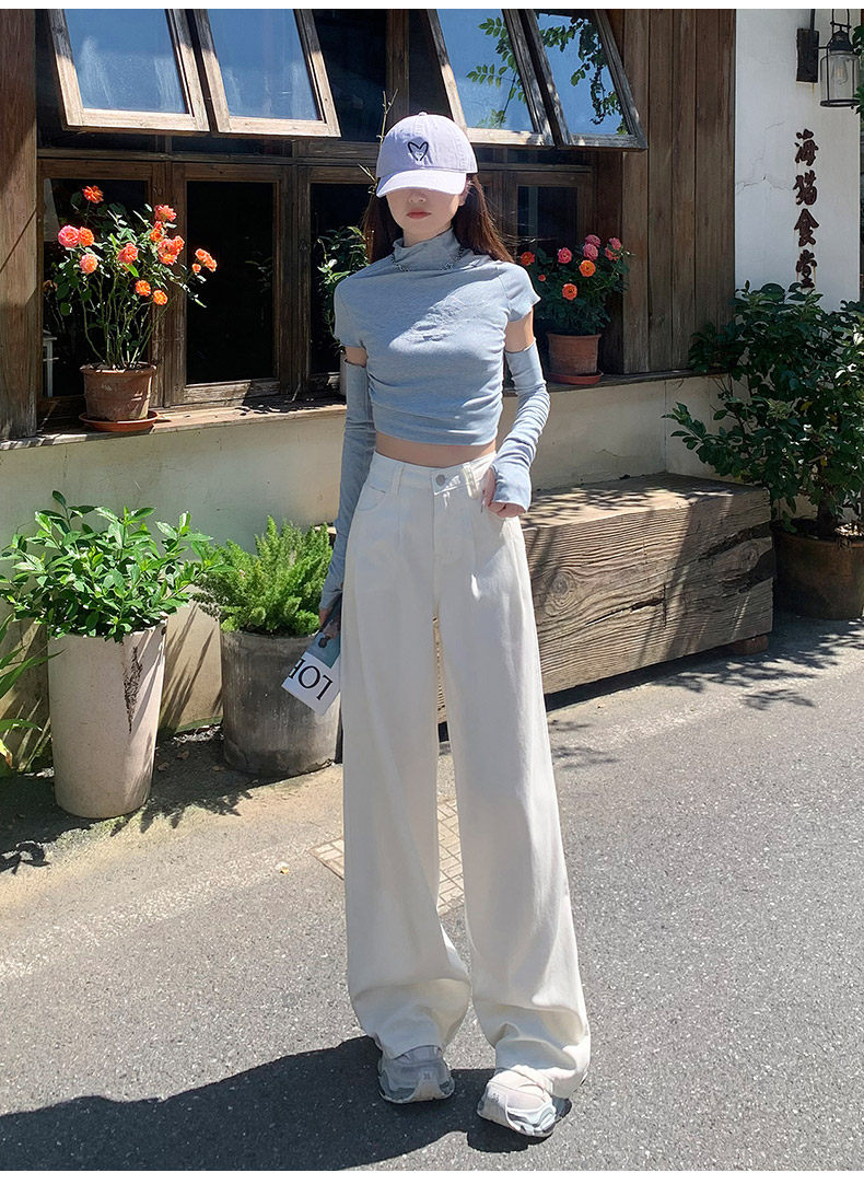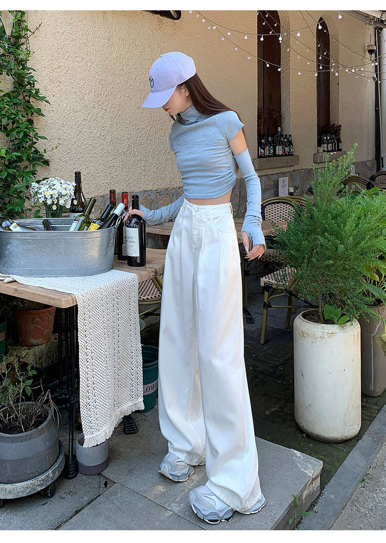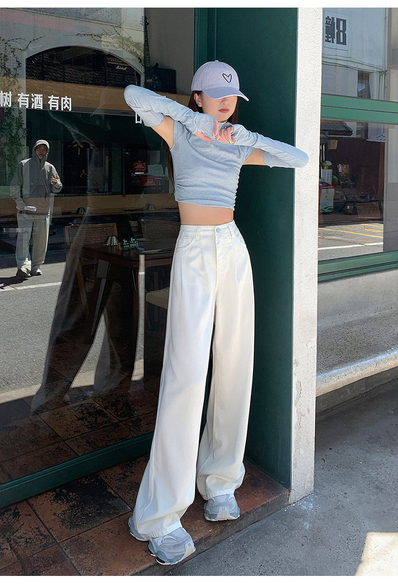 Summer Thin Three-Proof Tencel Jeans for Women, Spring and Autumn Lyocell Lightweight Wide-Leg Drapey High-End White Pants