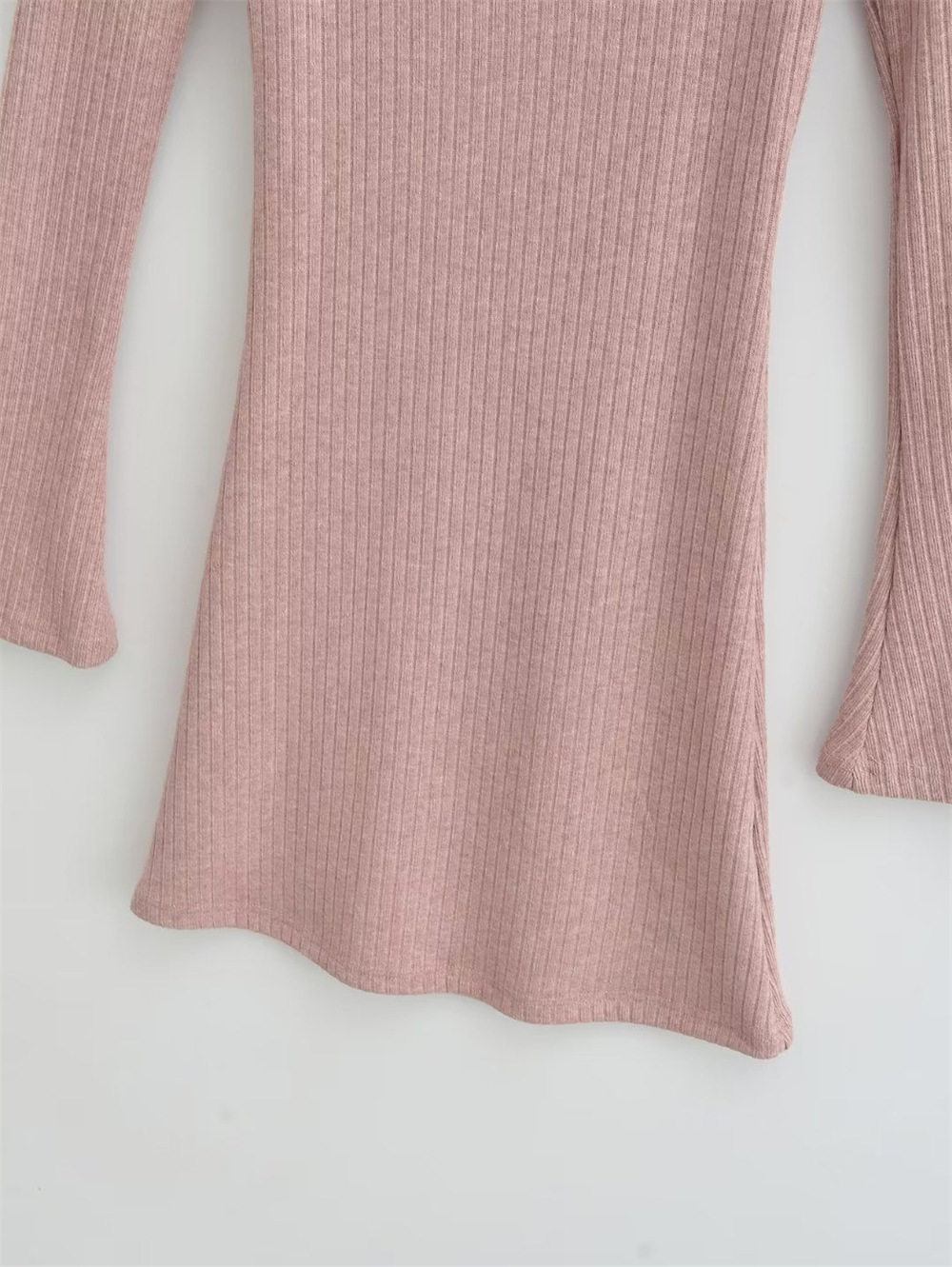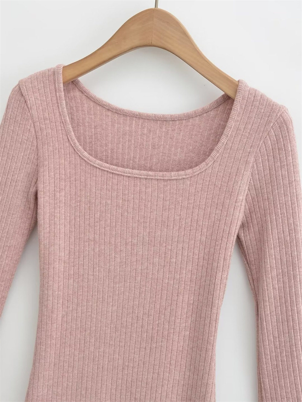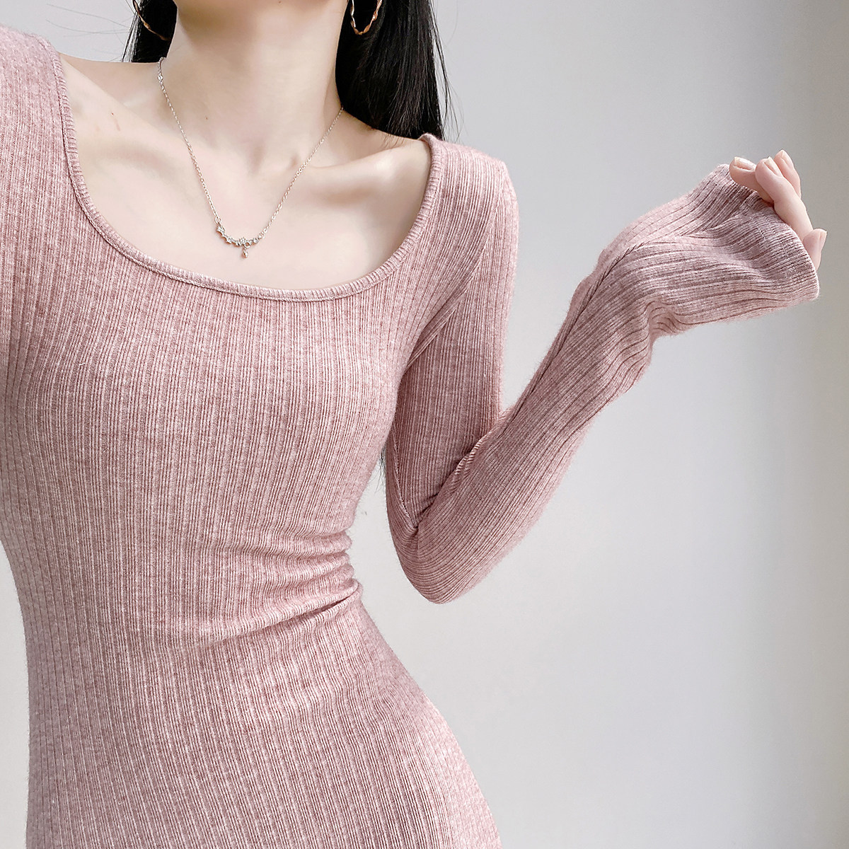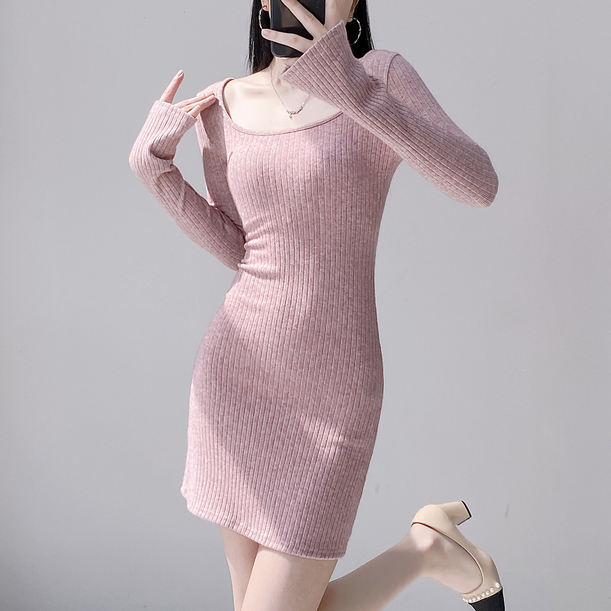 Pure Desire Square Neck Long Sleeve Knitted Dress Female Waist Sexy Hip Skirt Slim Threaded Inner Bottoming Short Skirt