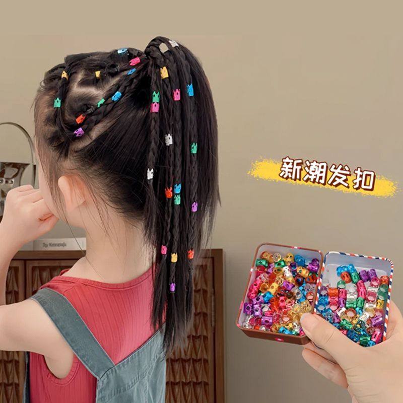 Girls' Hair Clips That Don'T Damage Hair, Aluminum Buckle, Sweet and Cool Dreadlocks Hair Clips, Soft Material, Stage Cool Braids Decoration, Small Hair Clips in Iron Box