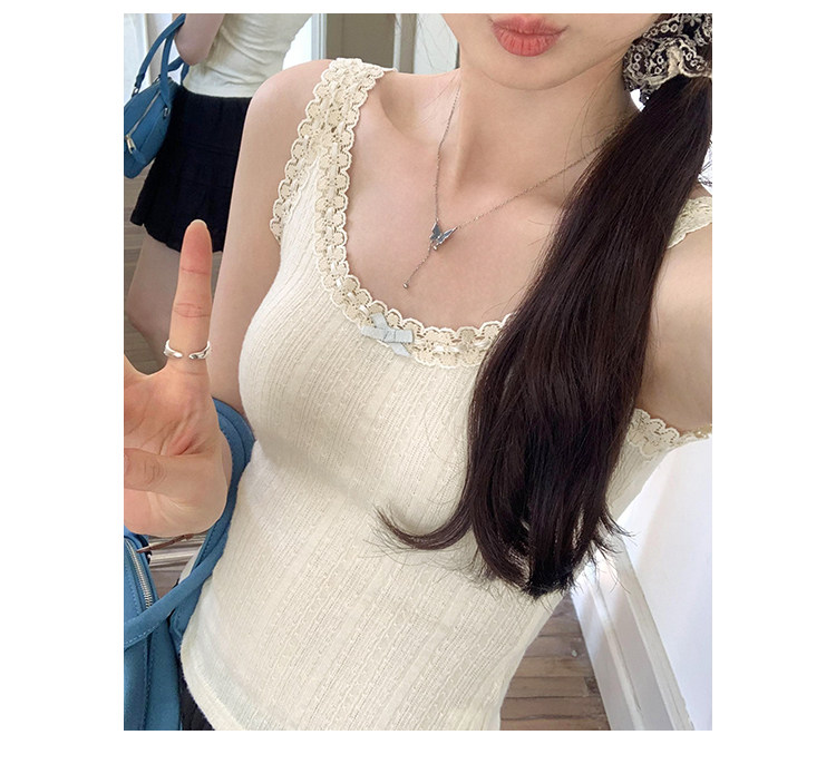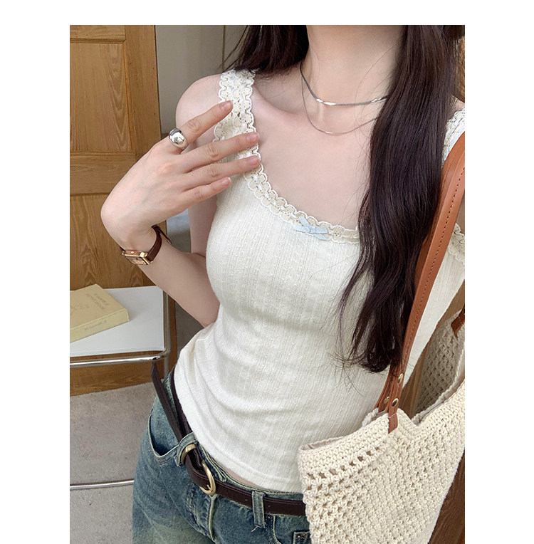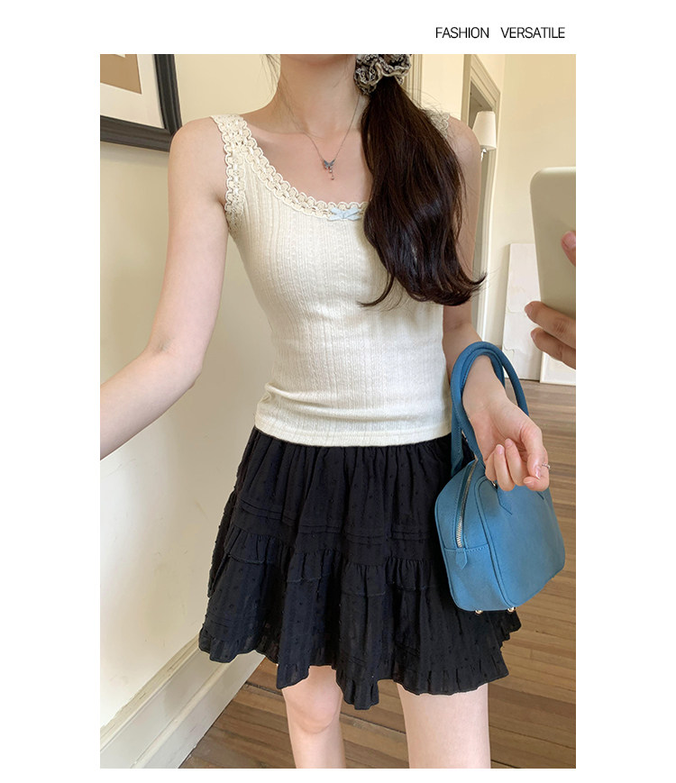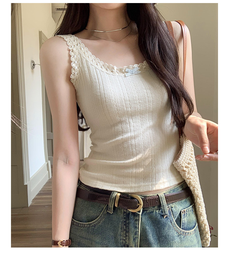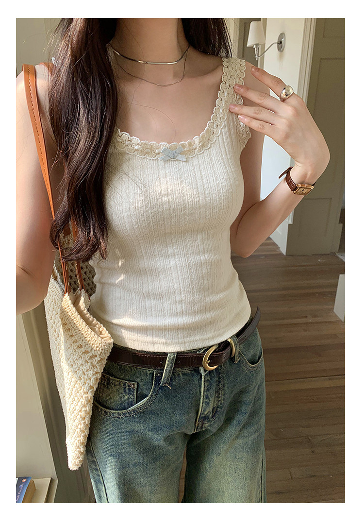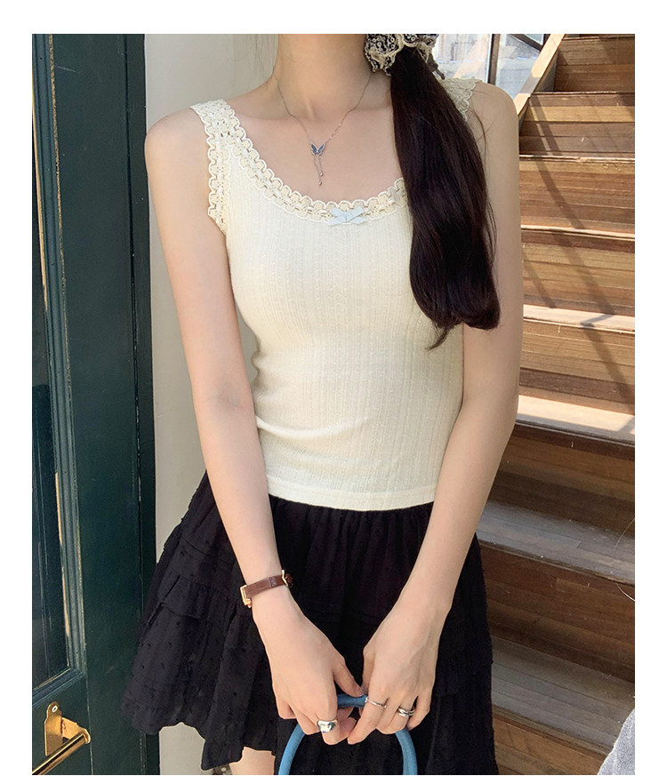 2026 Summer Unique and Beautiful Bowknot Vest for Women, Lace Patchwork Slim Fit Short Top, Trendy Outerwear Camisole