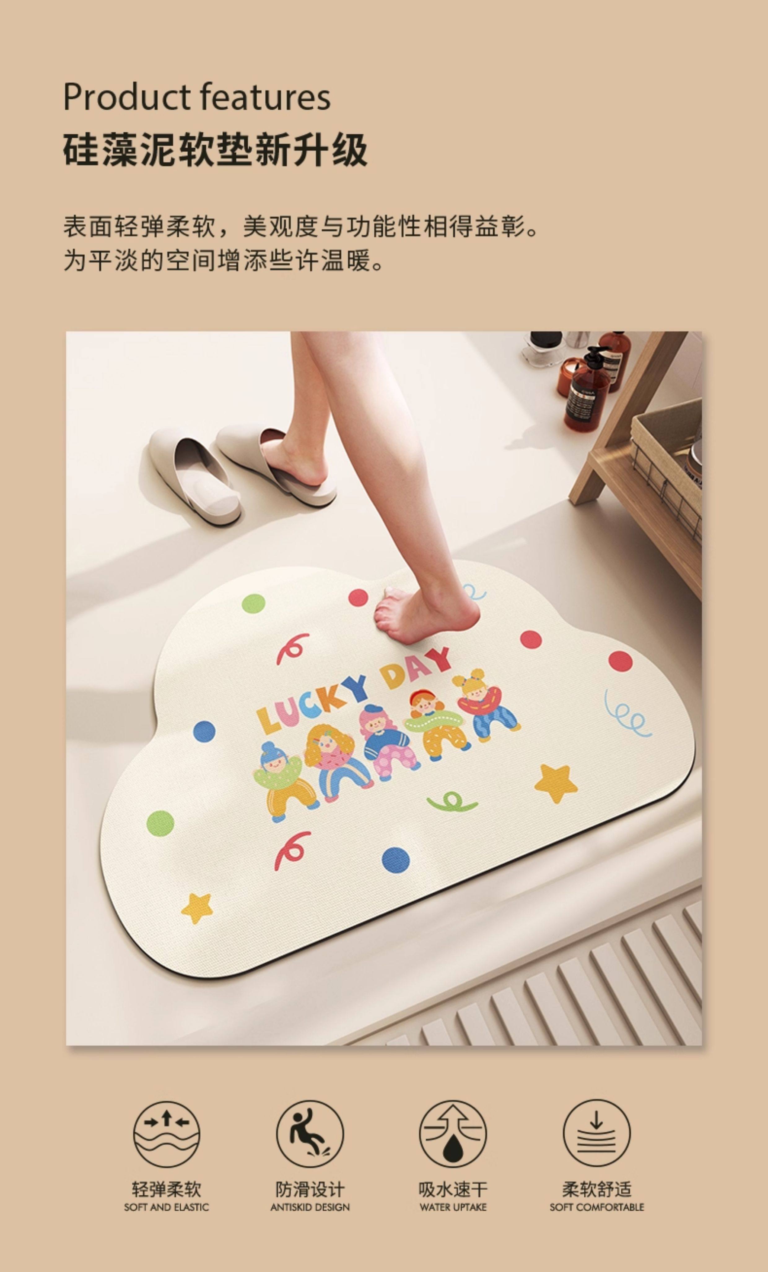 Yunduo bathroom absorbent floor mat bathroom diatom mud foot mat toilet door non-slip mat special-shaped quick-drying carpet