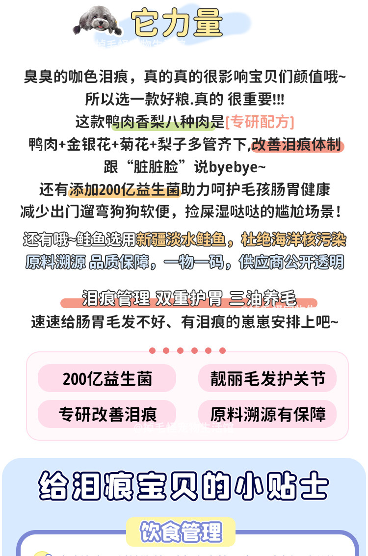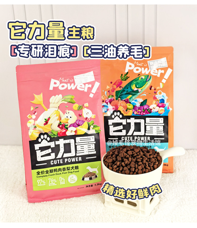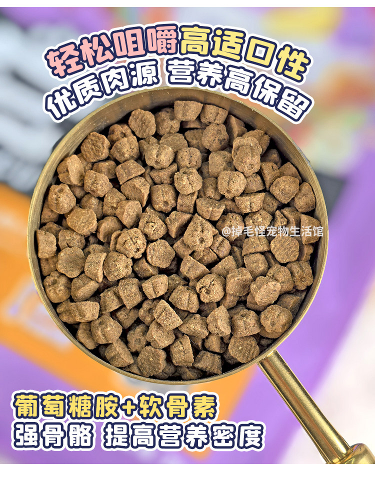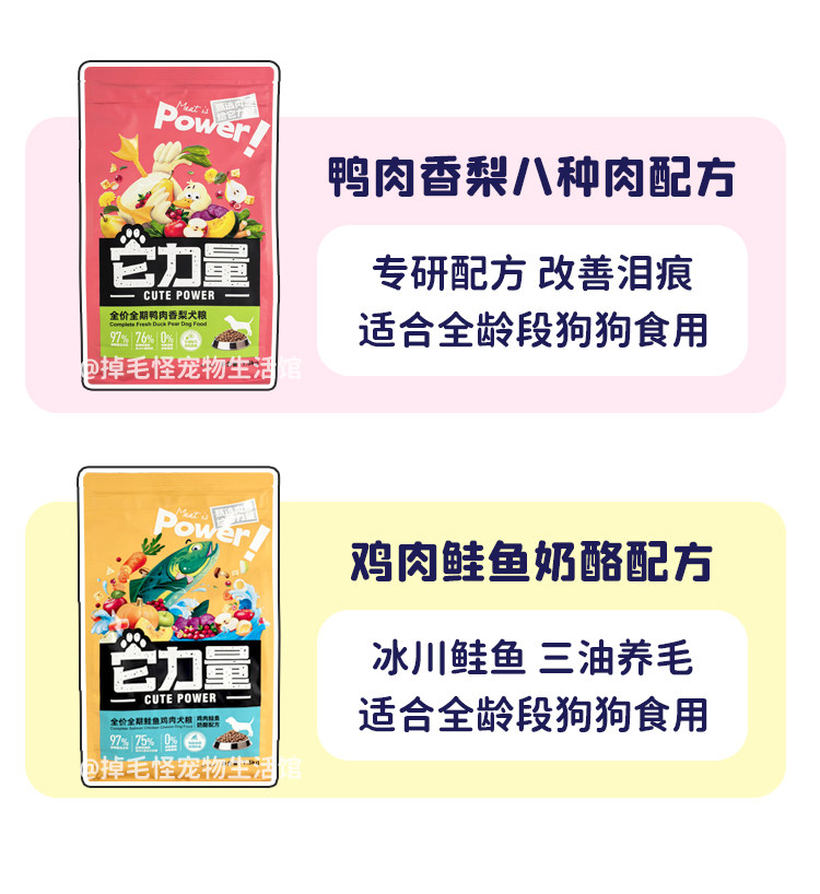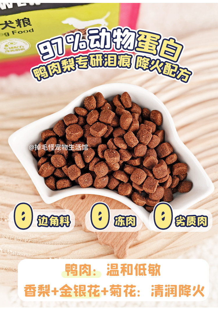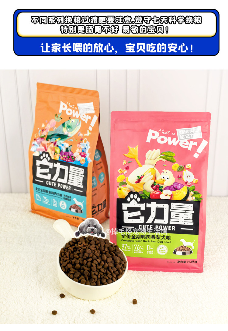 It's strength dog food for senior adults, puppies, salmon, chicken, duck, meat, pear, eight kinds of meat, low fat, fresh meat, puffed dog food