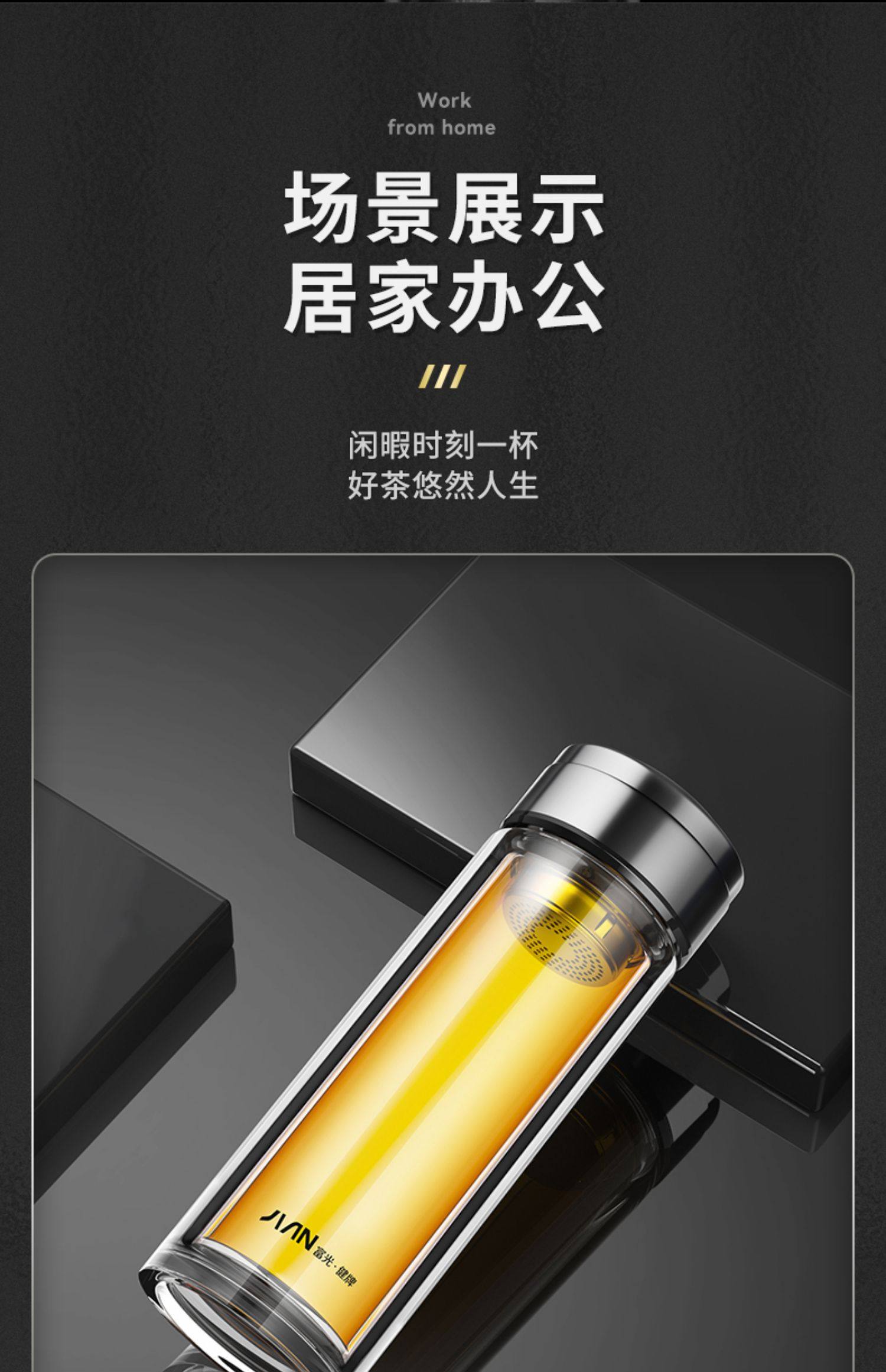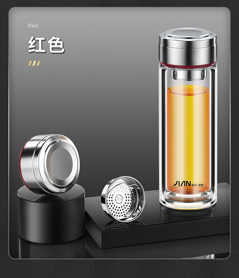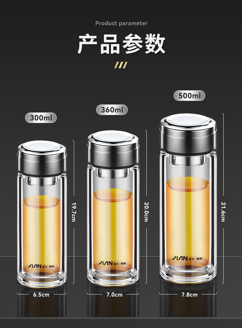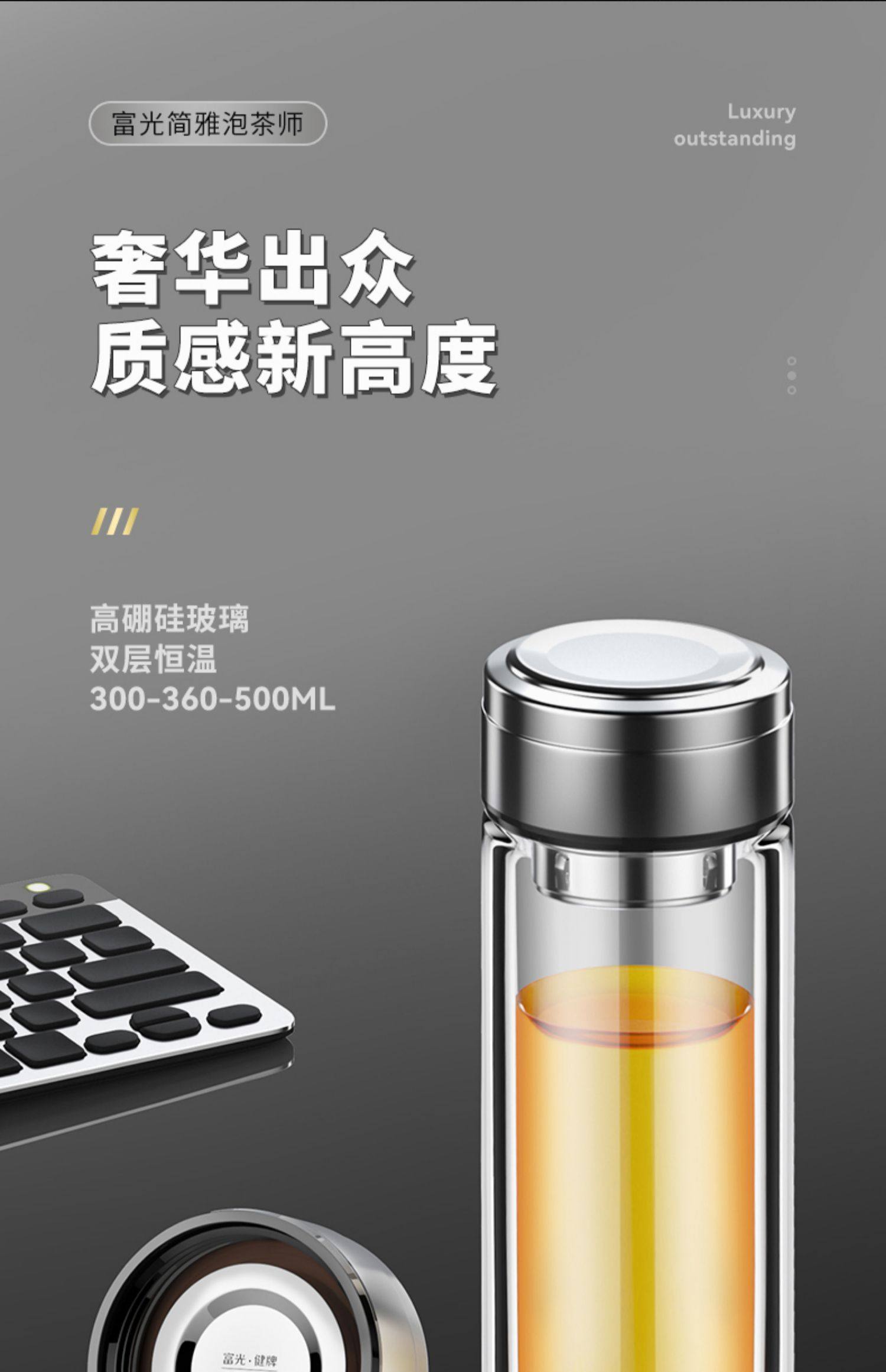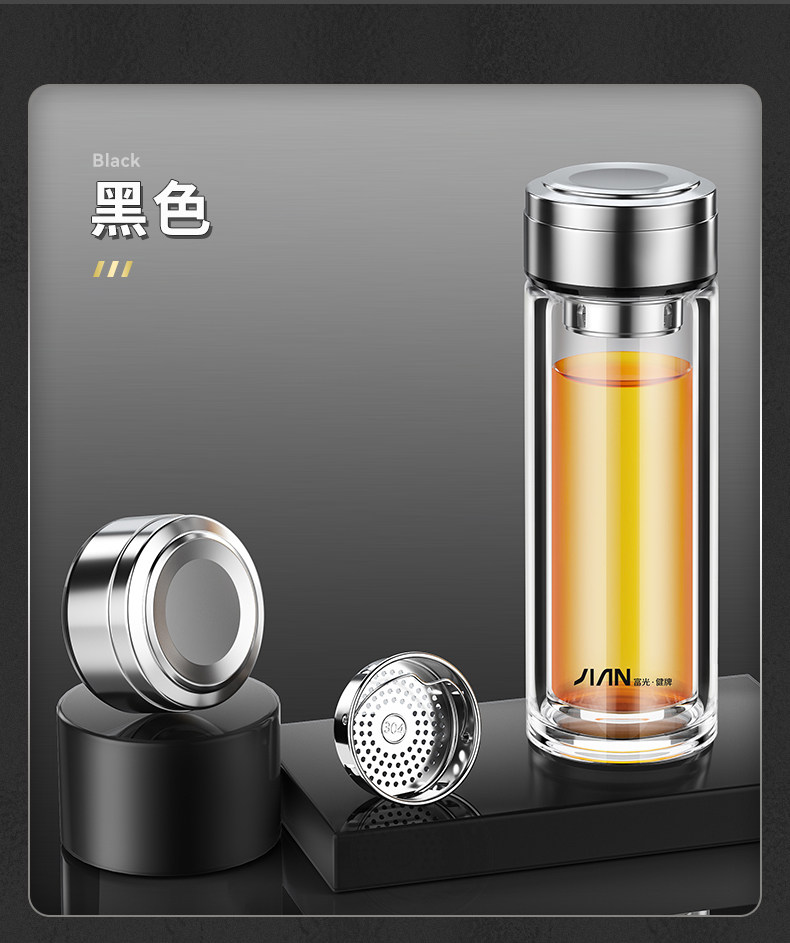 Fuguang Double-Layer Thickened Glass Cup for Men, Car-Mounted Business Water Cup, Large Capacity Household Tea and Water Separation Tea Brewing Cup