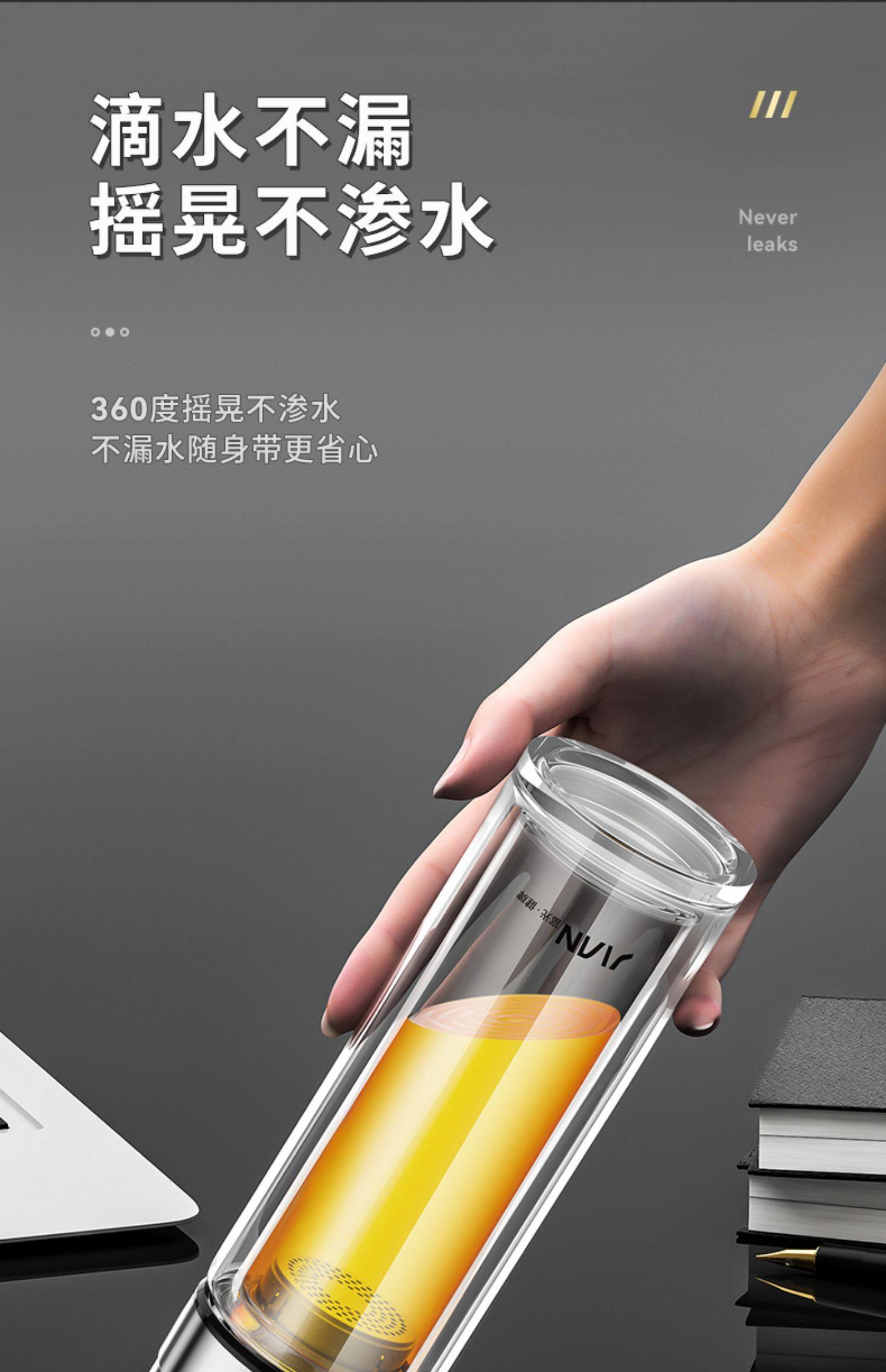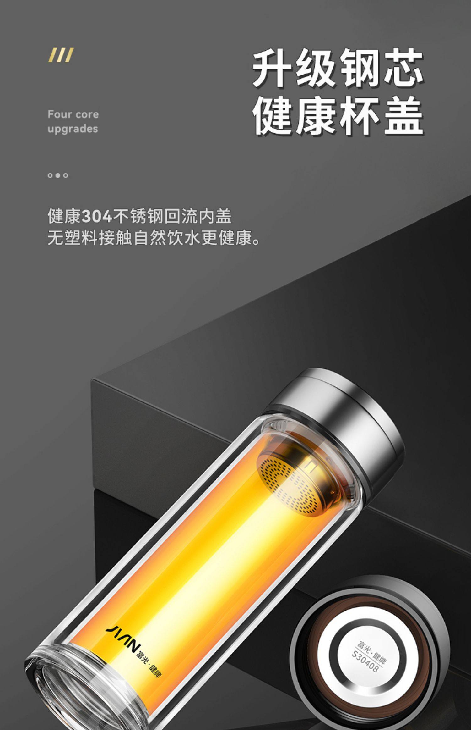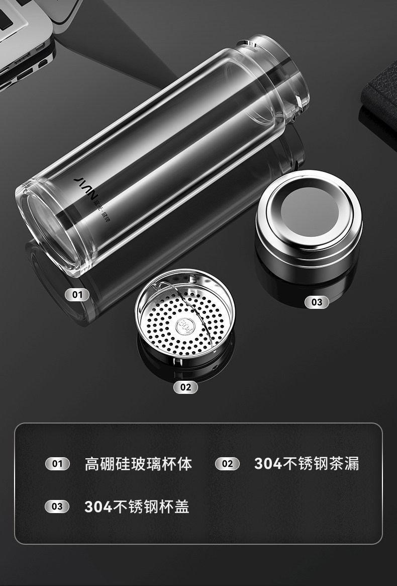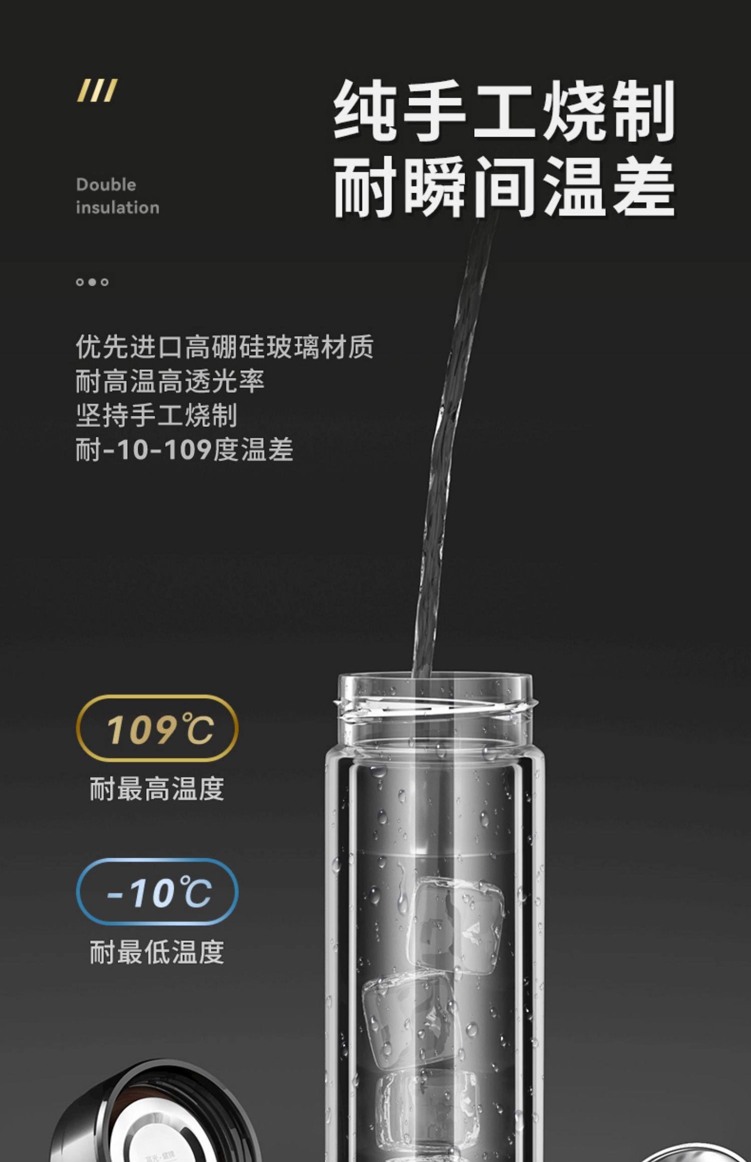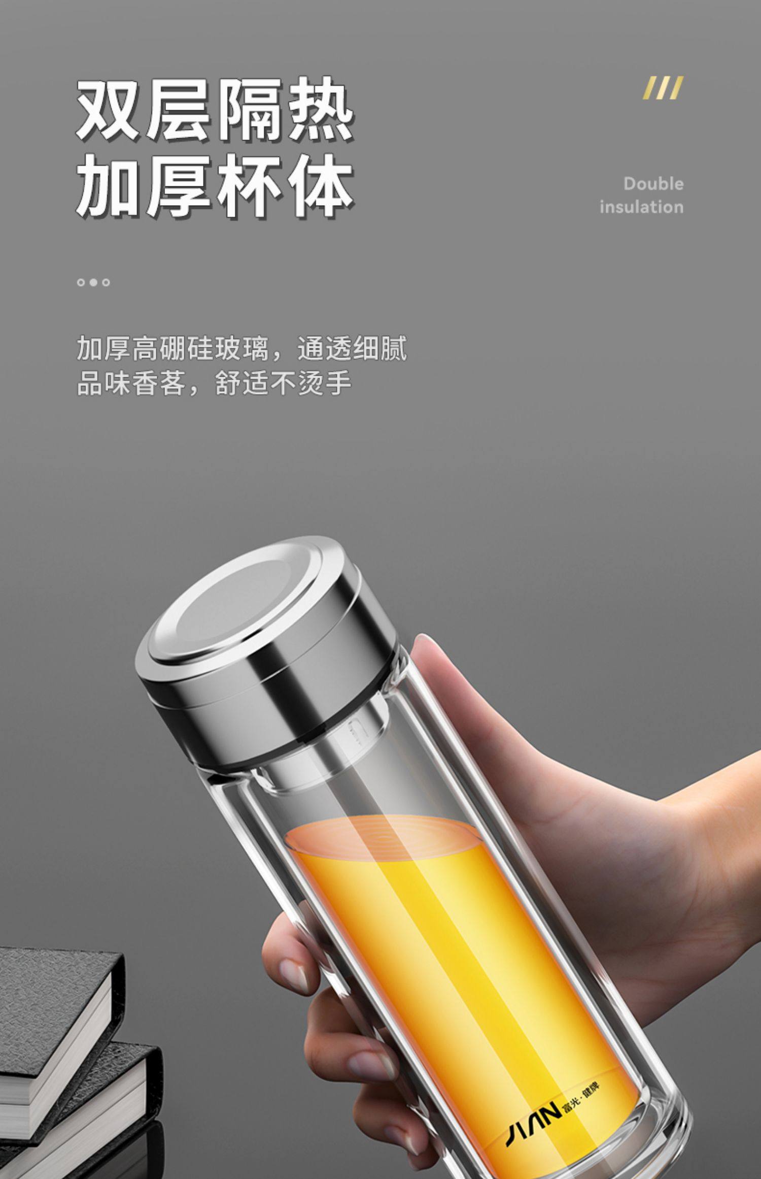 Fuguang Double-Layer Thickened Glass Cup for Men, Car-Mounted Business Water Cup, Large Capacity Household Tea and Water Separation Tea Brewing Cup
