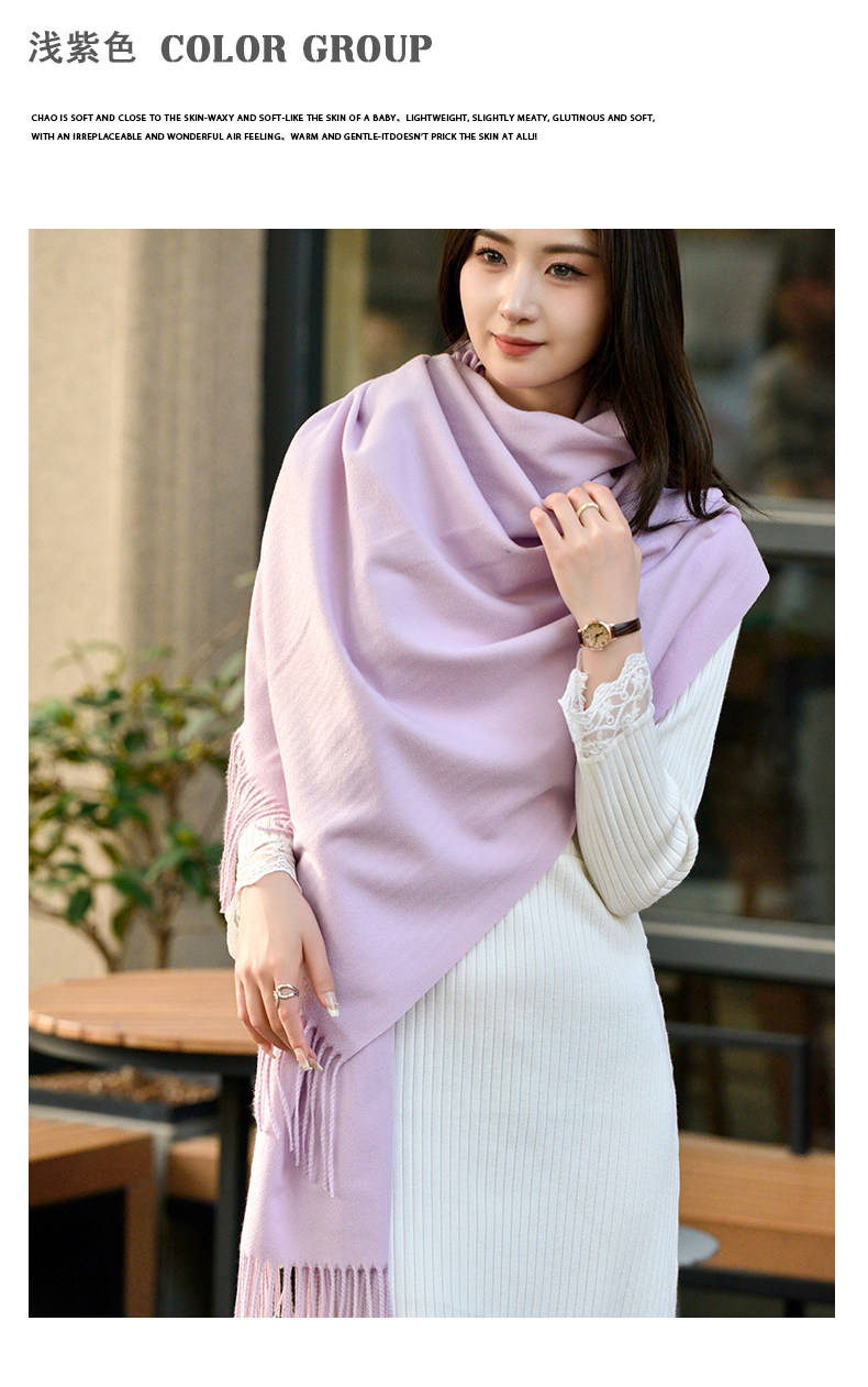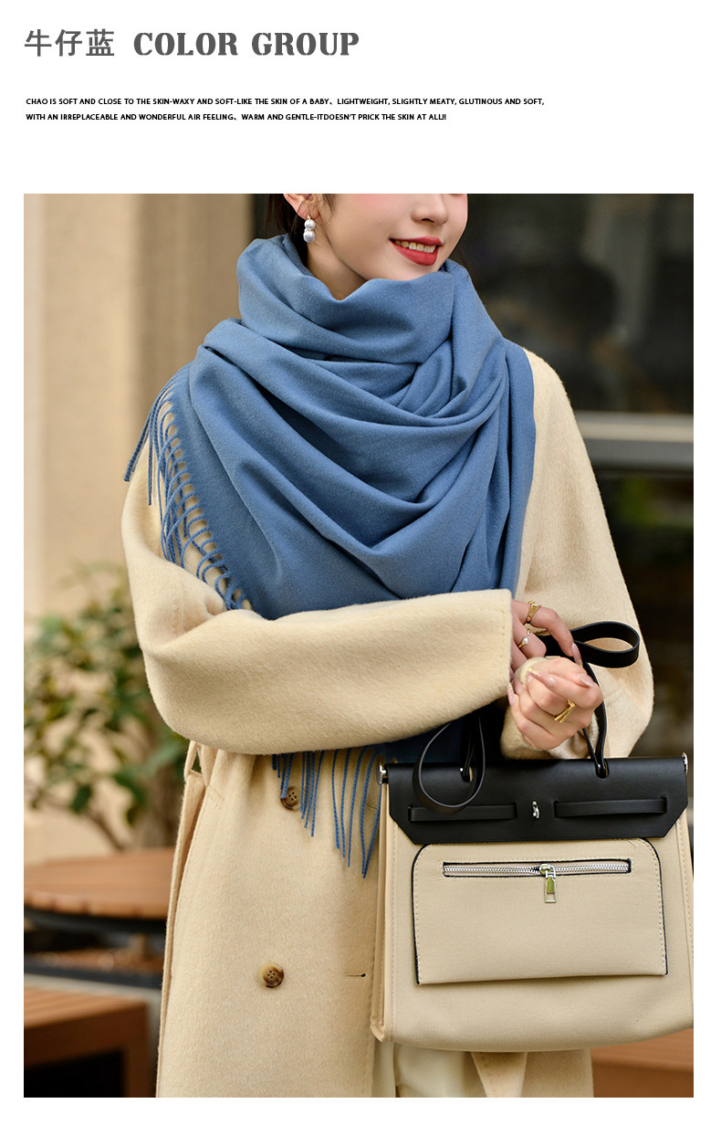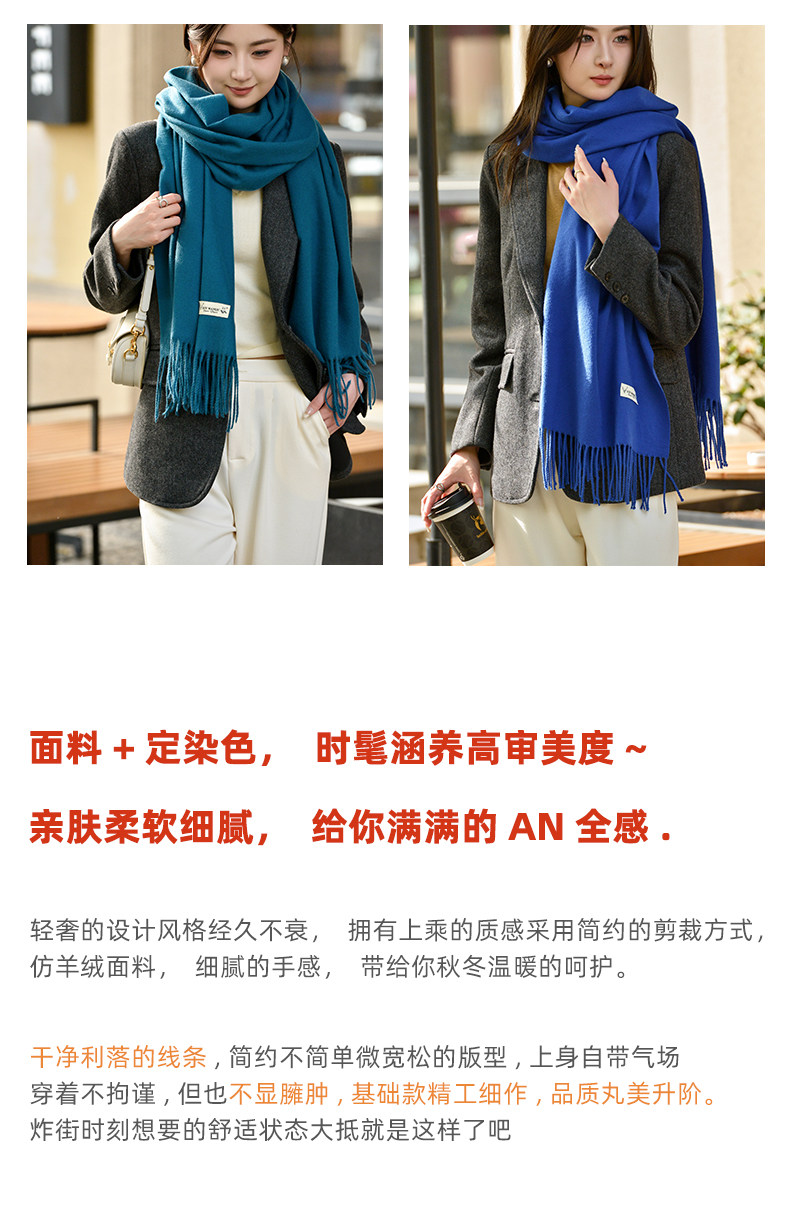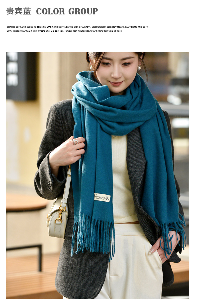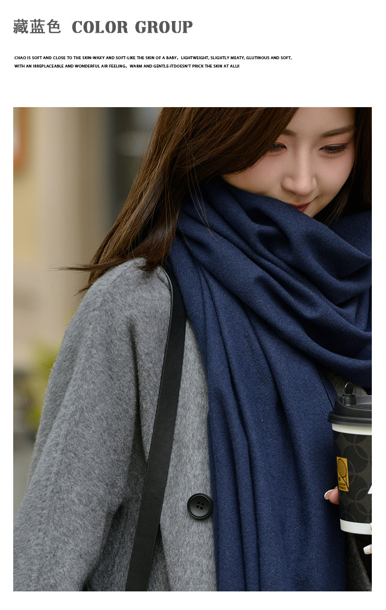 Klein Blue Scarf Women's 2024 Autumn and Winter Korean Version Versatile High-Quality Imitation Cashmere Solid Color Thickened Warm Shawl