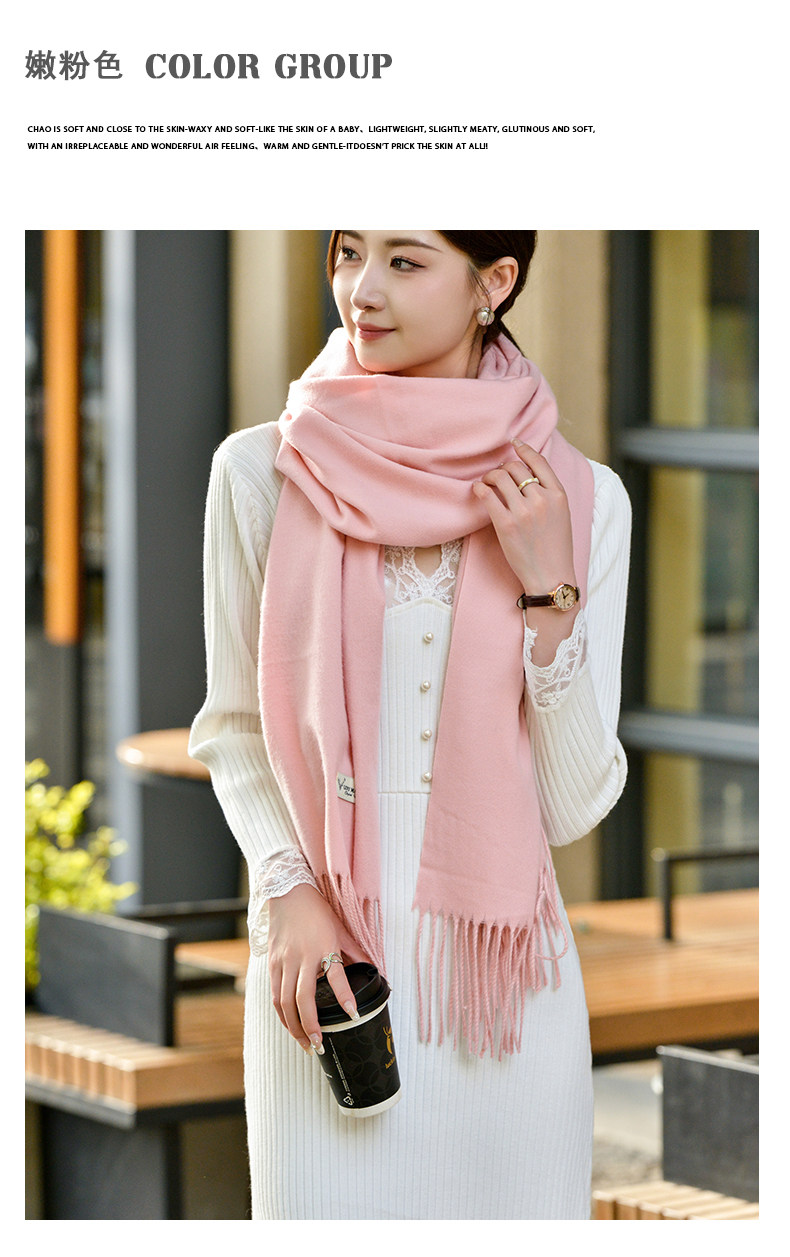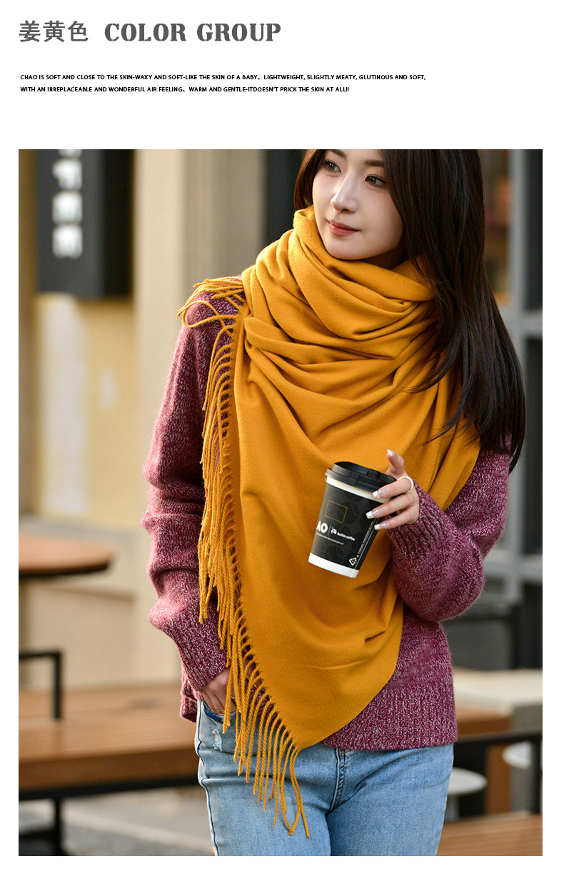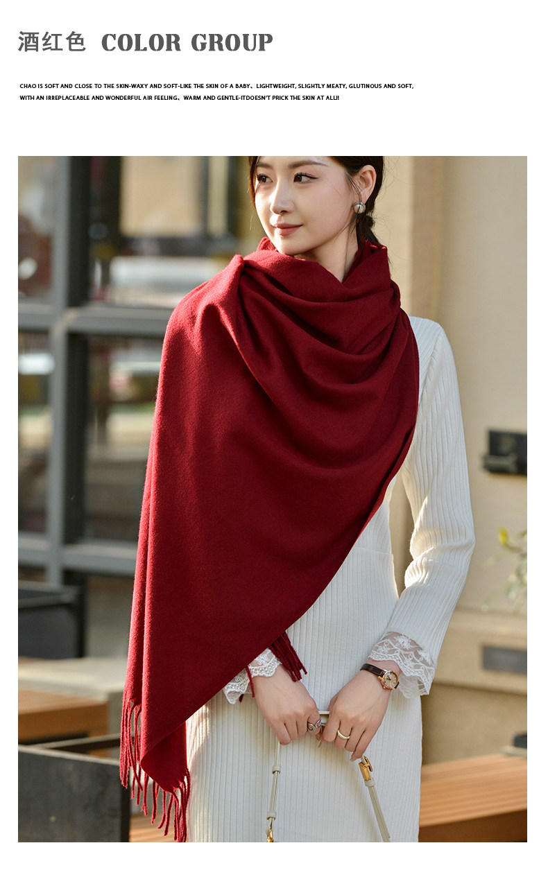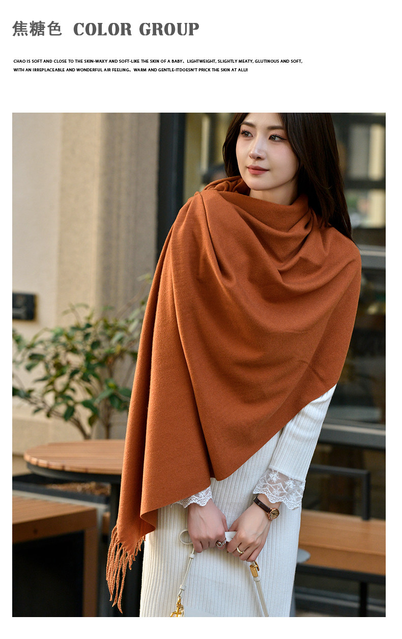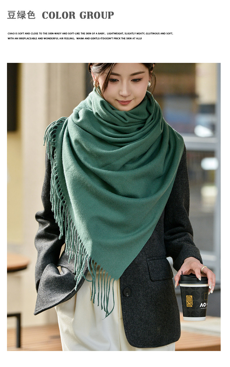 Klein Blue Scarf Women's 2024 Autumn and Winter Korean Version Versatile High-Quality Imitation Cashmere Solid Color Thickened Warm Shawl