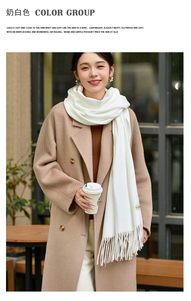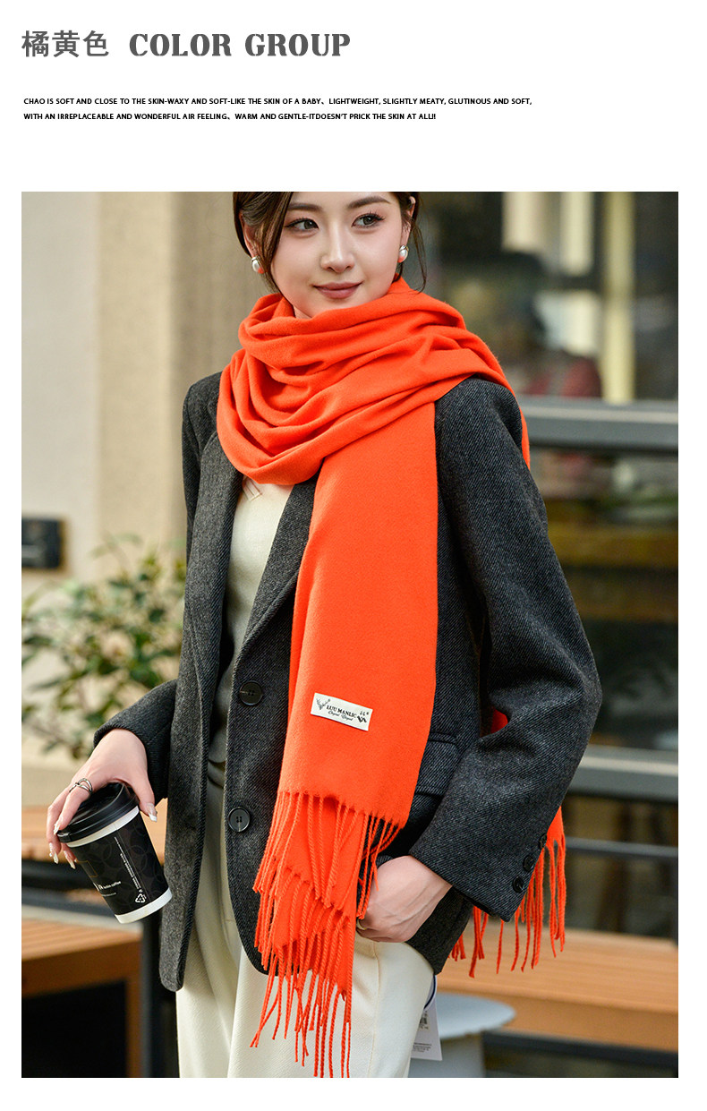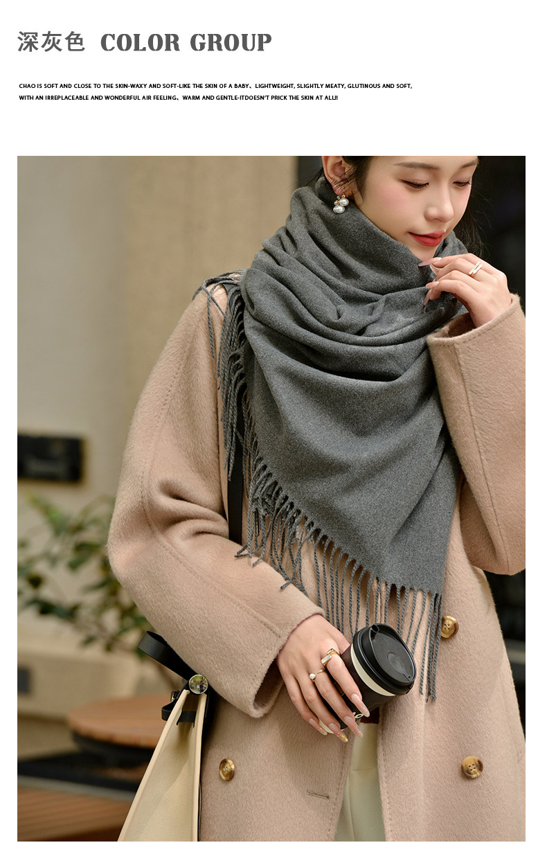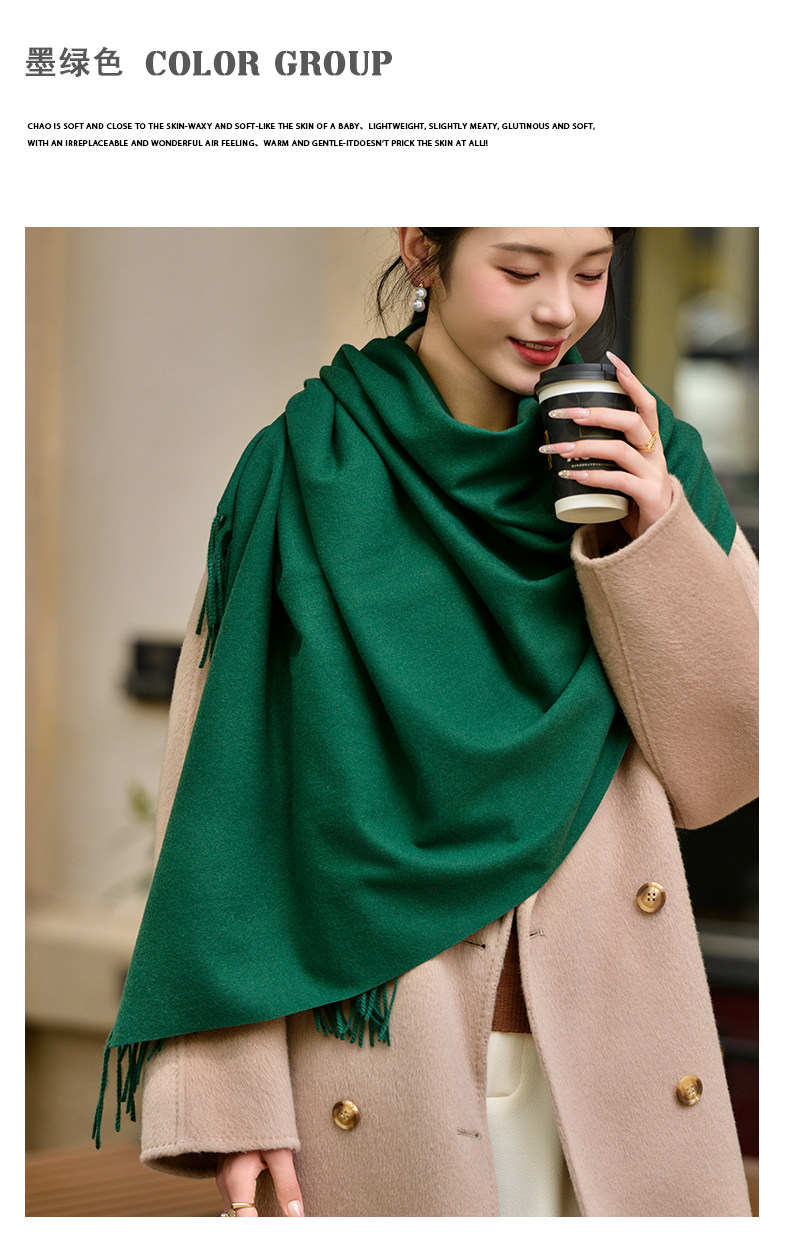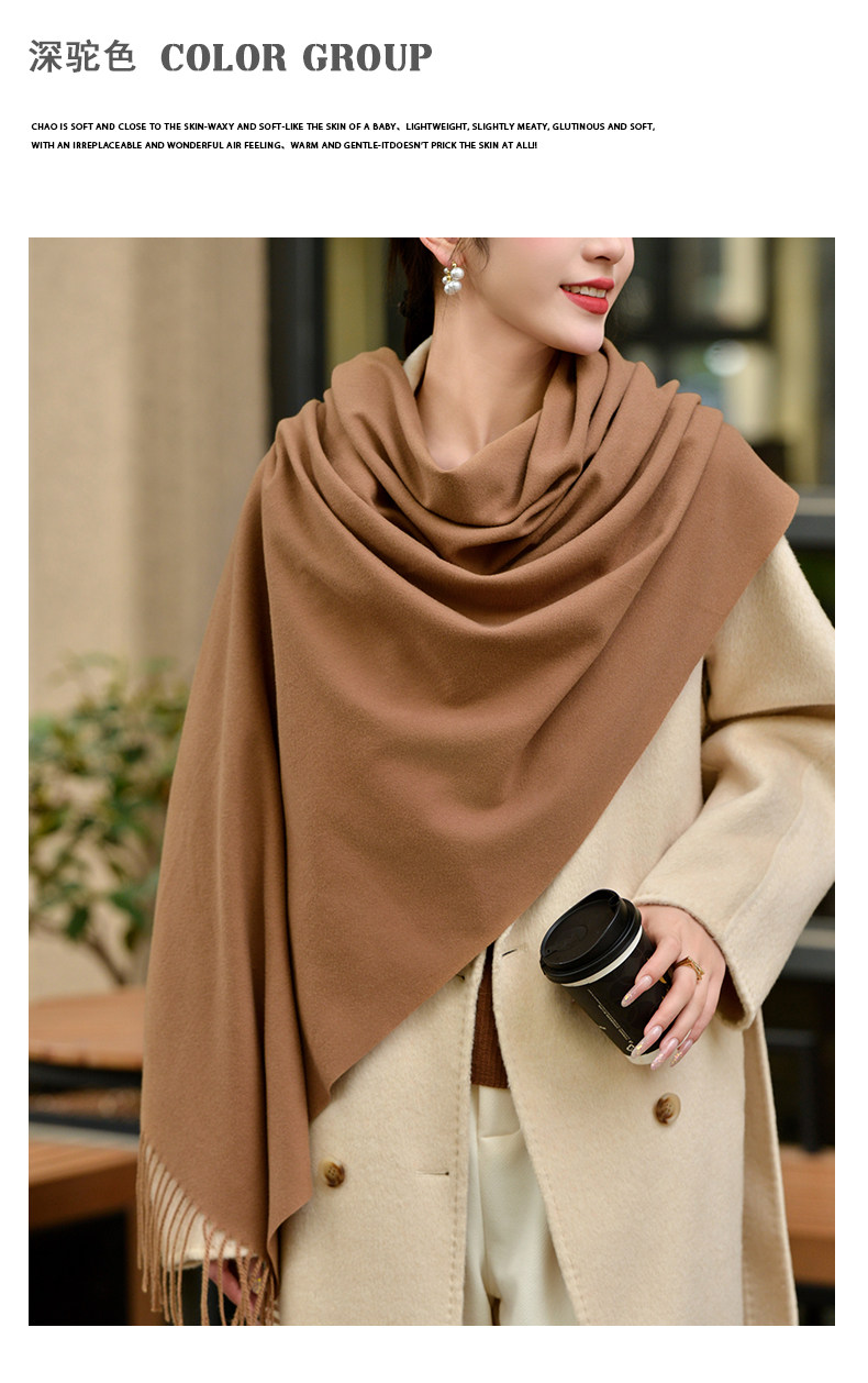 Klein Blue Scarf Women's 2024 Autumn and Winter Korean Version Versatile High-Quality Imitation Cashmere Solid Color Thickened Warm Shawl