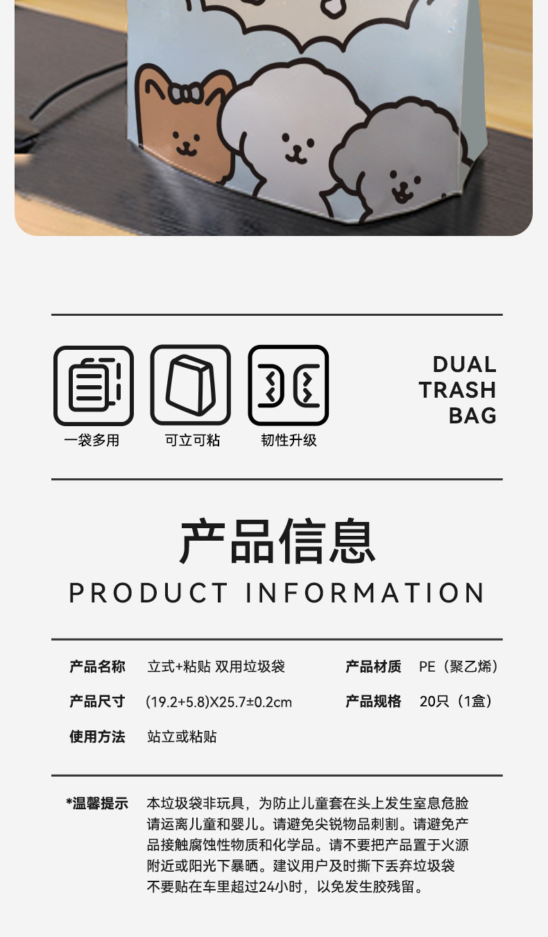 新款车载垃圾袋学生办公桌自立式可粘贴汽车内用便携垃圾桶清洁袋