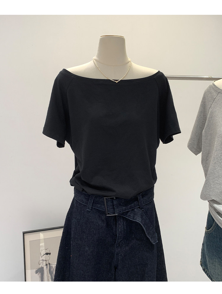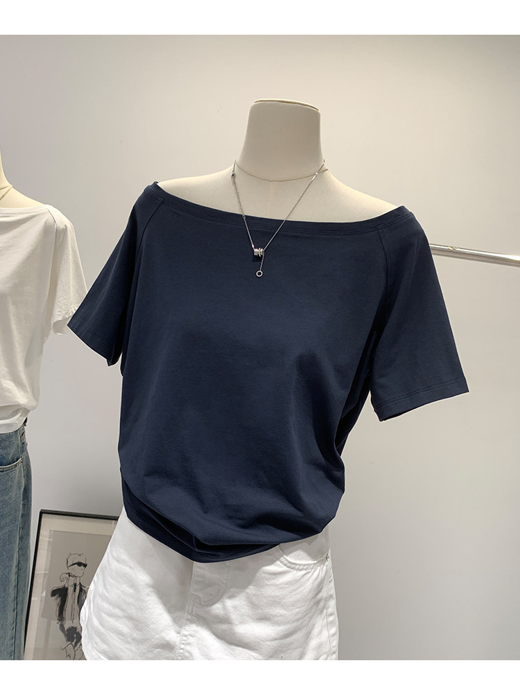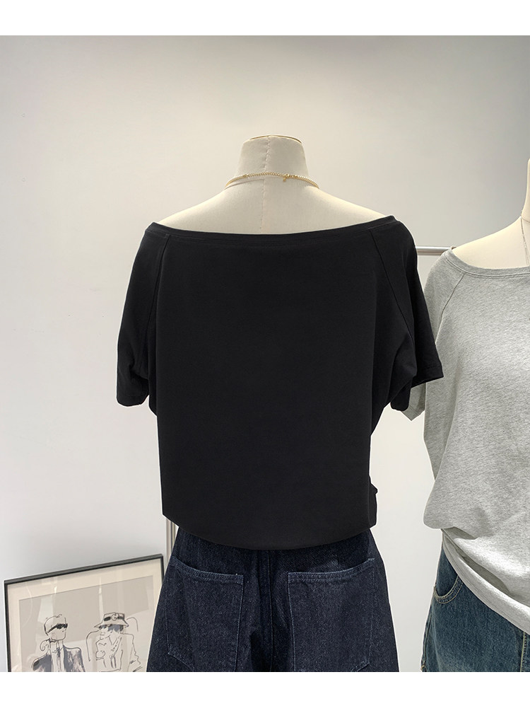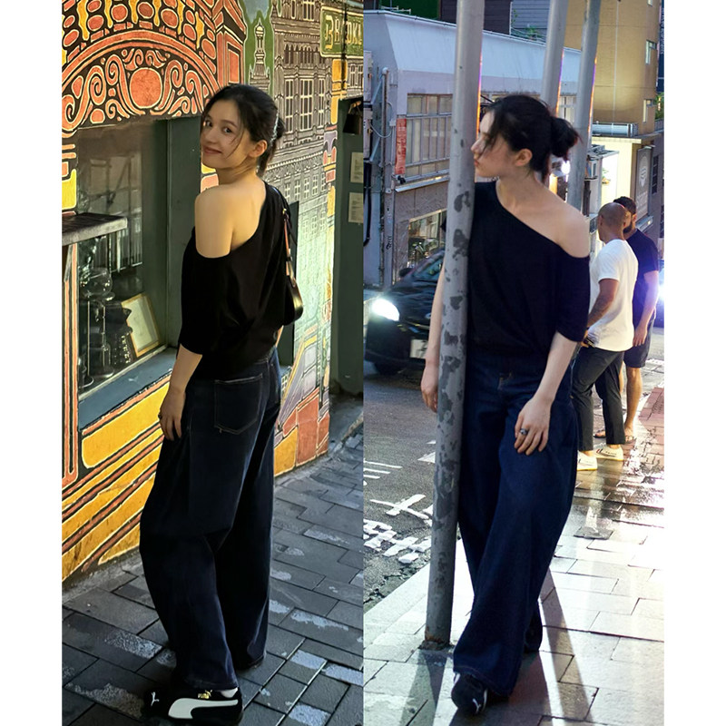 Zhang Jingyi Celebrity Style One-Shoulder Short-Sleeve Women's Off-Shoulder T-Shirt Summer New Large Size Loose Black Off-Shoulder Top