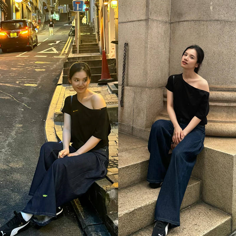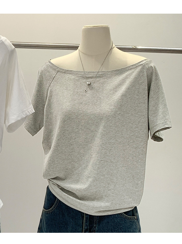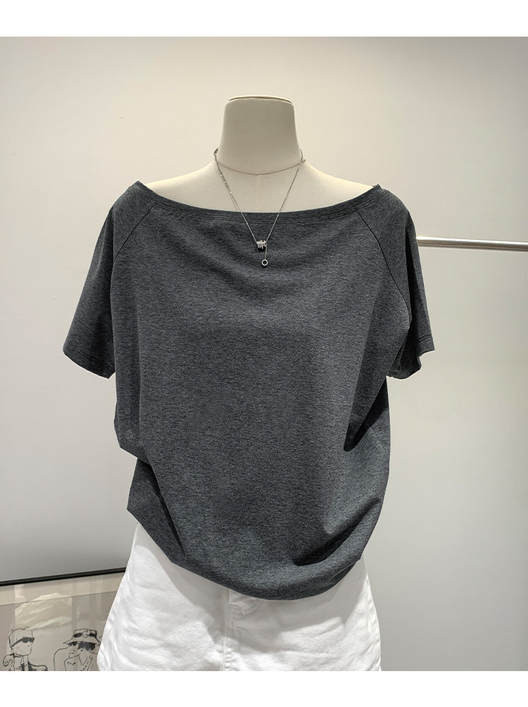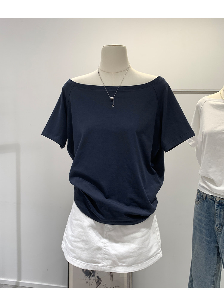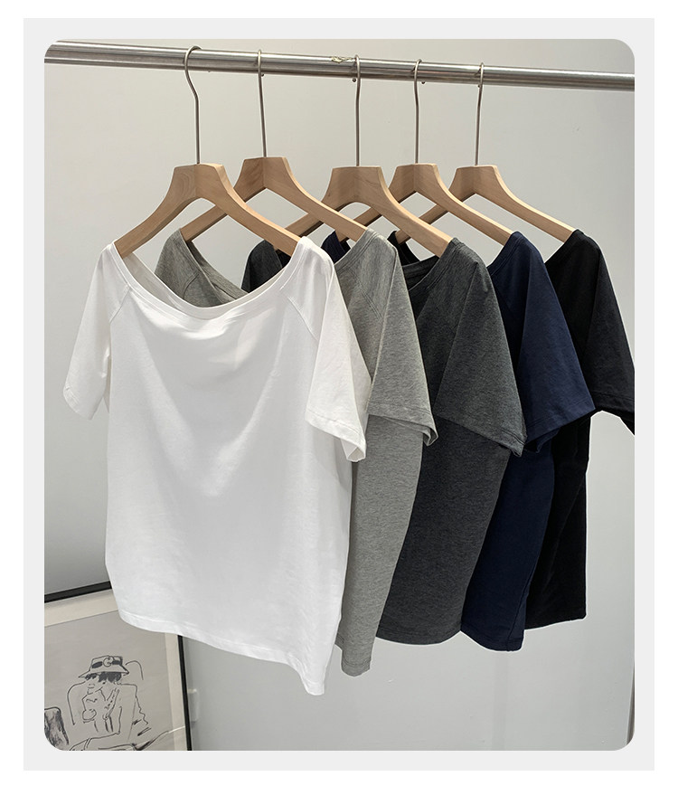 Zhang Jingyi Celebrity Style One-Shoulder Short-Sleeve Women's Off-Shoulder T-Shirt Summer New Large Size Loose Black Off-Shoulder Top