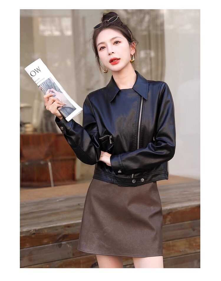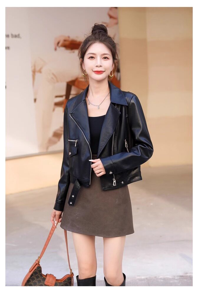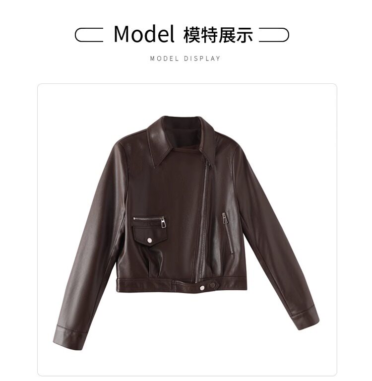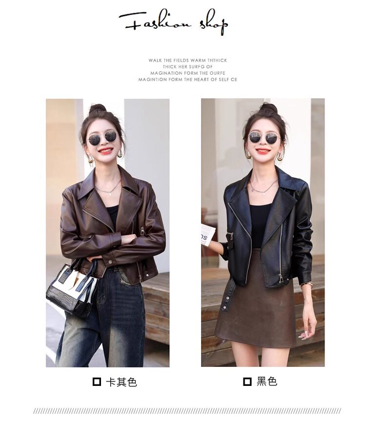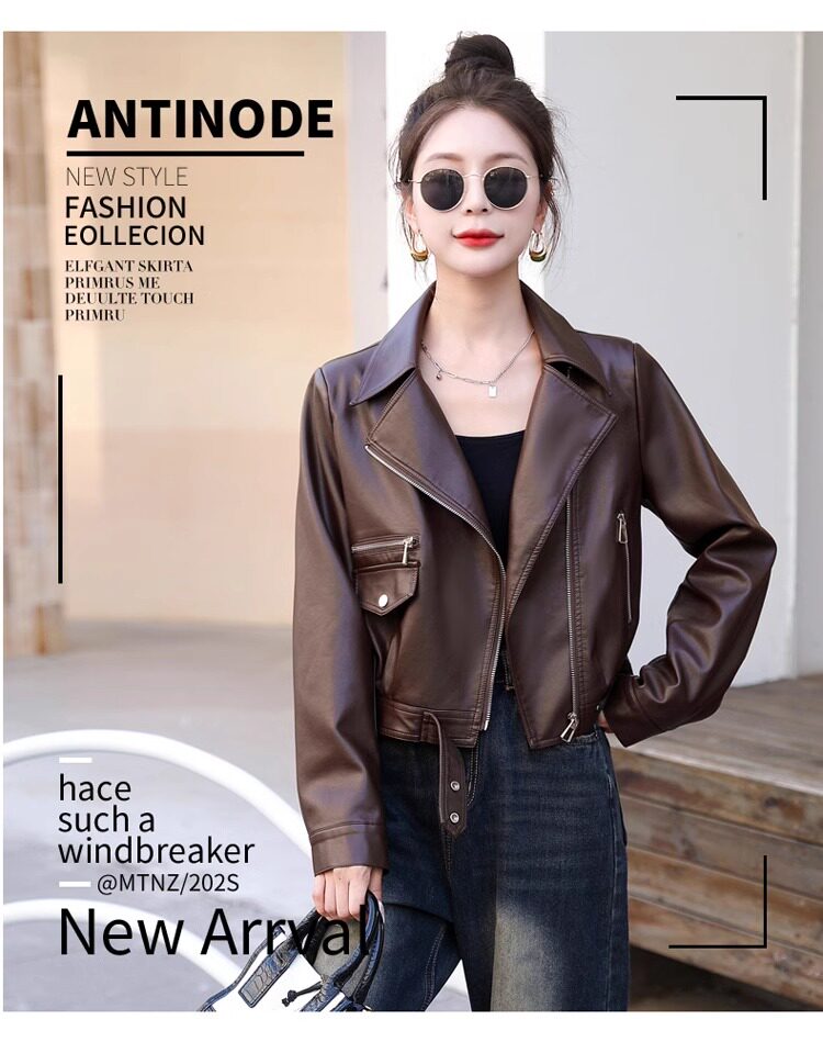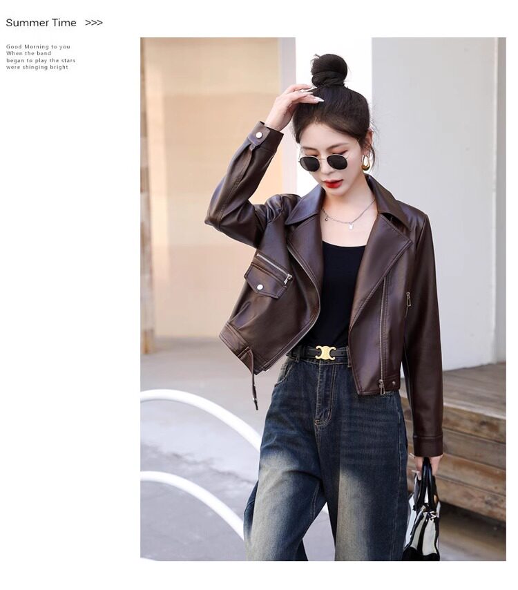 2025 New Autumn and Winter Leather Jacket Women's Short Motorcycle Brown High-Quality Velvet Thickened Small Leather Jacket