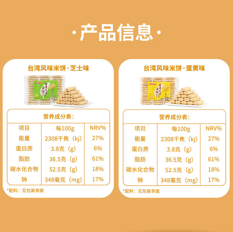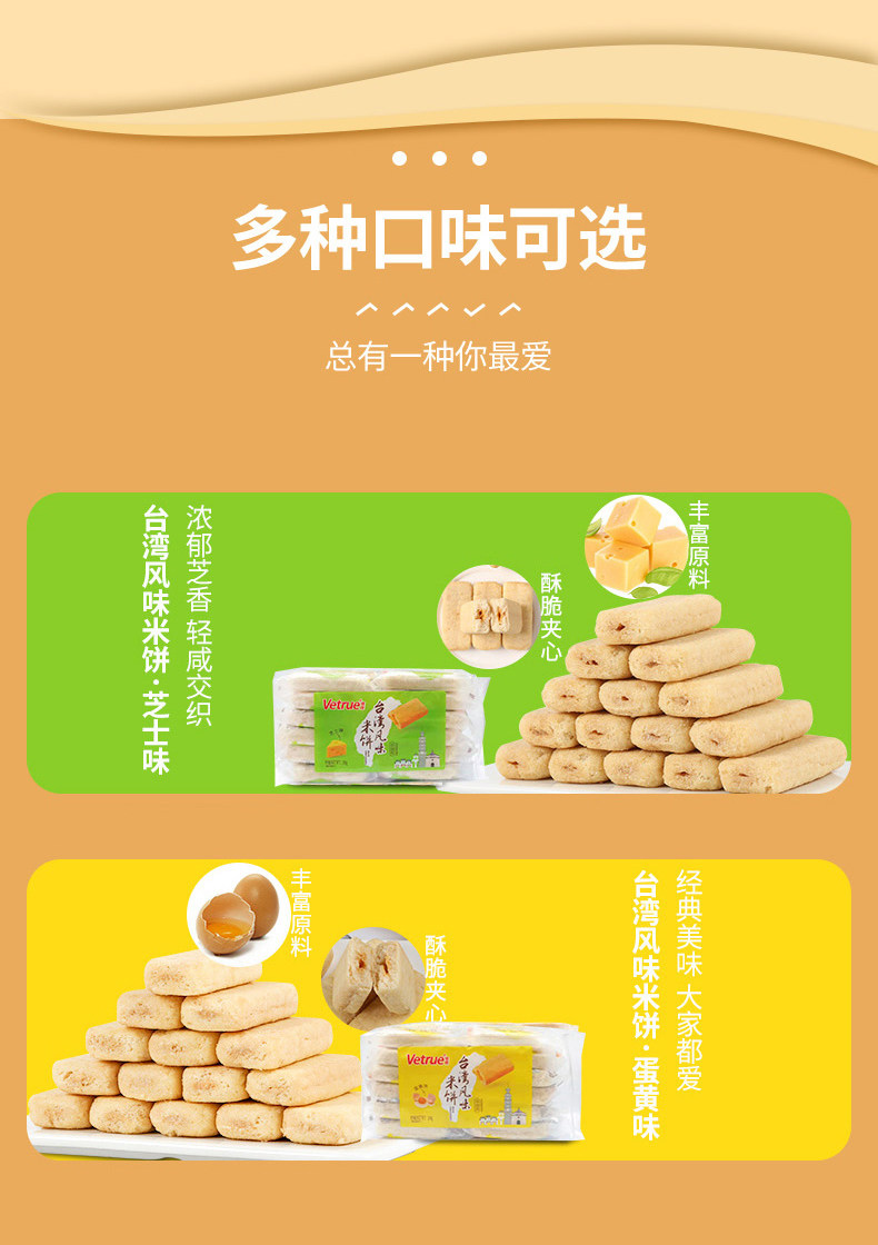 Weidu Taiwanese Style Rice Crackers 200g Bag Cheese Flavor Egg Yolk Flavor Biscuits Brown Rice Rolls Casual Puffed Snacks