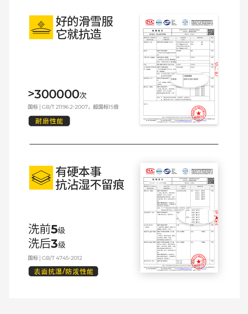 Waterproof Surface Moisture Resistance: ≥4-5 Levels before Washing, ≥3-4 Levels after Washing,Hydrostatic Pressure: before Washing - Fabric ≥ 50Kpa, Fabric Seams ≥ 40Kpa after Washing - Fabric ≥ 40Kpa, Fabric Seams ≥ 30Kpa