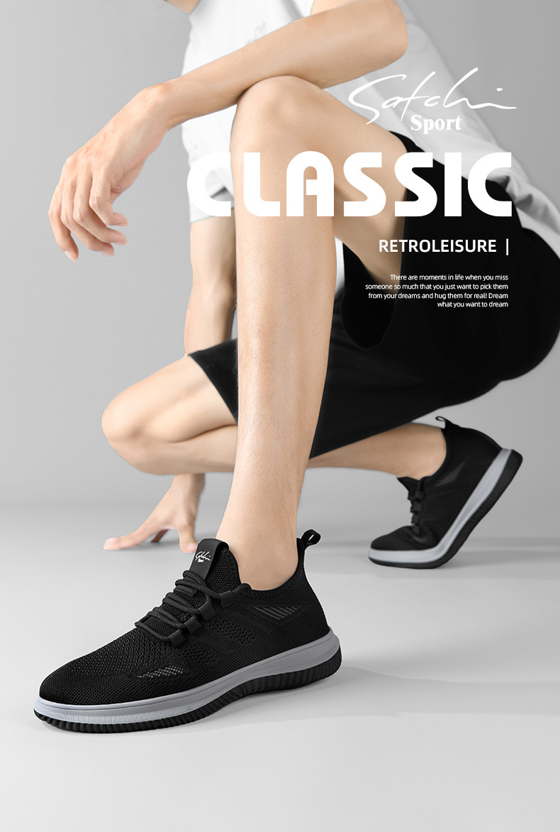 Satchi/Sachi Men's Shoes Genuine Winter 2025 New Breathable Thin Mesh Shoes Slip-On Sports Running Shoes