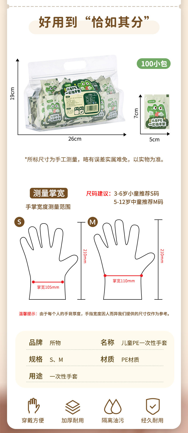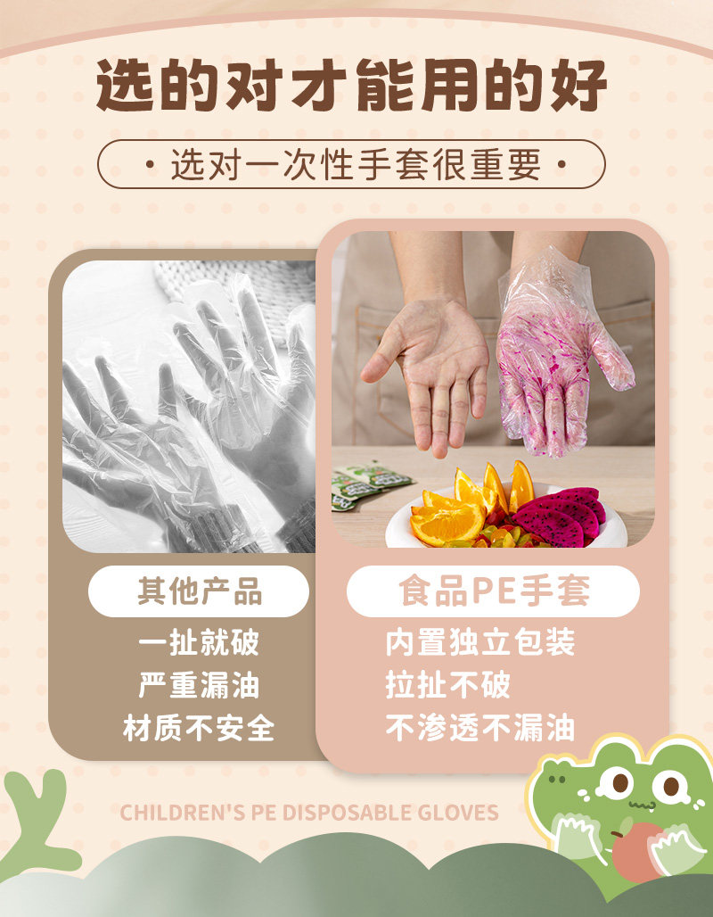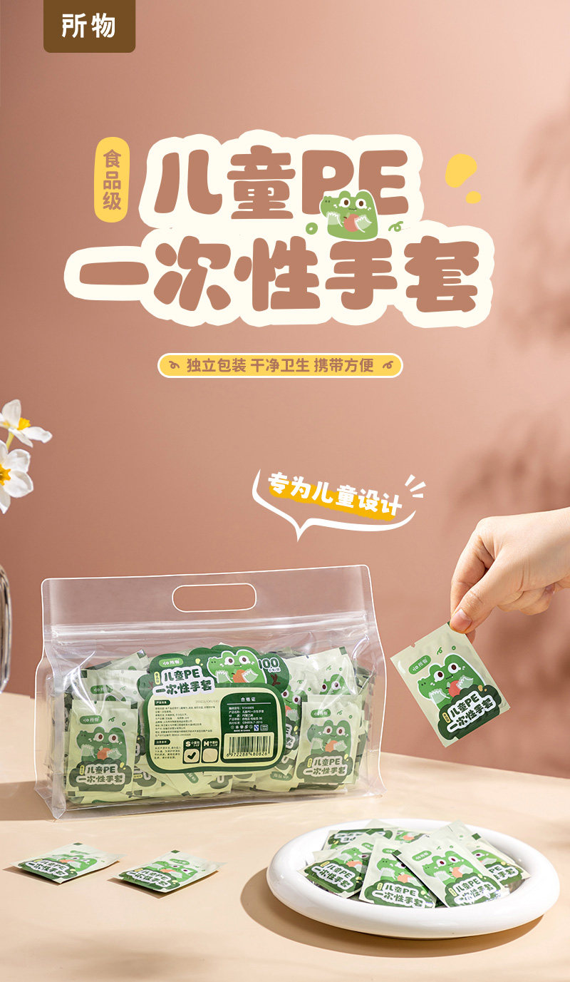 [Good Things Experience] All Things Kidsren's Disposable Gloves Food Grade Single Package Thickeneded Plastic Film Pe for Babies