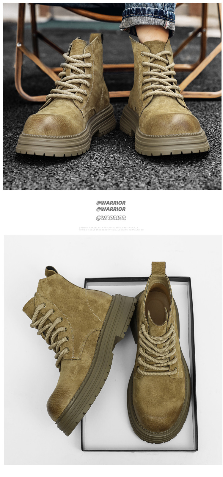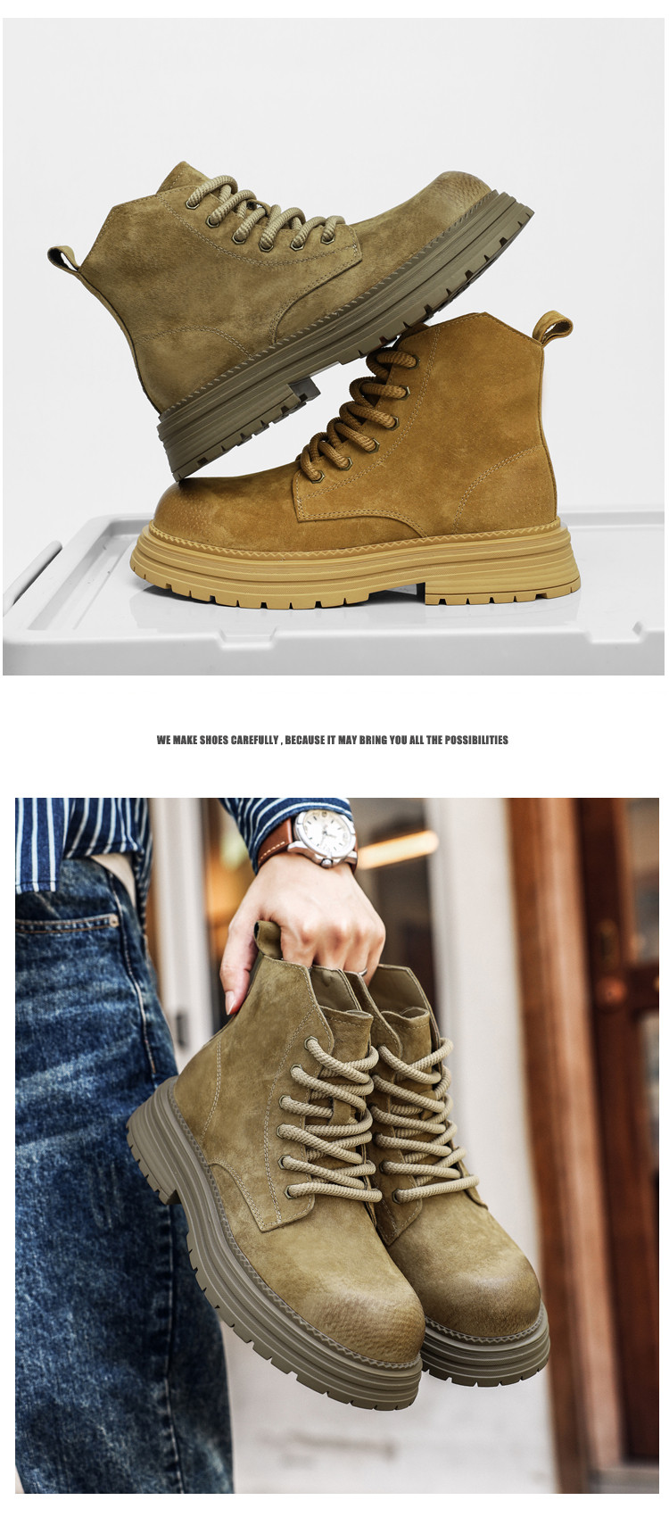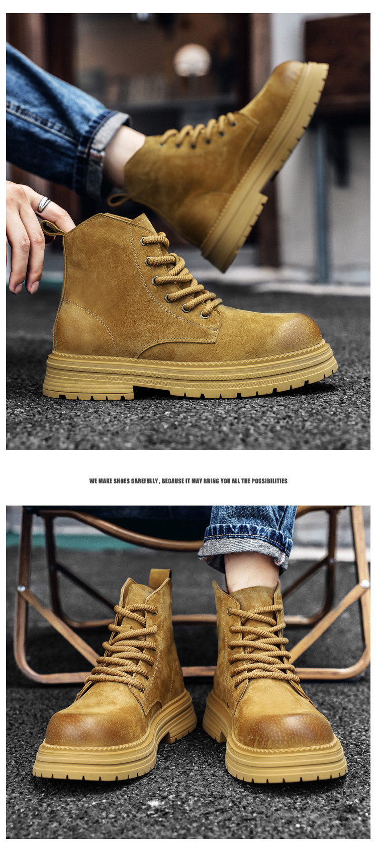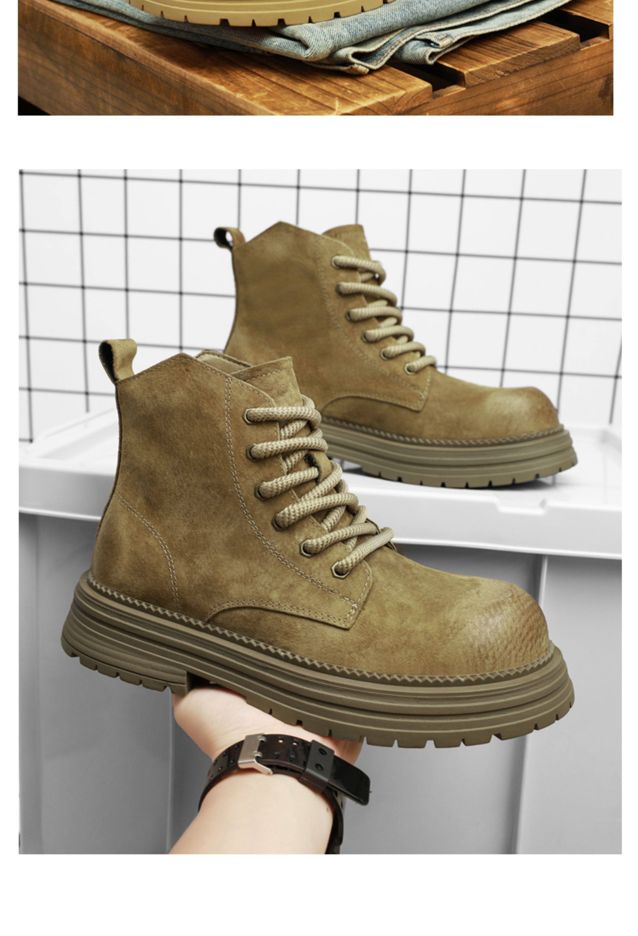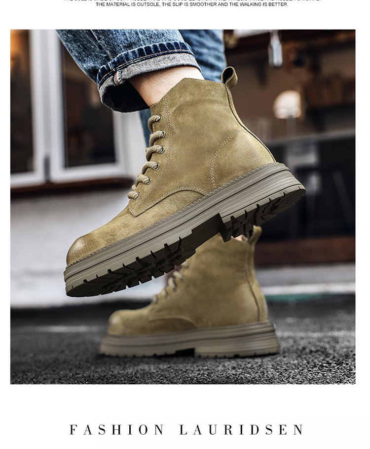 Martin Boots for Men, New Winter Style, Fleece-Lined High-Top Shoes, British Style, Genuine Leather, Korean Version, Trendy Mid-Top Casual Work Boots