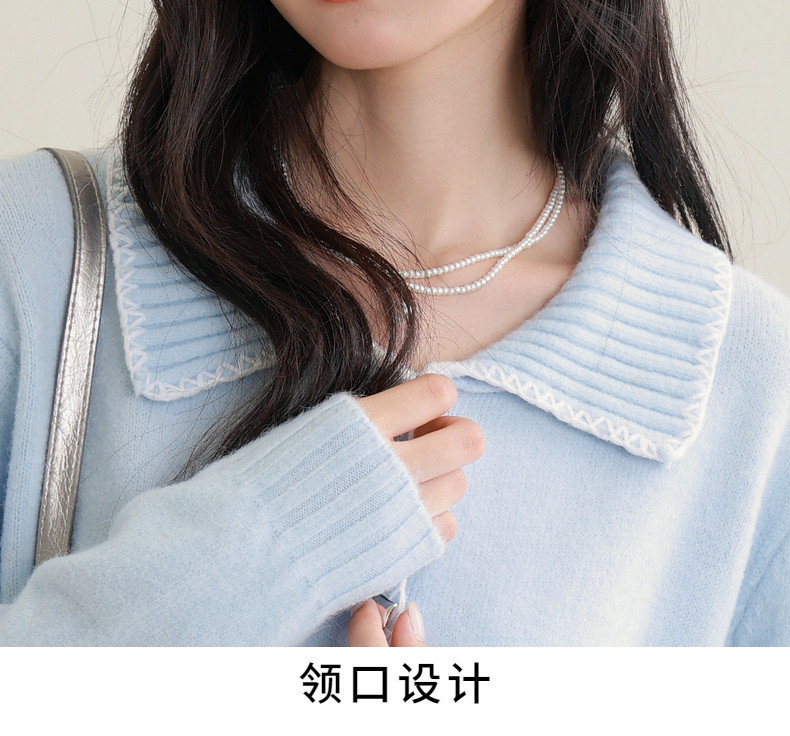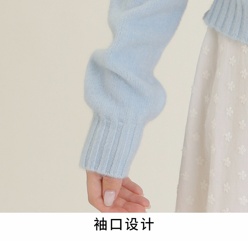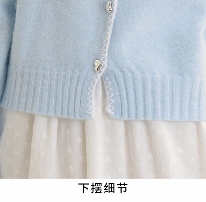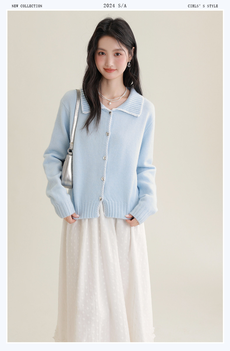 2024 Spring and Autumn New Blue Long-Sleeve Knitted Cardigan for Women, Short Sweet Inner Layer Small Jacket, Elegant Sweater Top