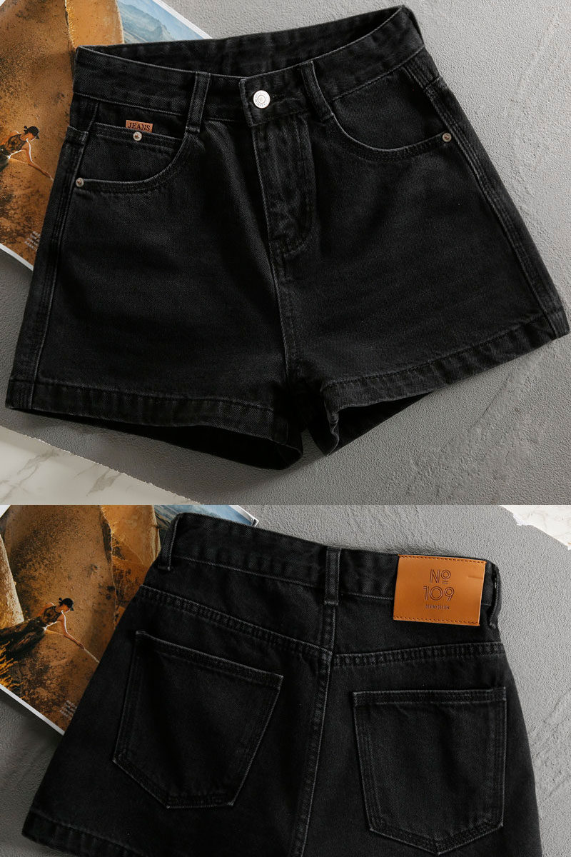 Black Denim Shorts for Women, Loose Fit, New 2025 European Style, High-End Fashion, A-Line, High-Waisted, Wide-Leg, Petite Hot Pants