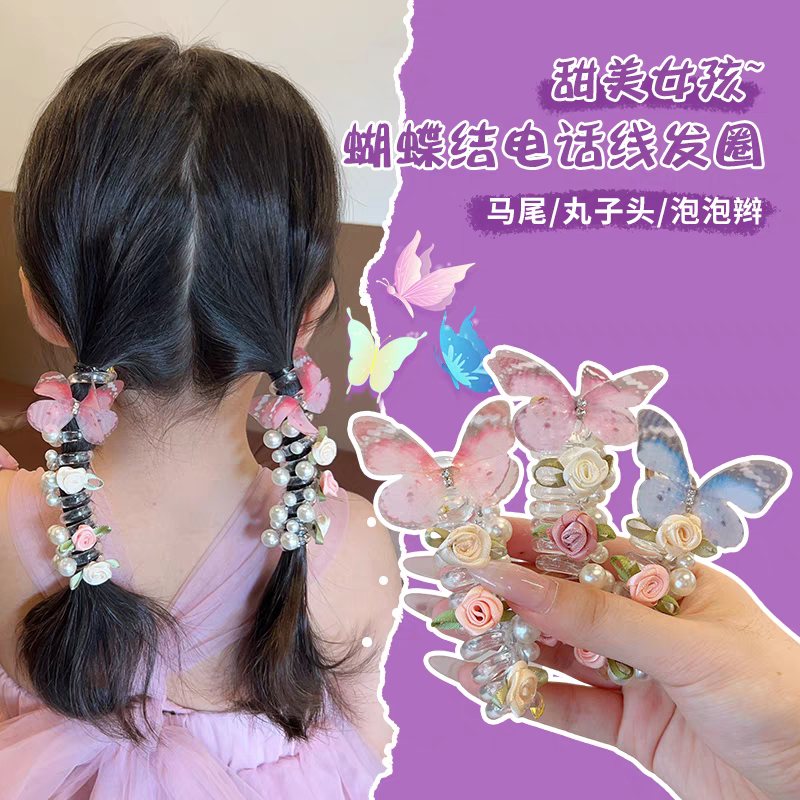 Haargummi mit Schleife für Kinder, fortschrittliches Pferdeschwanz-Artefakt, fortschrittliches Telefonkabel-Stirnband, geflochtene Blasengeflecht-Kopfbedeckung für Mädchen