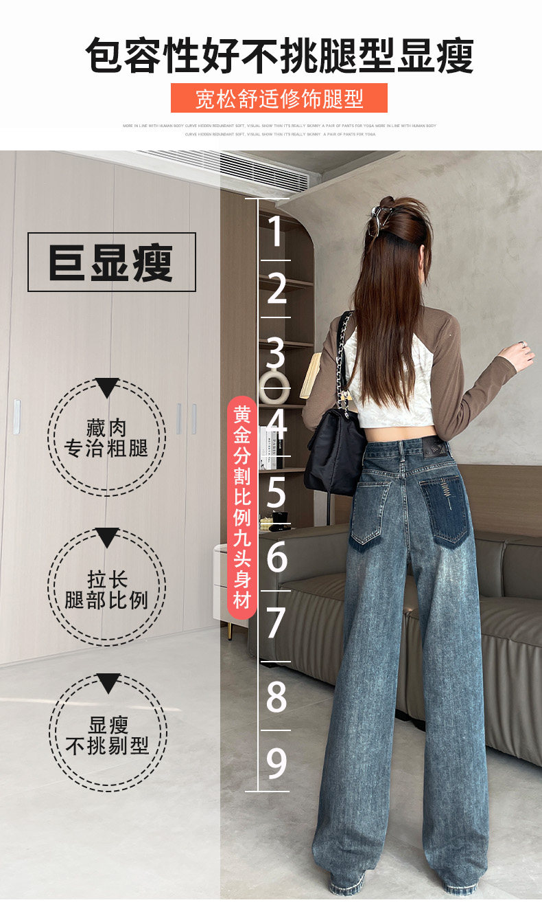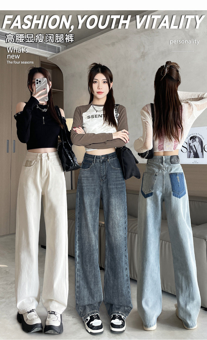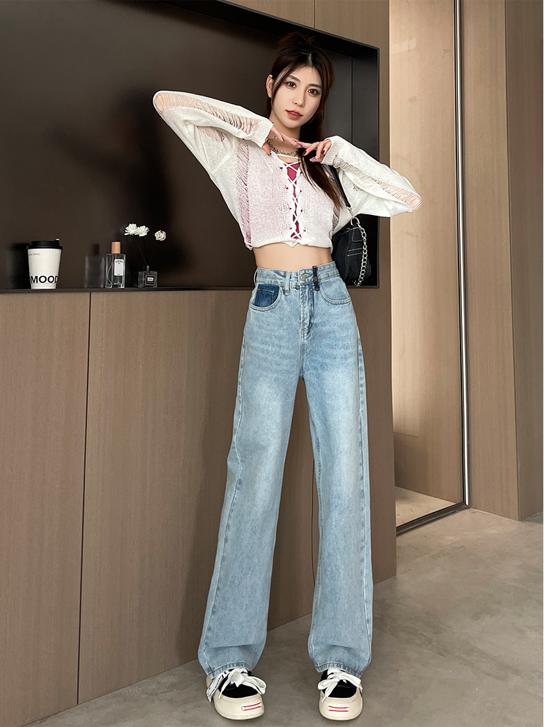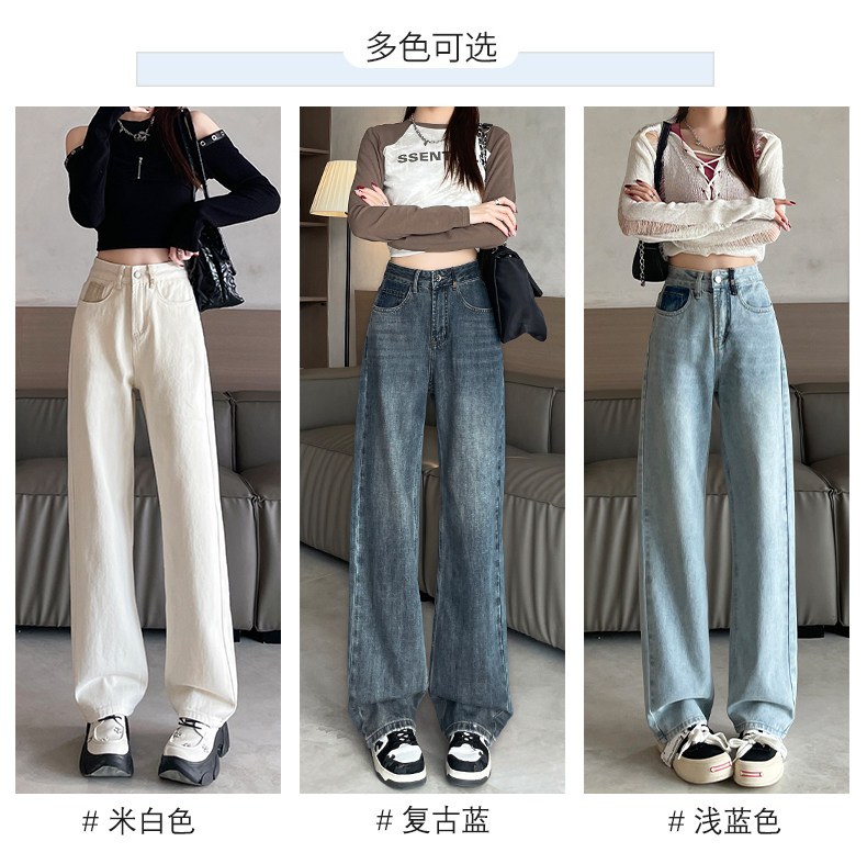 Vintage Blue Jeans for Women 2026 New Spring and Autumn Style Petite High-Waisted Loose Narrow Wide-Leg Pants for Autumn