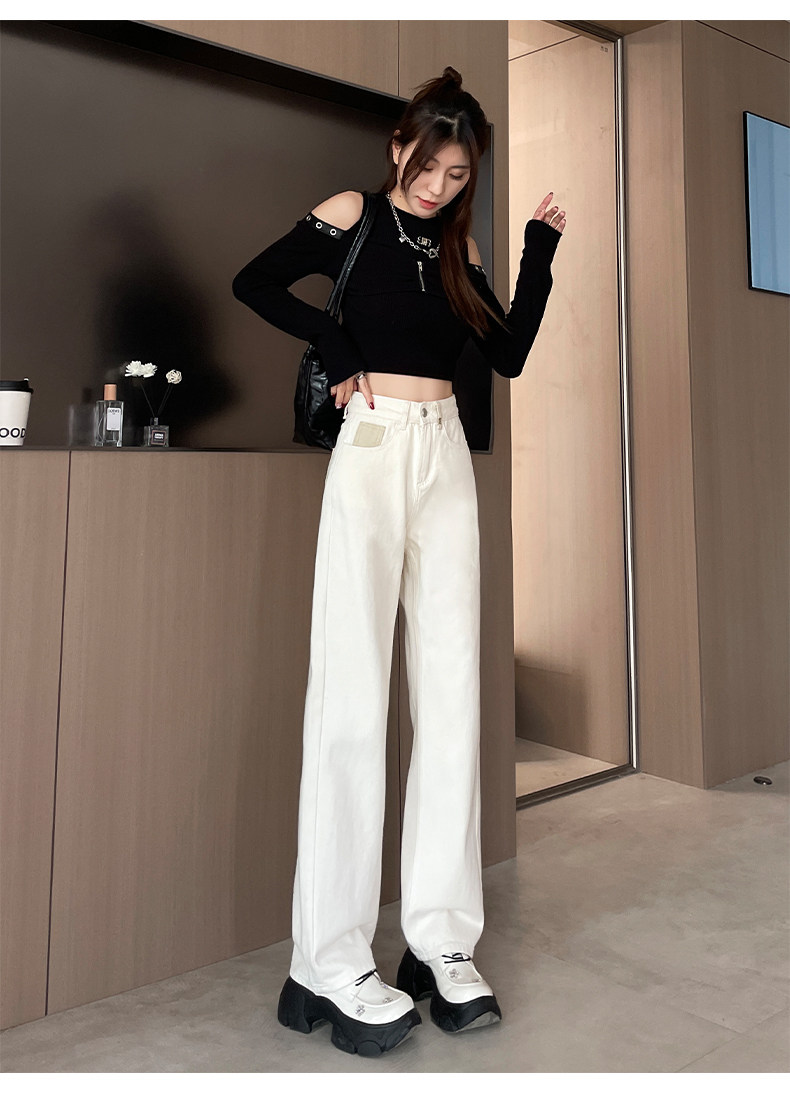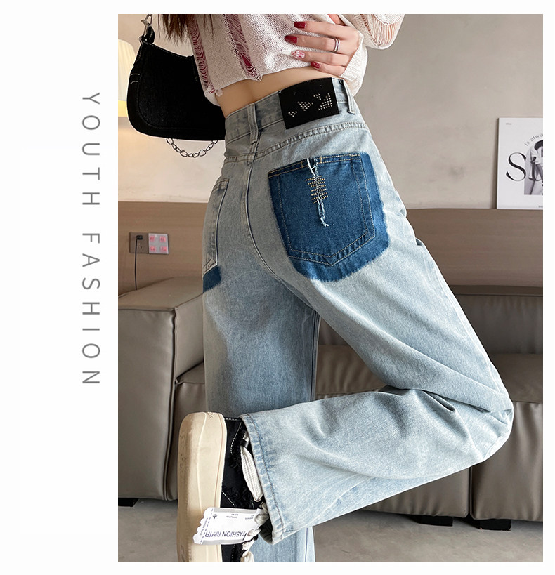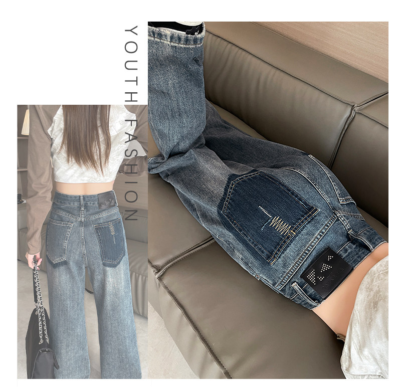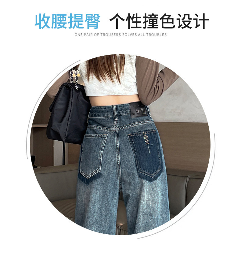 Vintage Blue Jeans for Women 2026 New Spring and Autumn Style Petite High-Waisted Loose Narrow Wide-Leg Pants for Autumn
