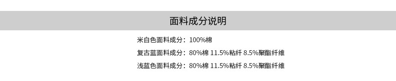 Material Composition Cotton 80% Viscose Fiber (Viscose Fiber) 11.5% Polyester Fiber 8.5%