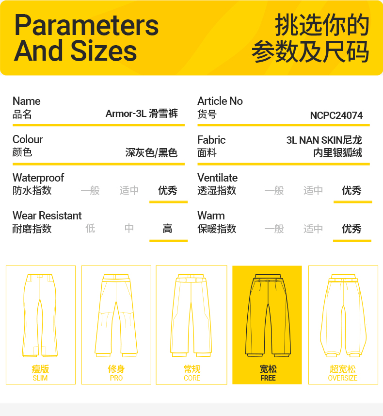 Nanen Single and Double Board Ski Pants for Women, 3L Fully Taped New Snow Pants, Waterproof, Wear-Resistant, Fleece-Lined, Men's Free Pants Style
