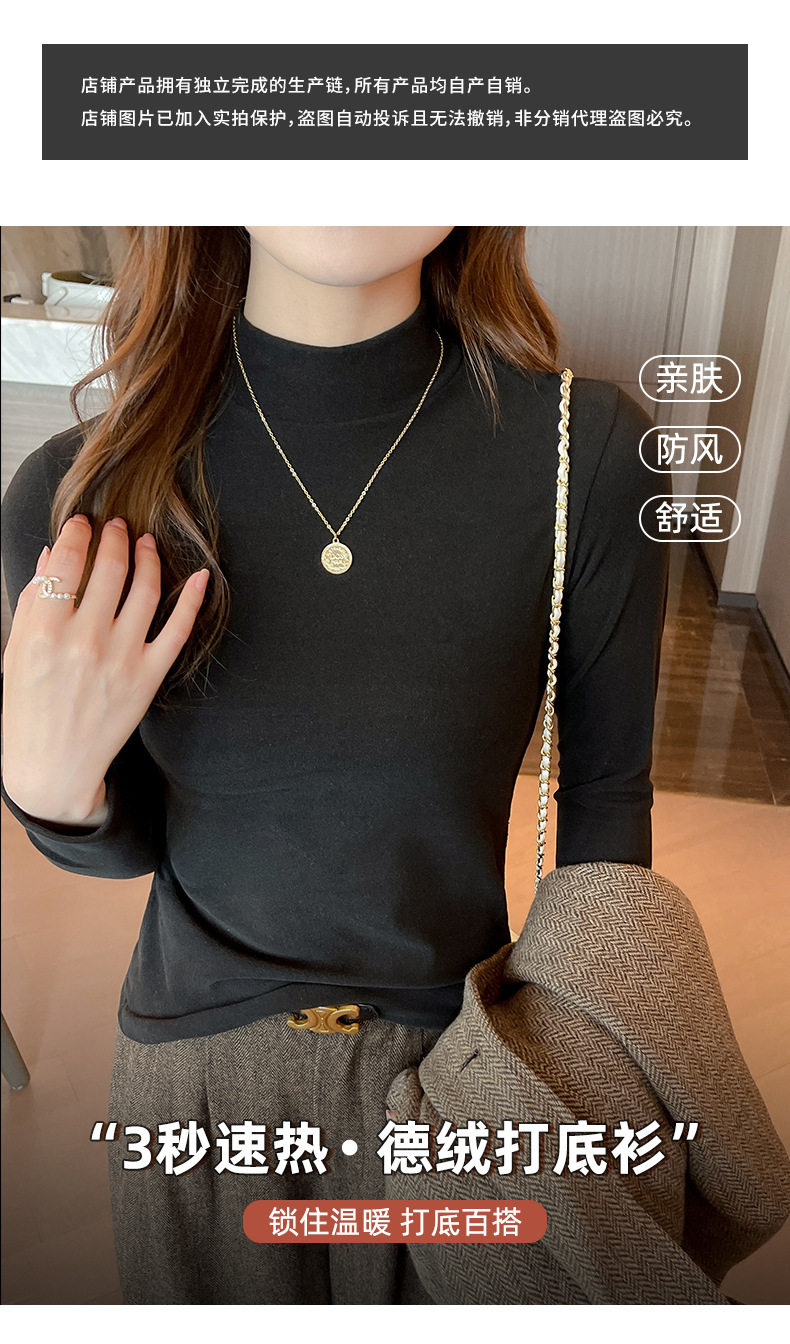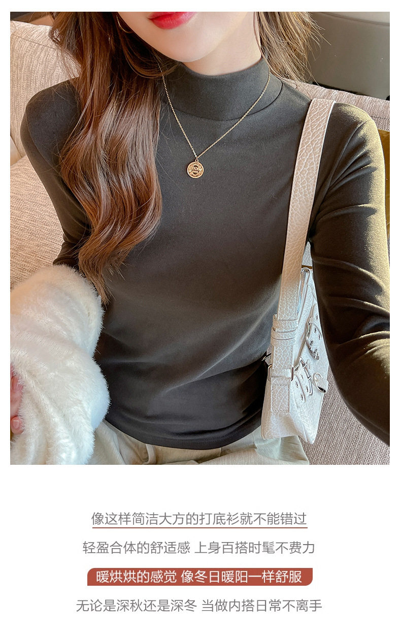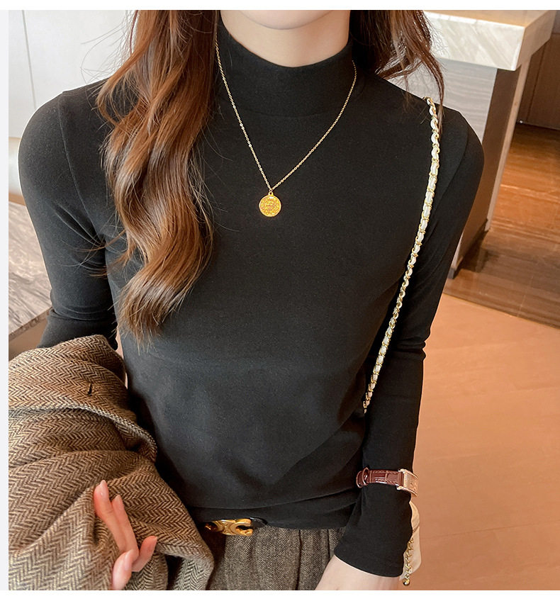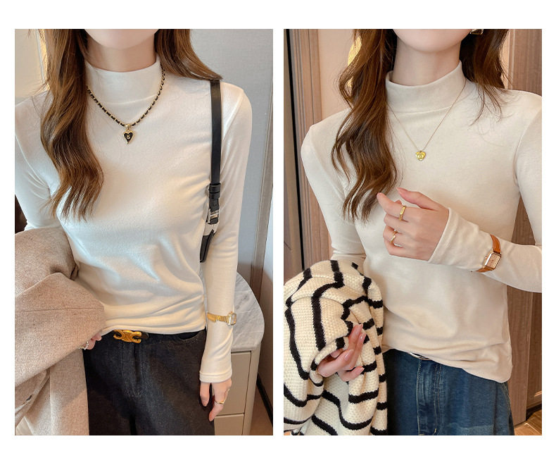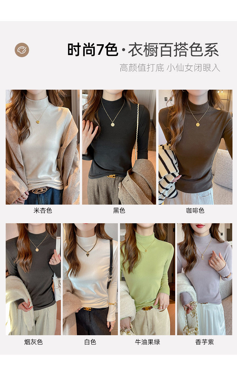 Autumn and Winter Microfiber Thermal Half-Turtleneck Base Shirt for Women, New Style Long-Sleeve Mid-Neck T-Shirt That Can Be Worn Outside, Regular Shoulder Fit