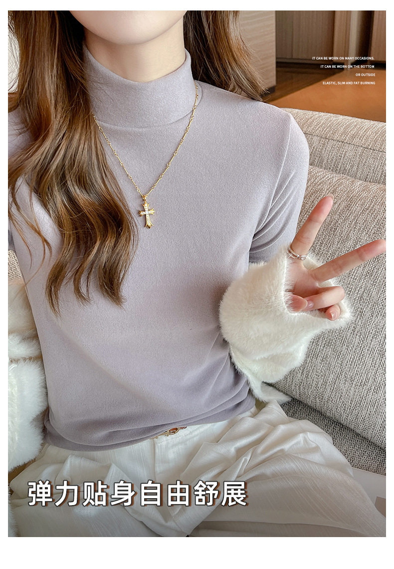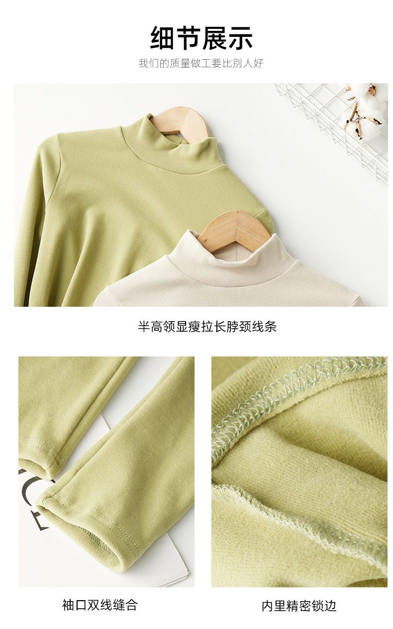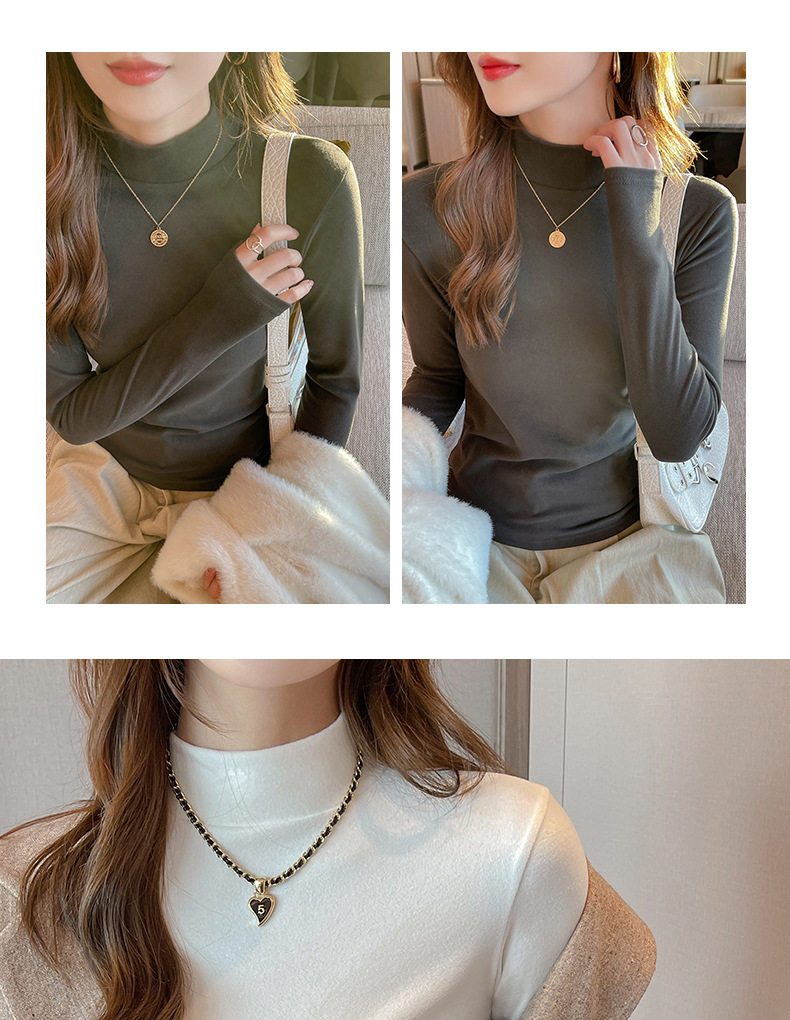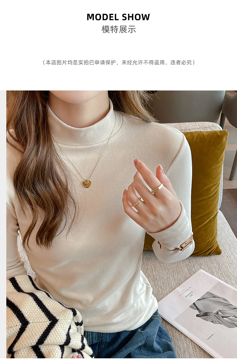 Autumn and Winter Microfiber Thermal Half-Turtleneck Base Shirt for Women, New Style Long-Sleeve Mid-Neck T-Shirt That Can Be Worn Outside, Regular Shoulder Fit