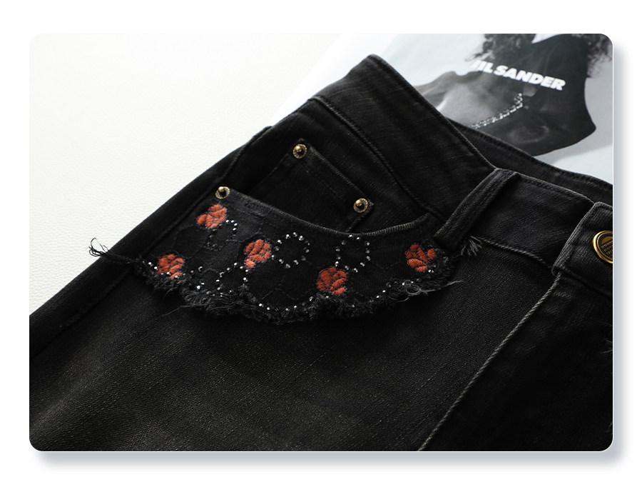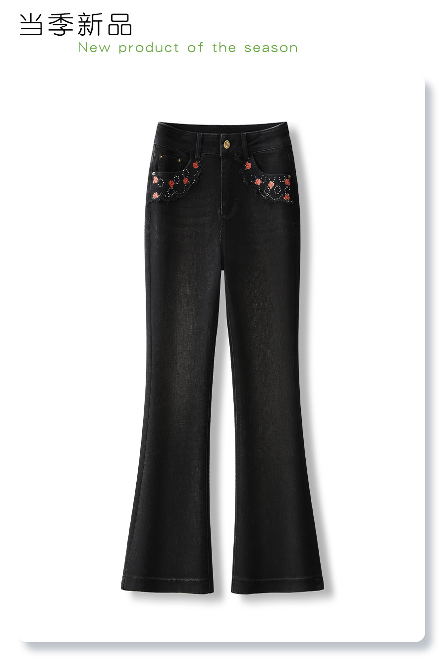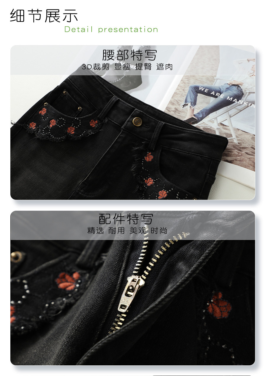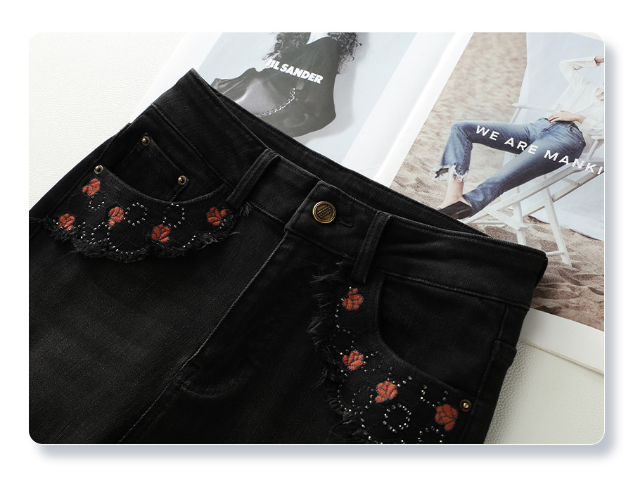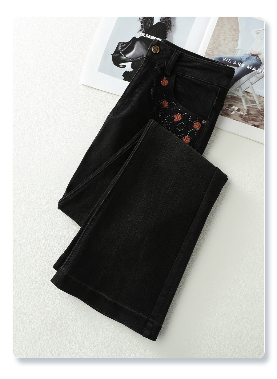 Black bootcut jeans for women 2025 new autumn and winter embroidered high-waisted horse hoof pants slimming petite flared pants