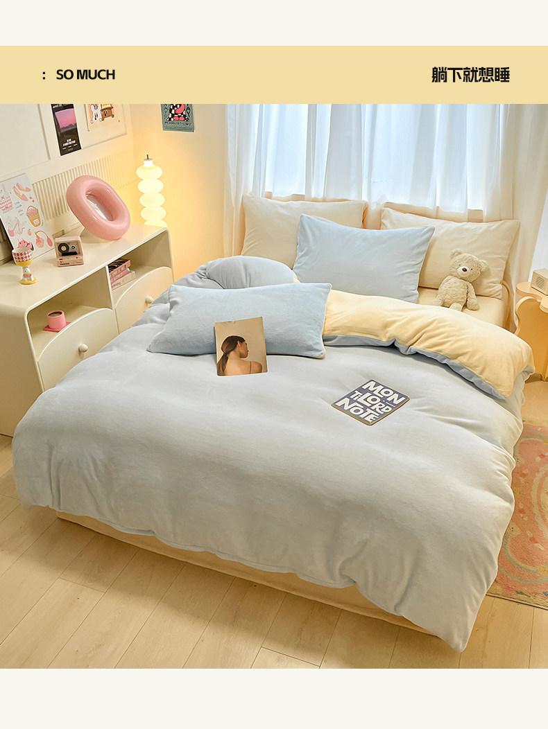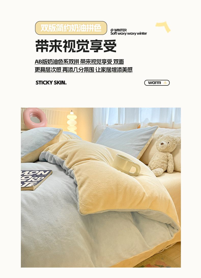 双面牛奶绒四件套2025新款冬季加厚加绒珊瑚绒被套冬天法兰绒床单