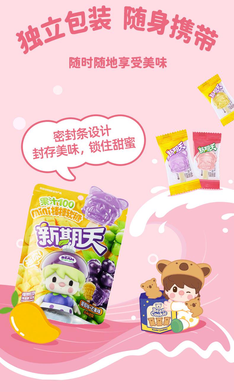 New Tian Tian Fruit Juice 100 Stick Gummies 60g Bag White Peach Flavor Kumquat Flavor Cartoon Character Shaped Fruit Gummies