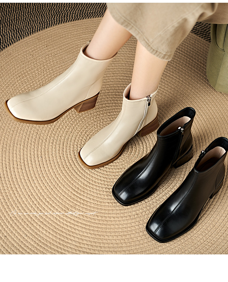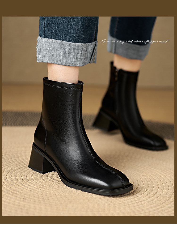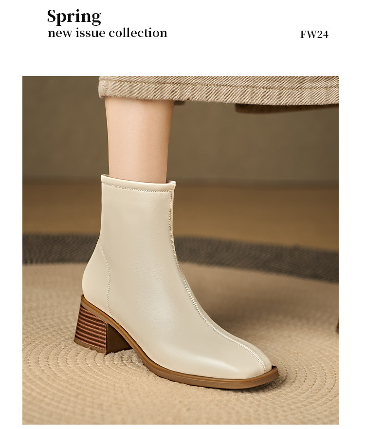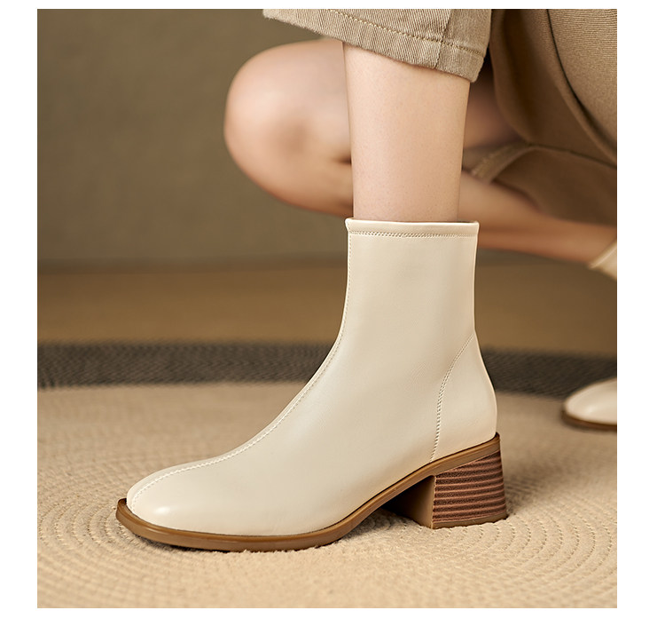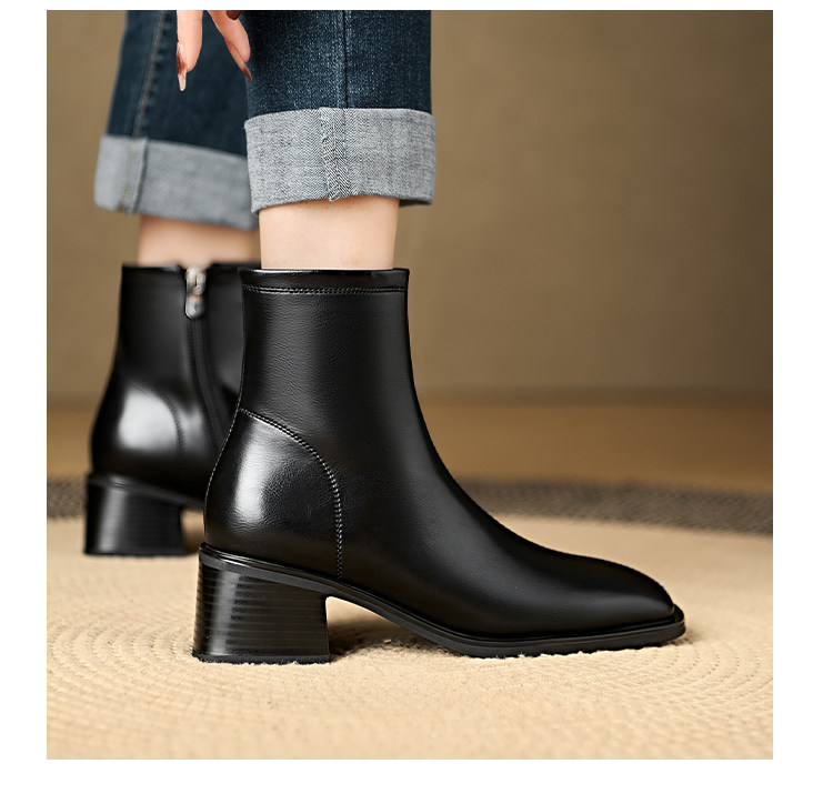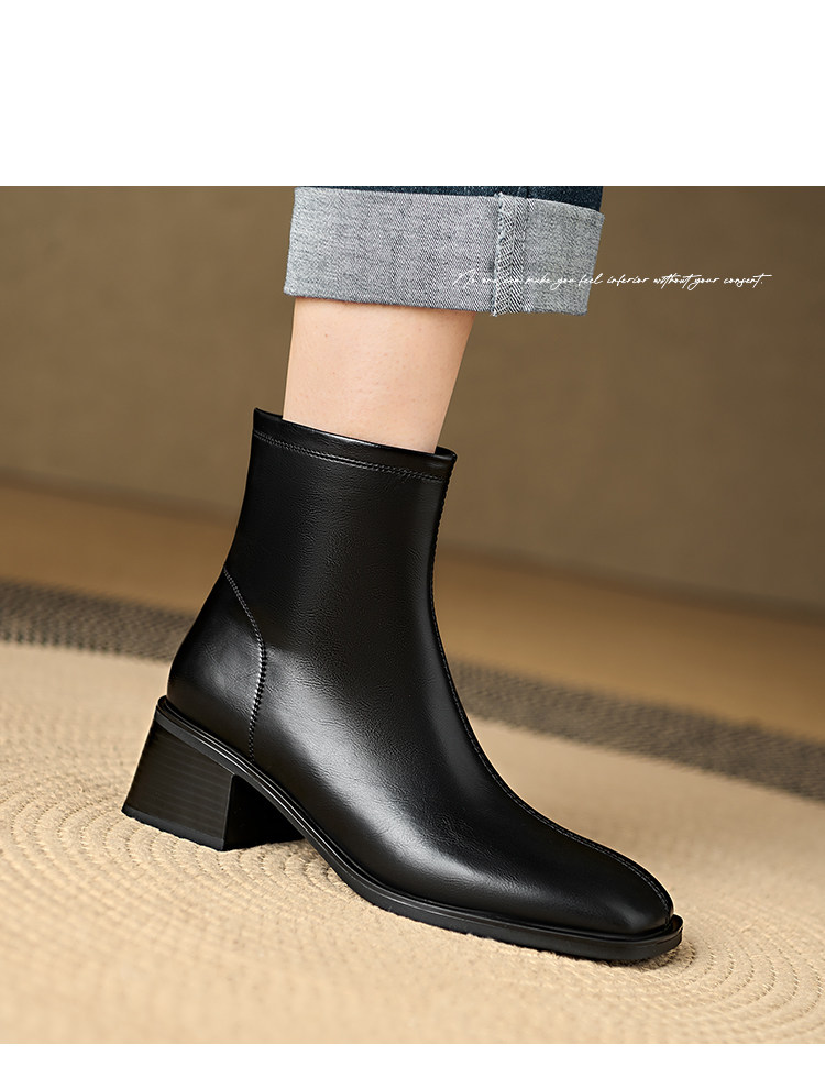 Italian Corso Venezia~Casual Elastic Thick Heel Square Toe Slim Boots Genuine Leather Short Boots Small Ankle Boots Retro