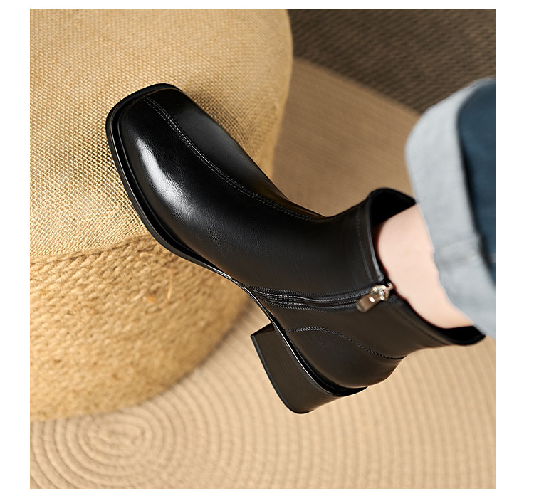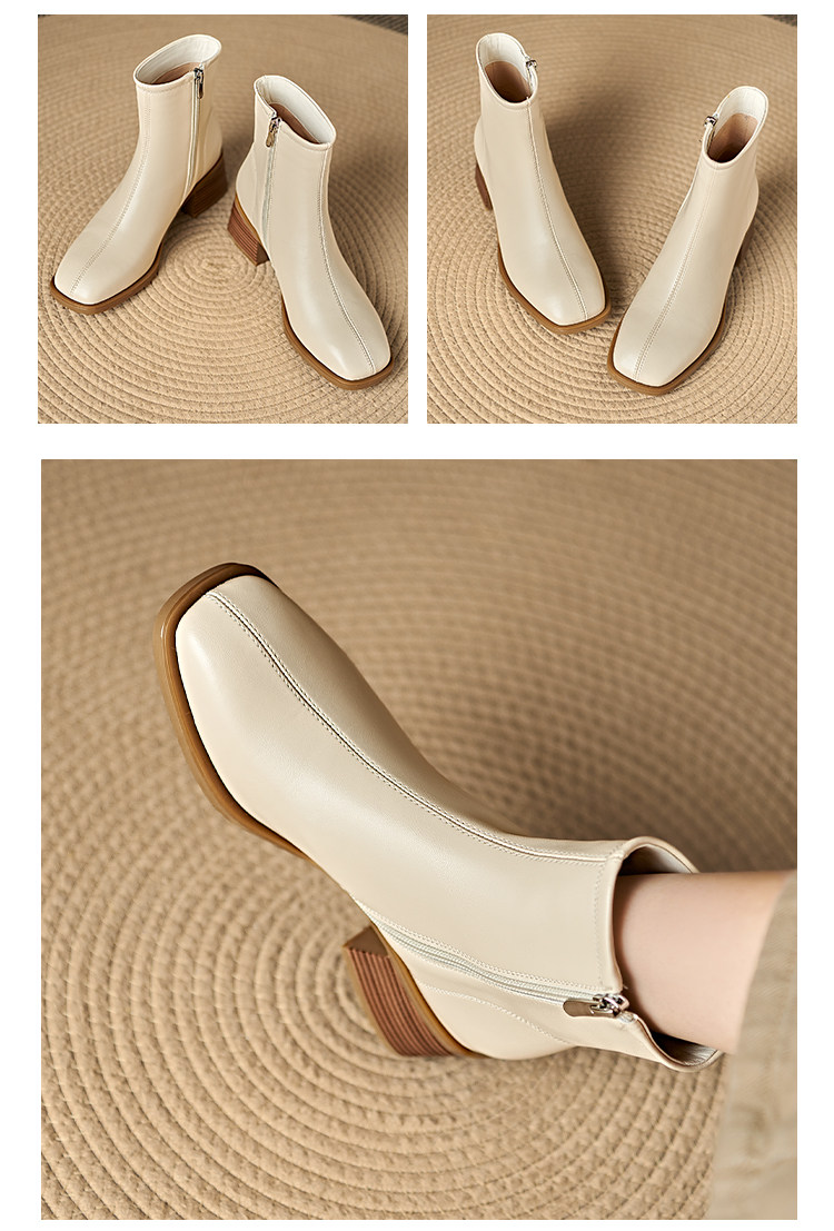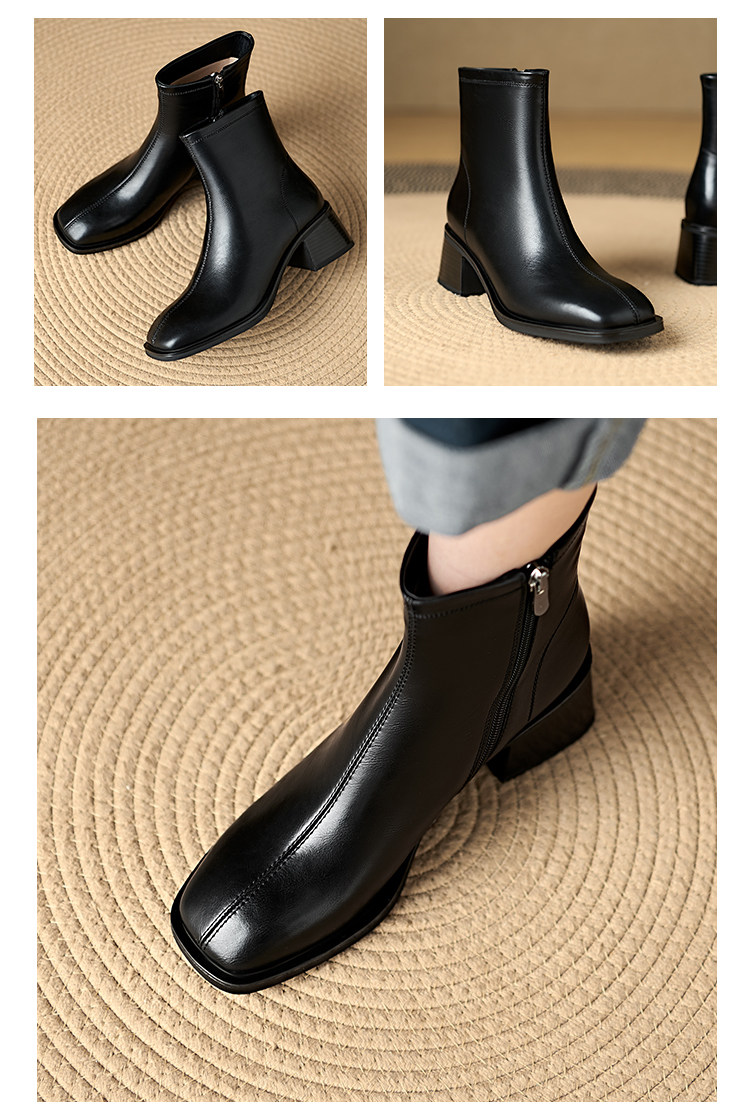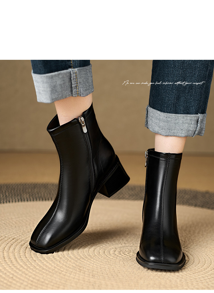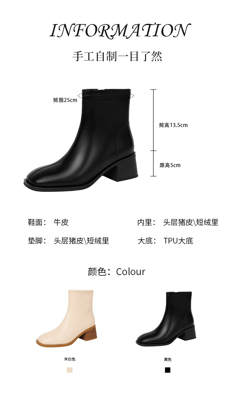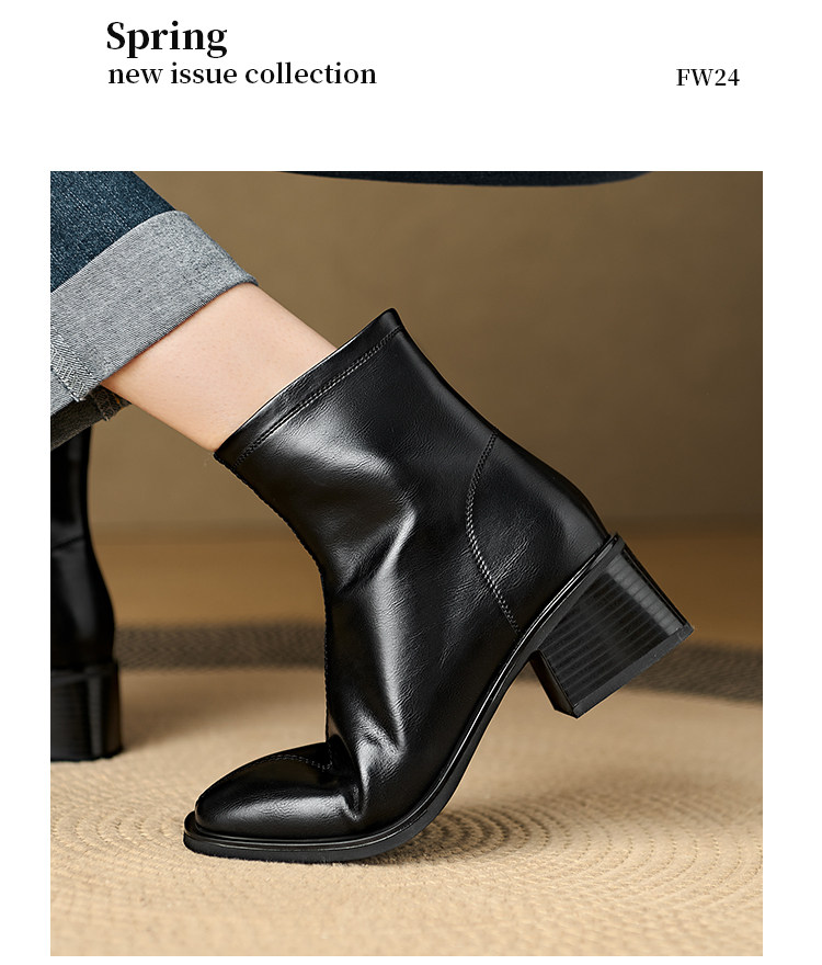 Italian Corso Venezia~Casual Elastic Thick Heel Square Toe Slim Boots Genuine Leather Short Boots Small Ankle Boots Retro