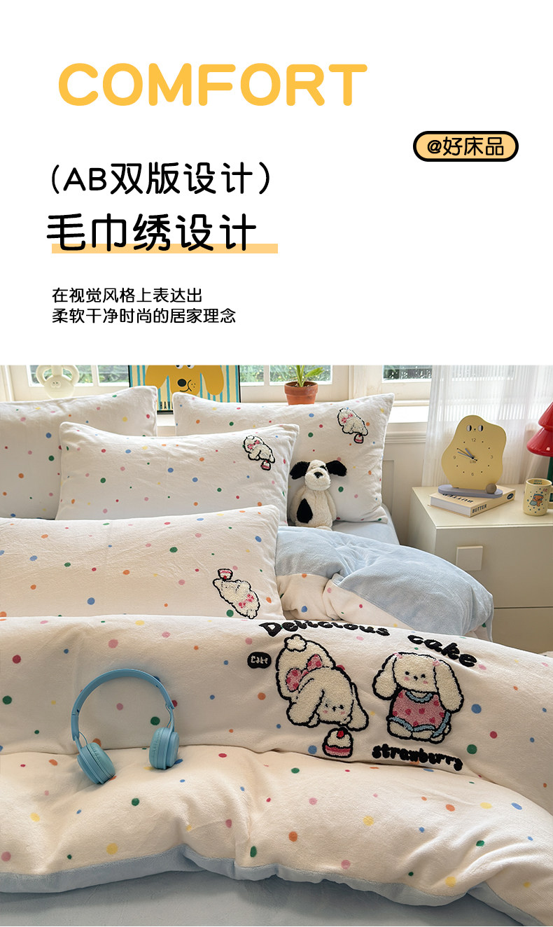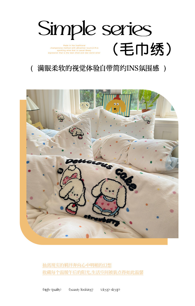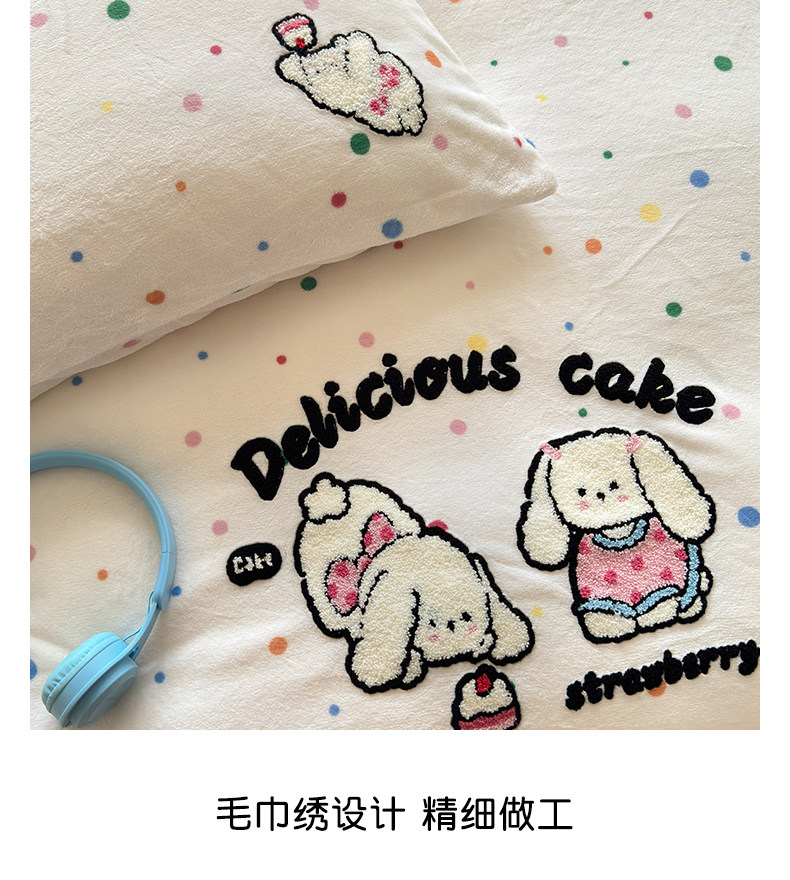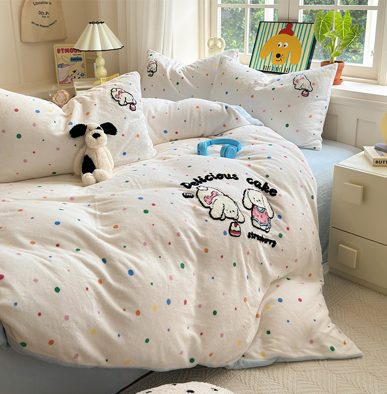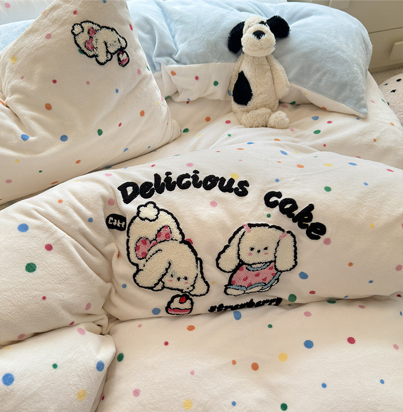 Cartoon towel embroidered milk velvet bed four-piece set winter coral flannel bedding thickened and warm 2025 new style