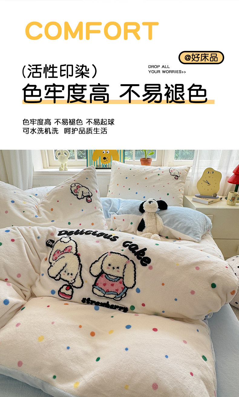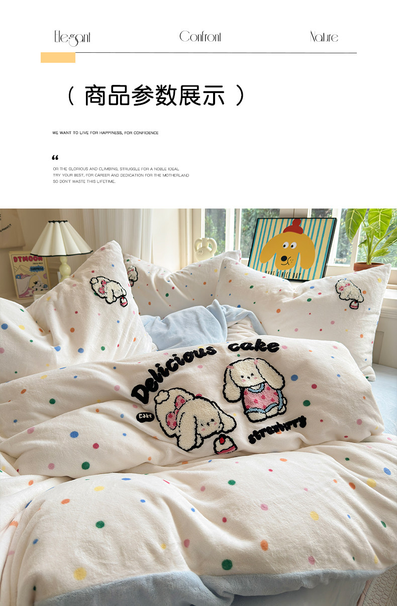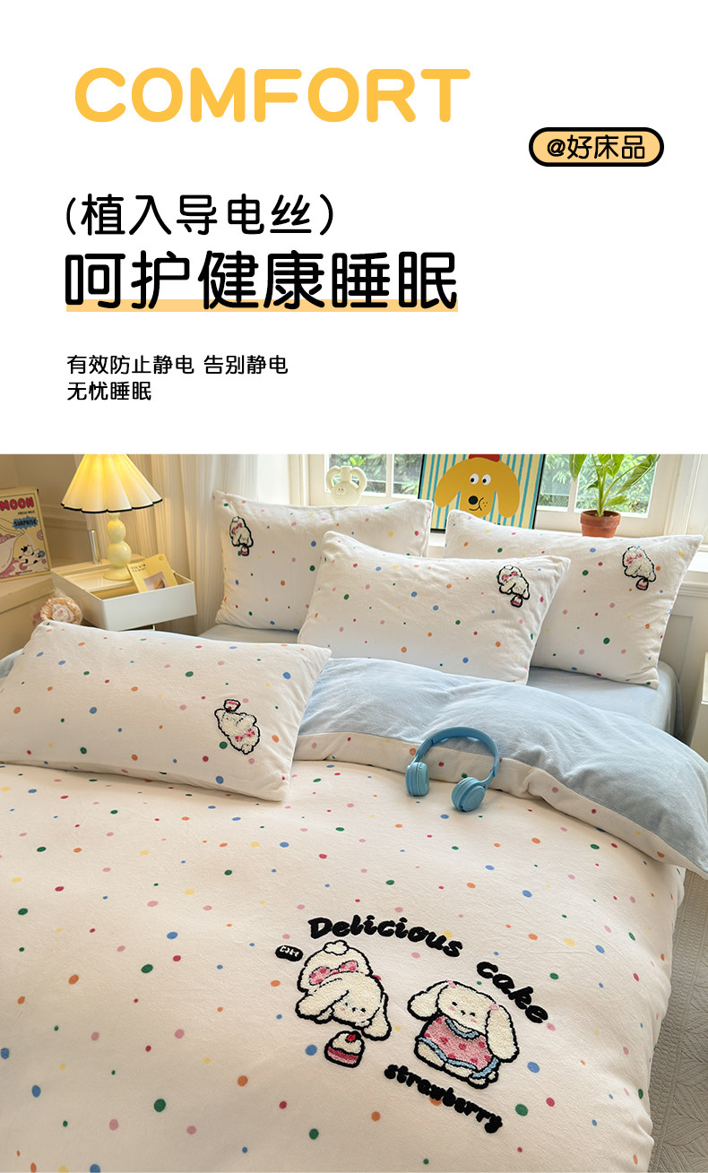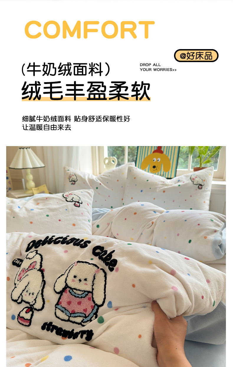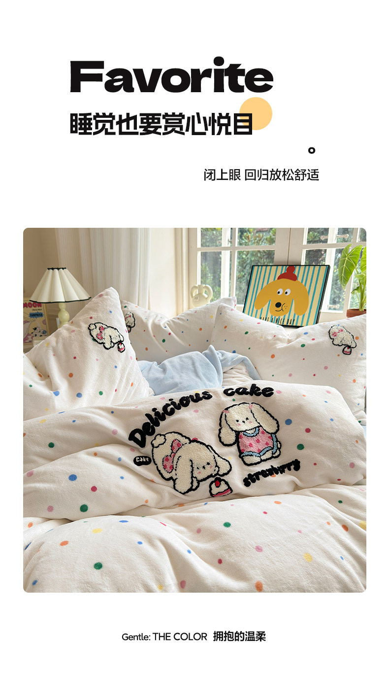 Cartoon towel embroidered milk velvet bed four-piece set winter coral flannel bedding thickened and warm 2025 new style