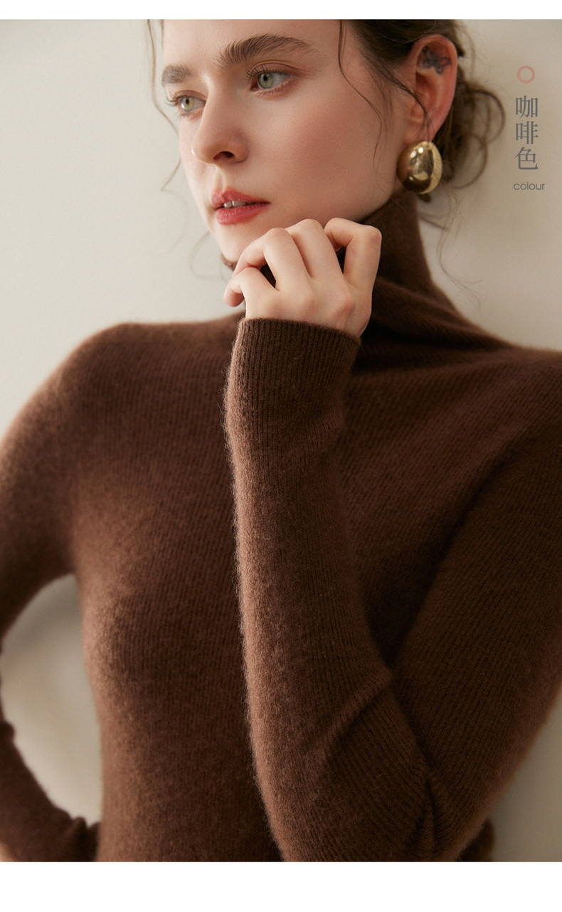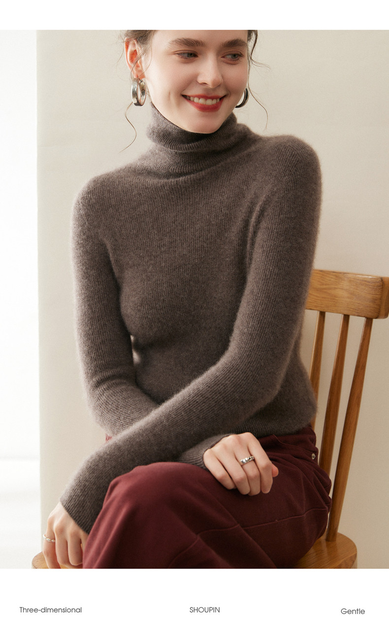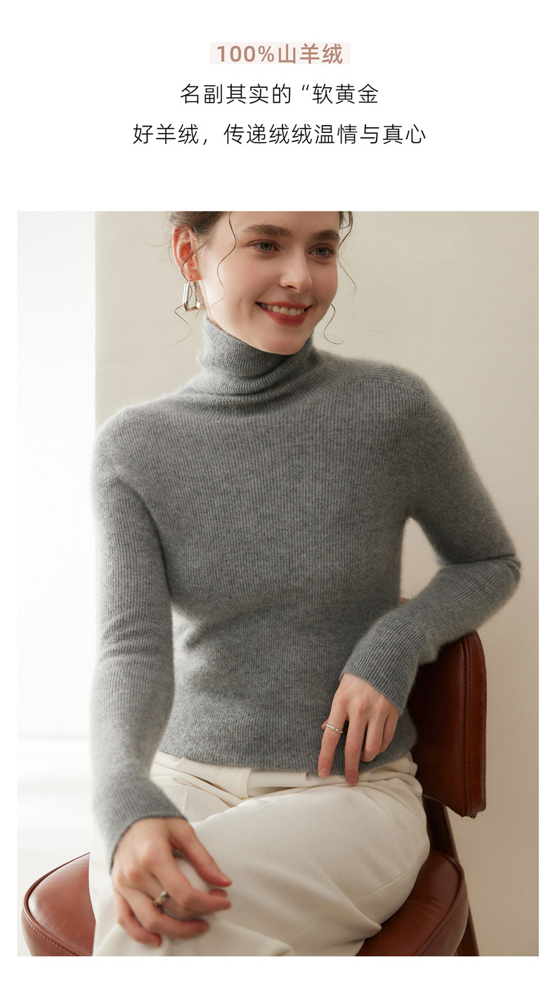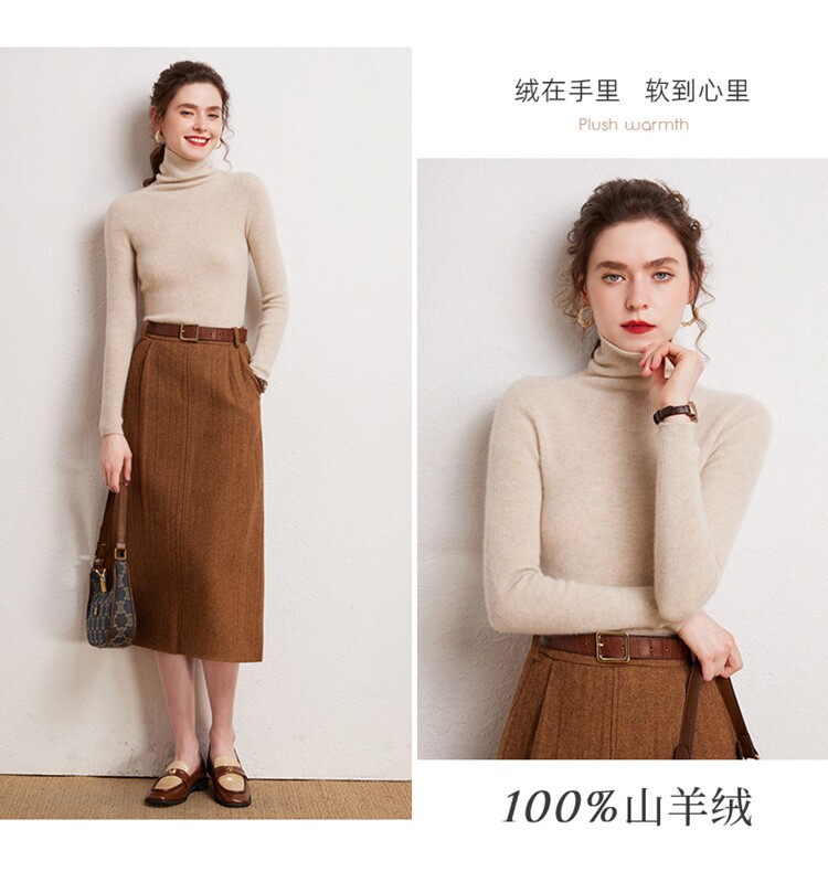 Seamless one-piece 100% pure cashmere sweater women's turtleneck bottoming shirt autumn and winter tight slim pullover pile collar sweater