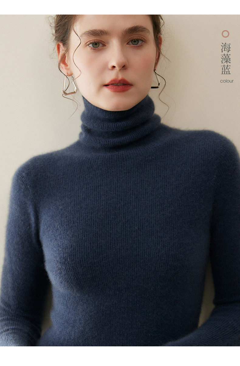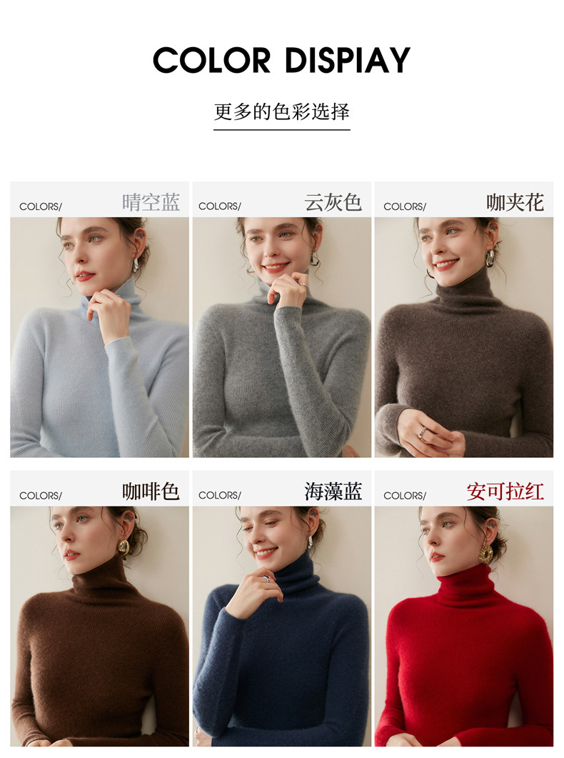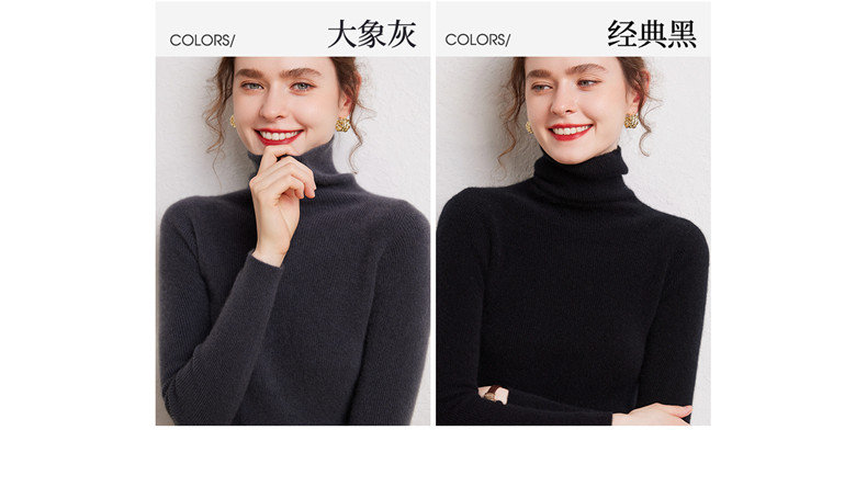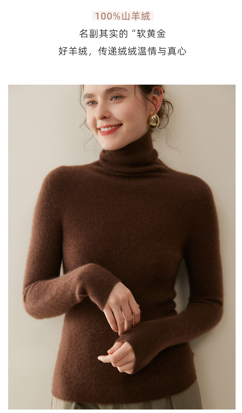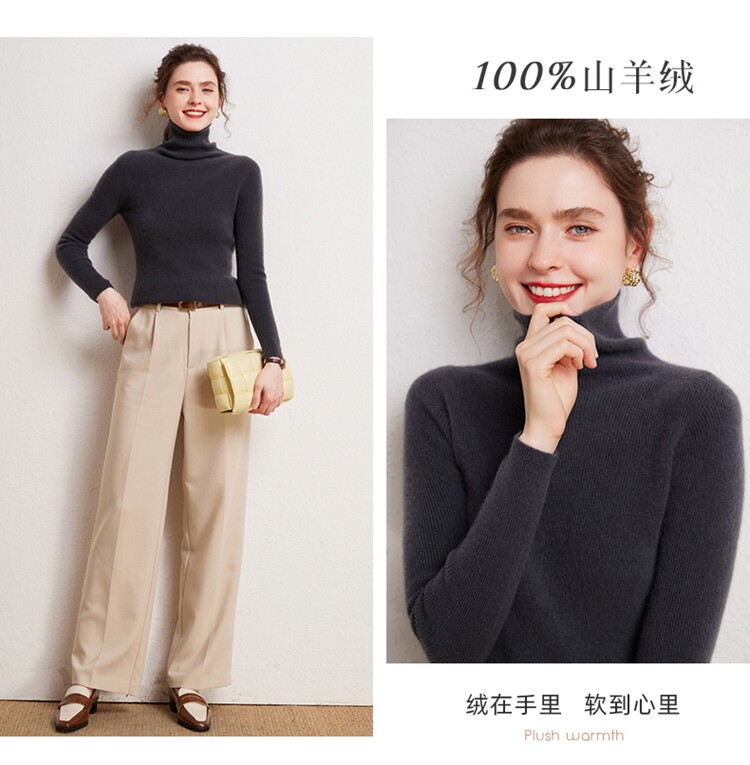 Seamless one-piece 100% pure cashmere sweater women's turtleneck bottoming shirt autumn and winter tight slim pullover pile collar sweater