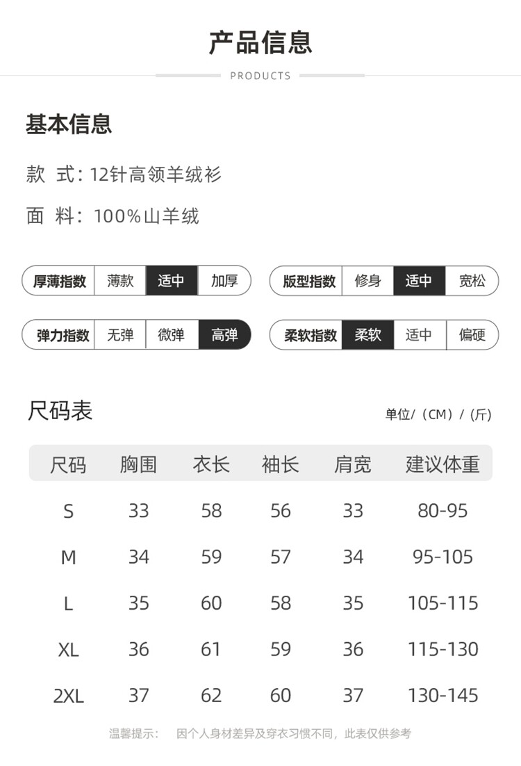 Material ingredients Cashmere (Cashmere) 100%