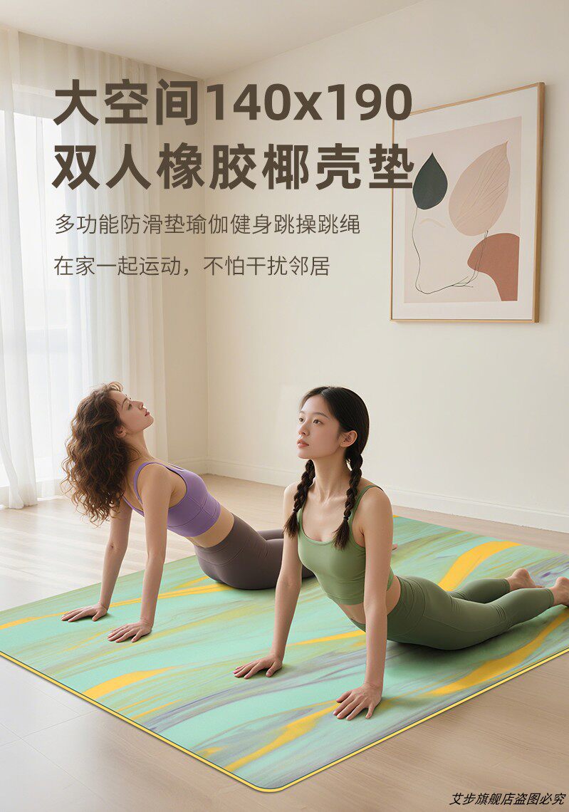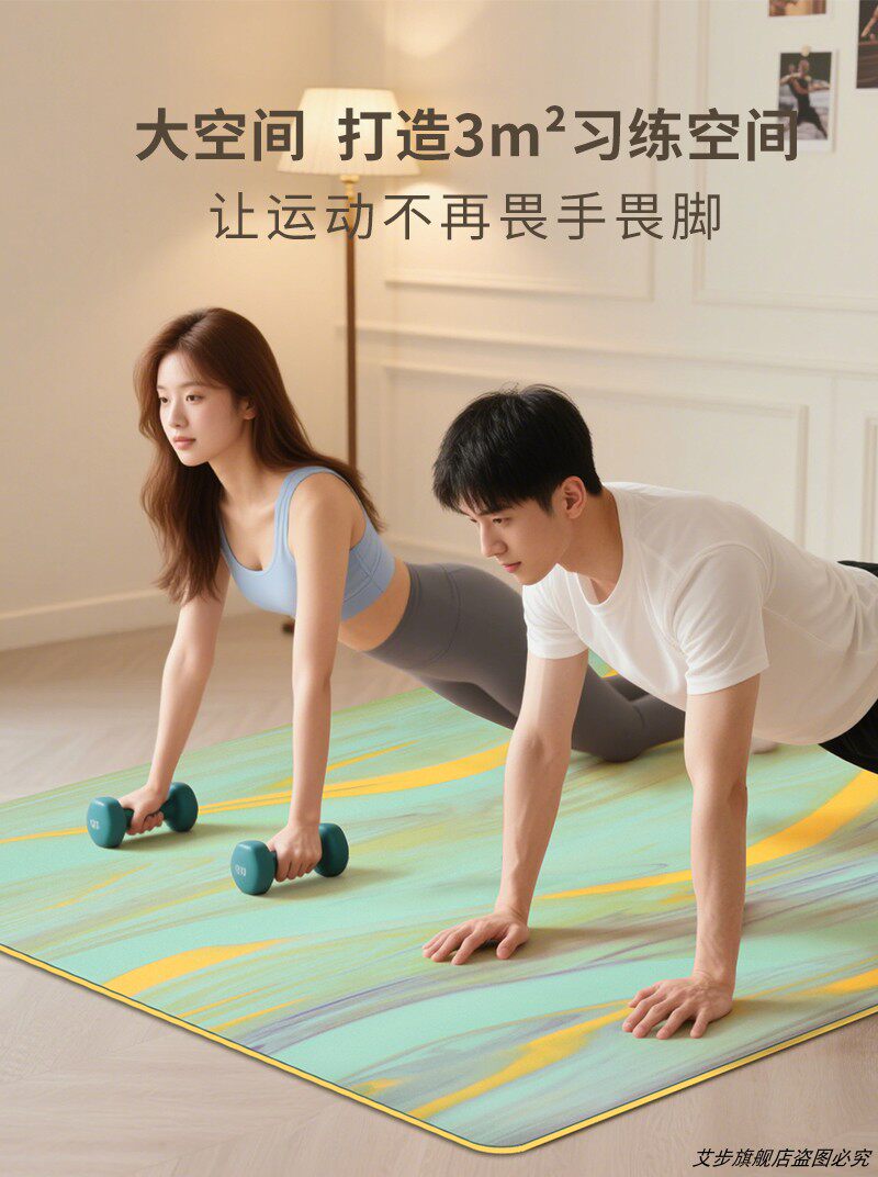 Double Natural Rubber Yoga Mat, Non-Slip, Professional, Women's Fitness, Home Use, Extra Long and Wide, Jump Rope, Shock-Absorbing Mat